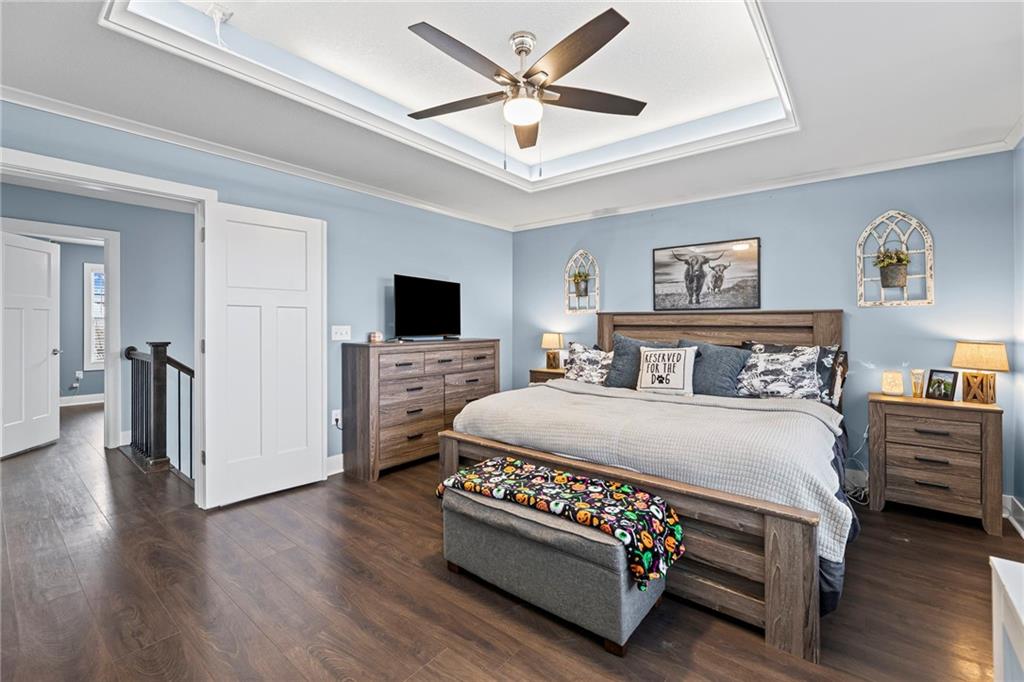 Welcome home to this stunning Monterey 2-story—full of charm, function, and upgrades throughout. With excellent curb appeal and a fully fenced backyard, this home truly checks all the boxes. Step inside to an inviting, open main floor designed for easy family living and effortless entertaining. The kitchen, breakfast area, and living room flow together seamlessly, featuring a large center island, gas range, gorgeous granite/quartz counters, and an enormous pantry—perfect for the home chef. You’ll also love the versatility of the main-floor 5th bedroom, which can double as a home office or formal dining space. Upstairs, the spacious primary suite offers a spa-like bathroom and an oversized walk-in closet you’ll have to see to believe. Secondary bedrooms are generously sized with great natural light. Located just moments from Nike Elementary and with quick access to I-35, you get convenience and a peaceful country feel. Tuscan Farm also includes upgraded standard features like front and side yard sprinklers, beautiful stone counters in all baths, and modern finishes throughout. Don’t miss your chance to own a like-new home in an incredible location—this one is truly move-in ready!