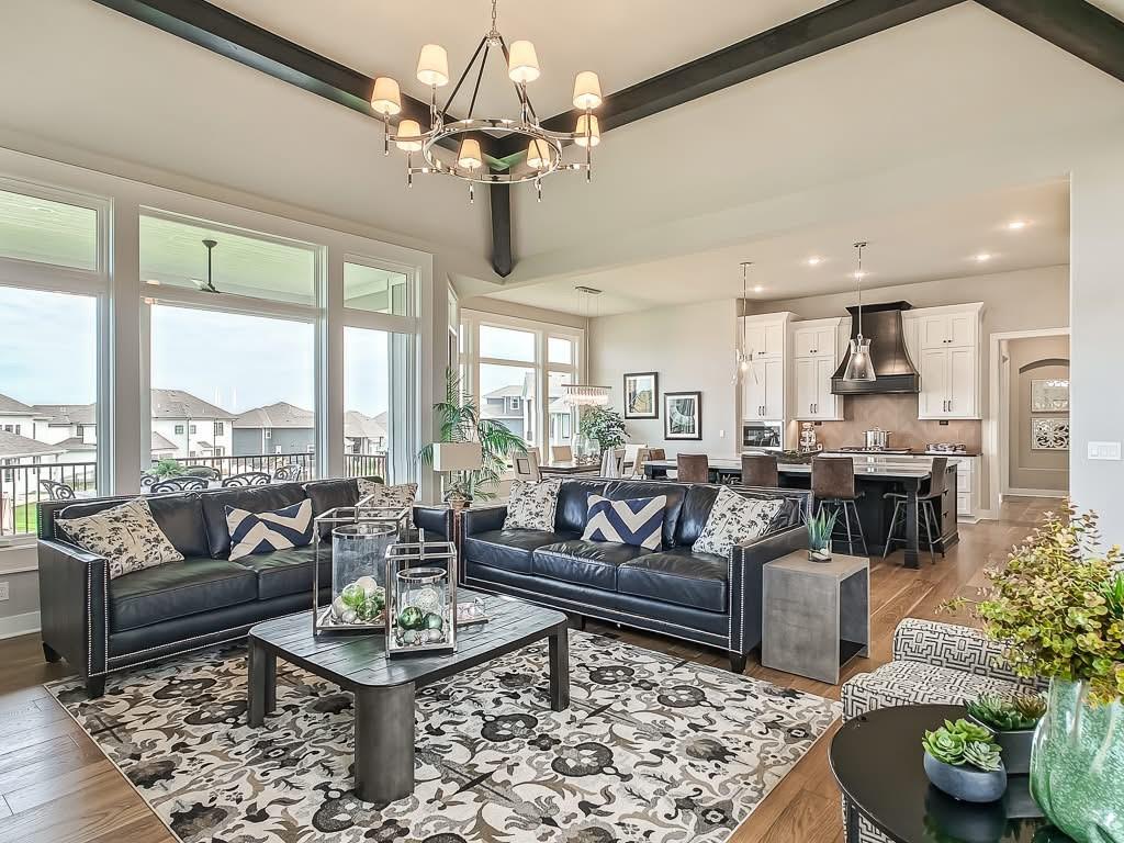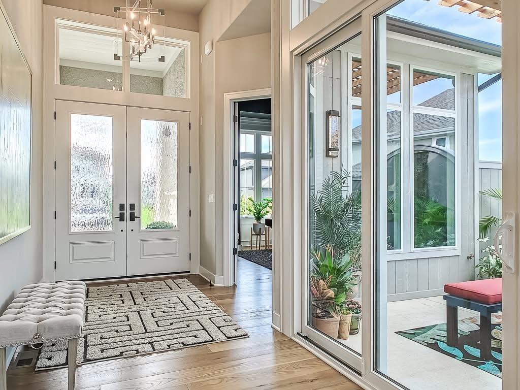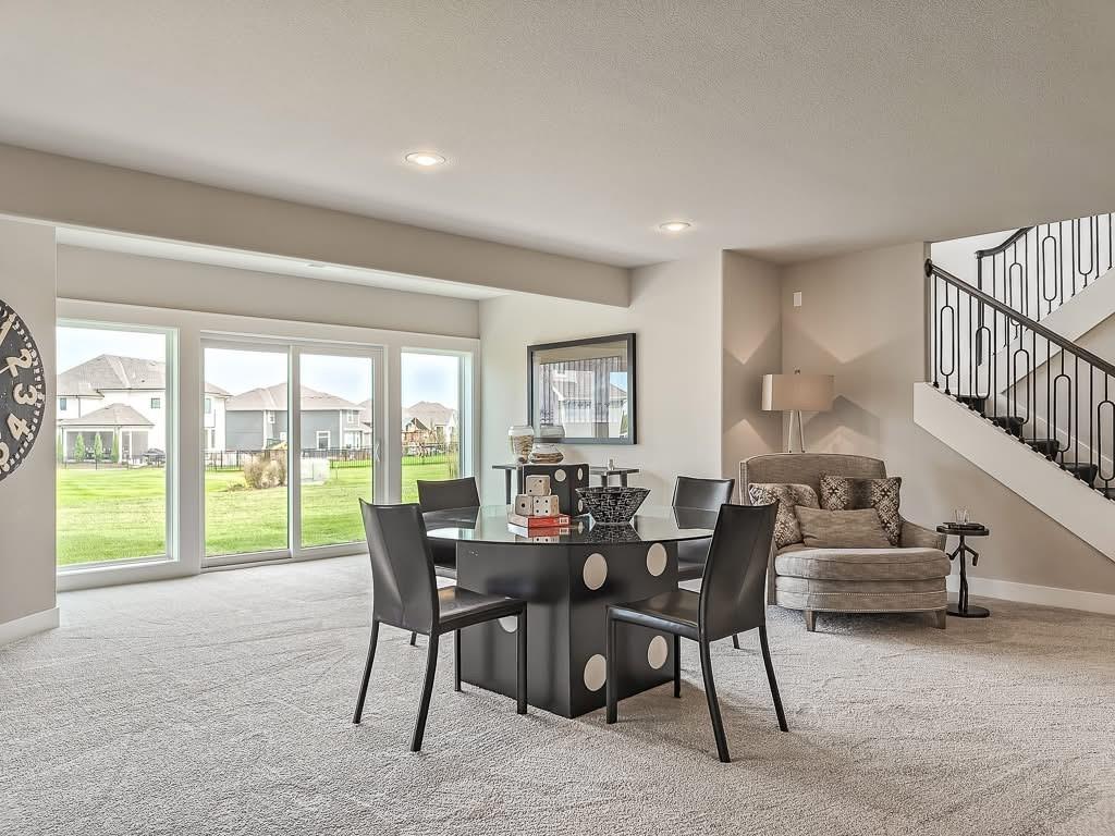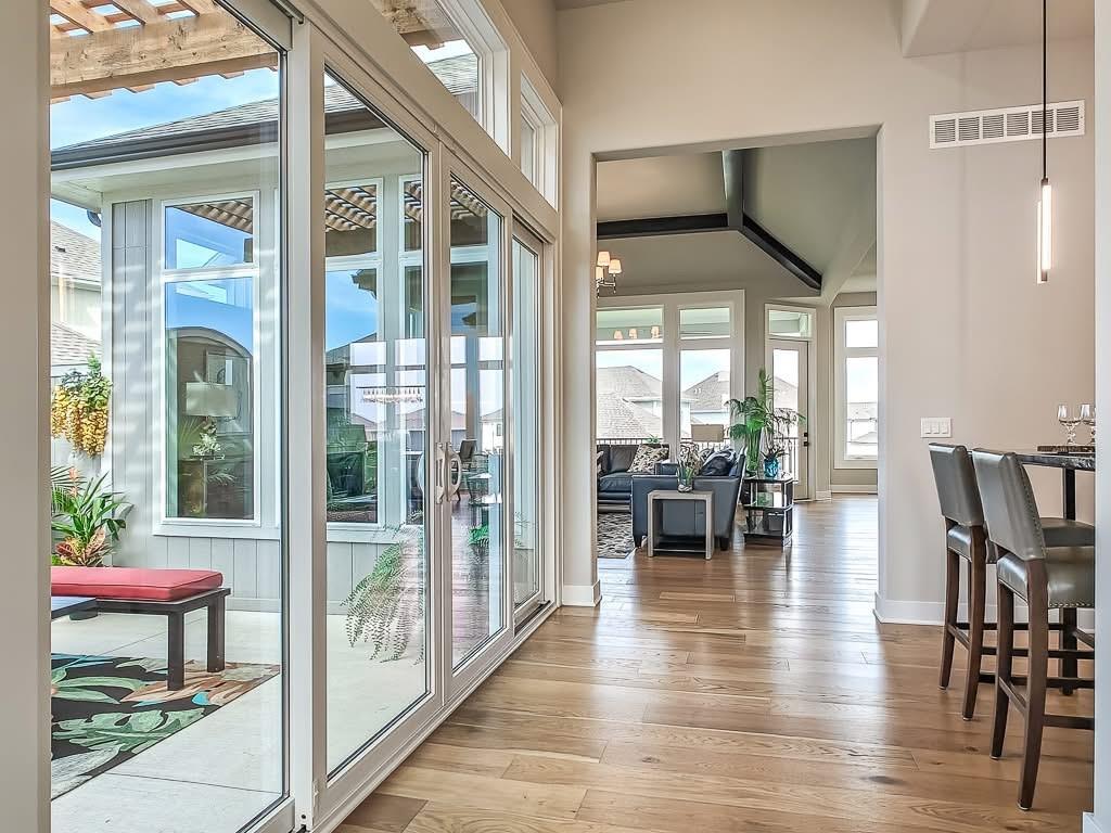The Courtland Reverse by Don Julian Builders--UNDER CONSTRUCTION! THIS HOME IS NOT COMPLETED--the photos shown are from another Courtland MODEL plan that is completed. So much WOW! Fabulous plan with a terrific courtyard with converging doors off the entry--perfect for relaxing and enjoying nature! Useable, large First floor office/den views this indoor/outdoor space! Pub bar area across from the courtyard--enjoy entertaining-great places. FOUR car garage! Great room with vaults and beams--Large dining area with vaults and beams, too! Primary bedroom suite with vault and beams, light, extra-large shower, and laundry ROOM off the huge closet. Second bedroom on first floor w/private bath. Drop station with cubbies by back door. Large kitchen with massive (double slab) island and lots of space. Hidden, back stairs to Lower level: jumbo REC room, extra-sized wet bar; 1/2 bath. 2 additional, sizable bedrooms (each with their own bath and walk-in closet). SO much light! Enjoy Riss Lake amenities: including 3 pools, tennis courts with pickle ball lines, playground, splash pad, walking trails, 134-acre lake for fishing or boating, more!