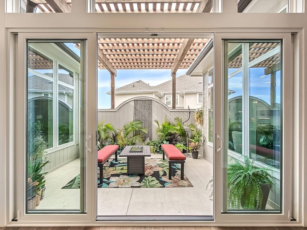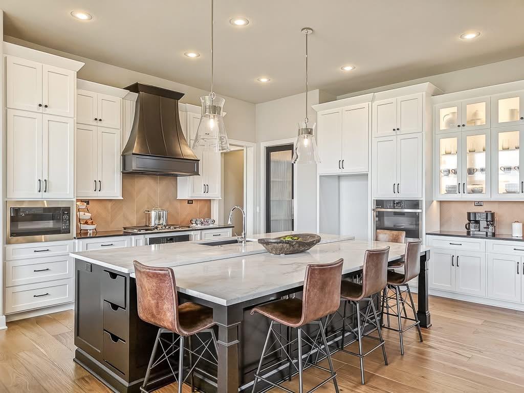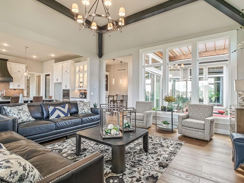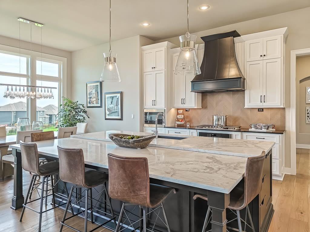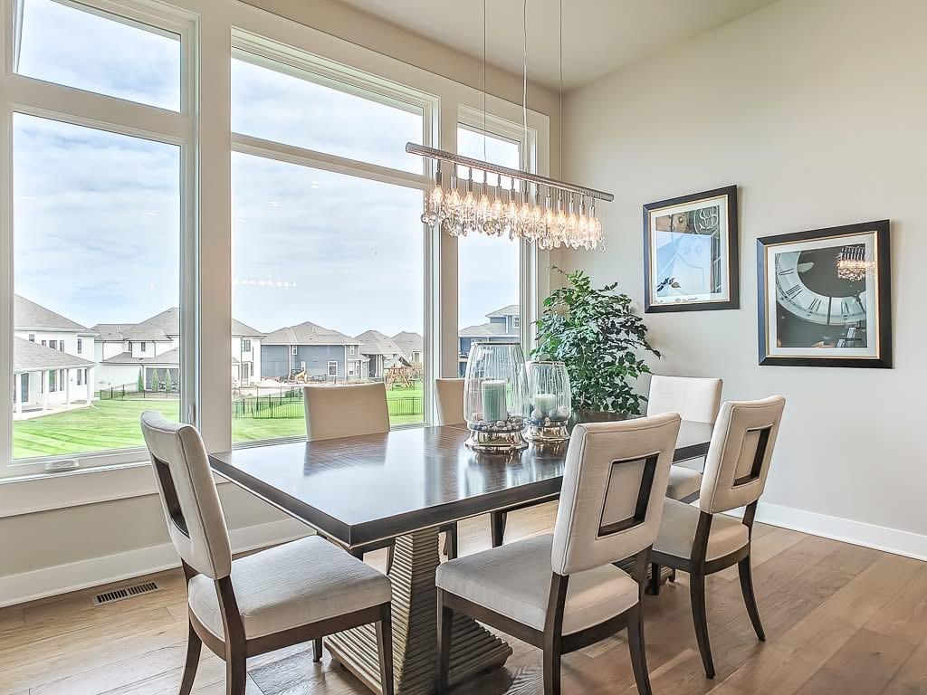 The Courtland Reverse by Don Julian Builders--UNDER CONSTRUCTION! THIS HOME IS NOT COMPLETED--the photos shown are from another Courtland MODEL plan that is completed. So much WOW! Fabulous plan with a terrific courtyard with converging doors off the entry--perfect for relaxing and enjoying nature! Useable, large First floor office/den views this indoor/outdoor space! Pub bar area across from the courtyard--enjoy entertaining-great places. FOUR car garage! Great room with vaults and beams--Large dining area with vaults and beams, too! Primary bedroom suite with vault and beams, light, extra-large shower, and laundry ROOM off the huge closet. Second bedroom on first floor w/private bath. Drop station with cubbies by back door. Large kitchen with massive (double slab) island and lots of space. Hidden, back stairs to Lower level: jumbo REC room, extra-sized wet bar; 1/2 bath. 2 additional, sizable bedrooms (each with their own bath and walk-in closet). SO much light! Enjoy Riss Lake amenities: including 3 pools, tennis courts with pickle ball lines, playground, splash pad, walking trails, 134-acre lake for fishing or boating, more!