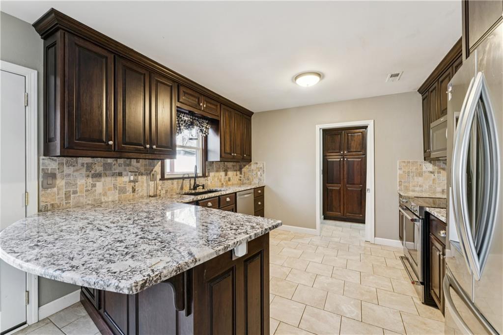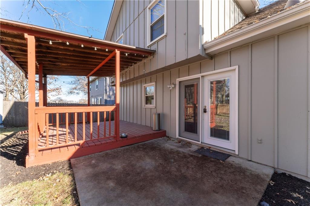 Location, Location, Location! This is the one you've been searching for. This well-maintained two-story home has it all with its eye-catching curb appeal, central location in the highly desirable Lenexa area, plus its surrounded by higher priced homes and in award-winning Shawnee Mission school district. ALL APPLIANCES STAY for buyer's convenience to move right in. Spacious kitchen with granite counter tops, sunny breakfast area and beautiful wood cabinetry. The cozy great room has a brick fireplace, boxed beamed, vaulted ceilings & wood flooring. This open floor plan has space for extra dining area, plus also 1/2 bath and laundry room on the main level. Oversized primary suite has an expansive wall to wall closet, plus attached updated bathroom with shower. There are 2 additional bedrooms and a fully, updated hall bathroom on the second floor. The partially finished basement offers an additional rec -room and storage room with built-in shelving. HVAC system is 4 years new & water heater is 3 years new. New attic insulation, new owner's fencing with privacy gates & all trees trimmed in 2025. New covered guttering in 2024. Attached 2 car garage and the home has a sprinkler system. The backyard is great for gathering, grilling, and relaxing with a great covered deck! Located on a lovely street lined with mature trees and practically across the street to the elementary school. This home has been lovingly cared for and is ready for the next homeowner to love.