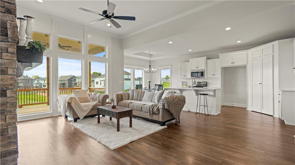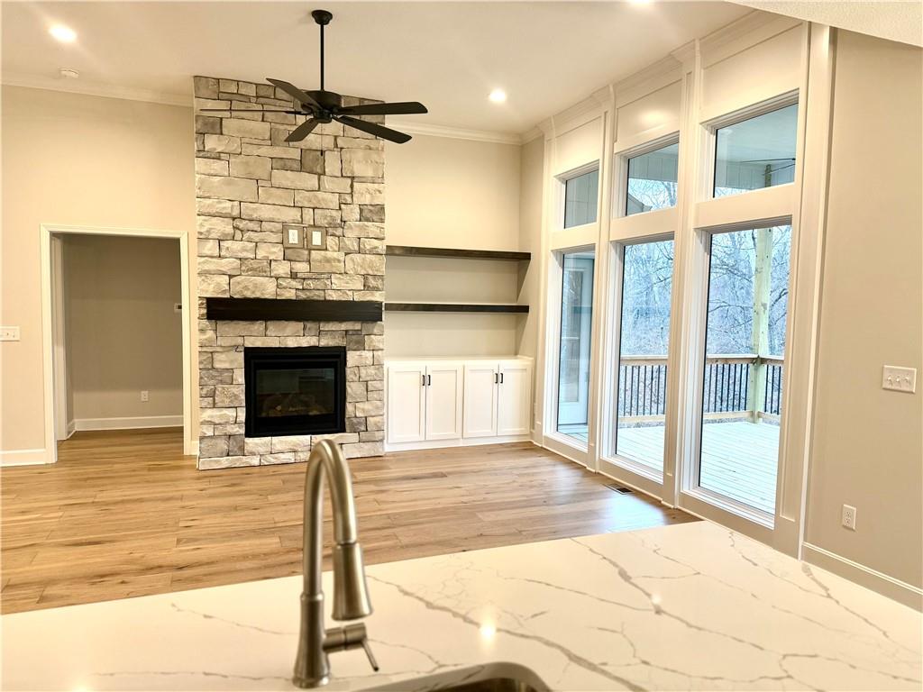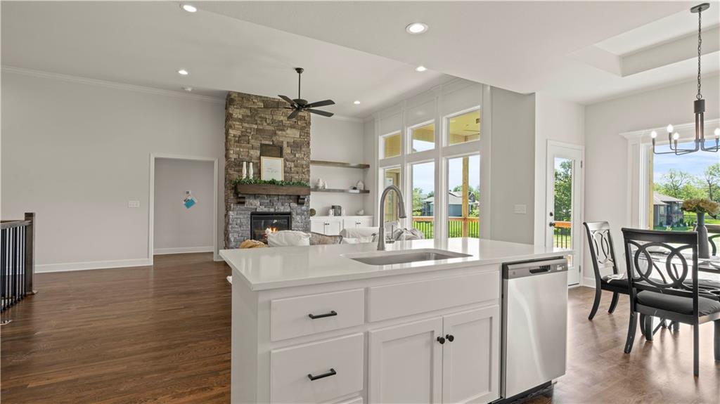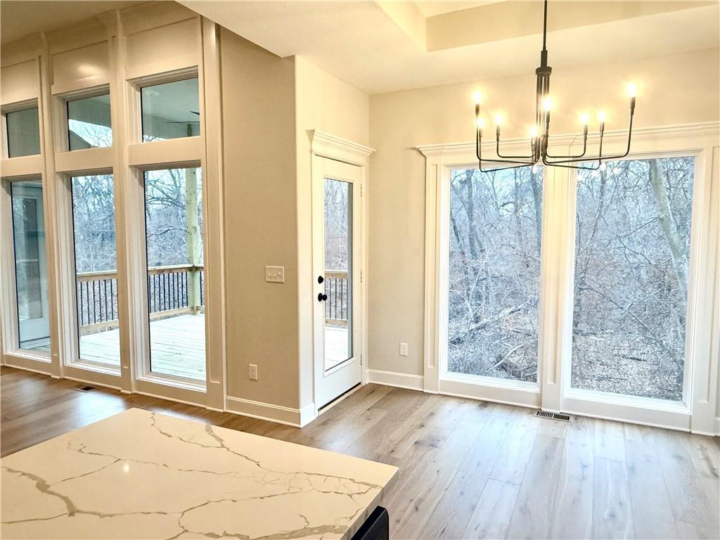 **ALMOST COMPLETED**BEAUTIFUL LOT BACKING TO TREES! Introducing the "TAYA" by Robertson Construction! This Custom Reverse 1.5-Story sits on one of the most desirable lots you will find! Enjoy the peace and privacy from the Covered Deck and Patio at the Walkout Basement. Stunning 4 Bedroom, 3.5 Bath with an Open Layout and Floor to Ceiling Windows. The Main Level features Engineered Hardwood Flooring, Stone Fireplace accented with Floating Shelves and Built-in Cabinets, Kitchen Island, Quartz Countertops, HUGE WALK-IN PANTRY, Custom Cabinets and Drop Zone at Garage entry. Easy access to the OVERSIZED Deck from both the Breakfast Room and Master Suite which has a Walk-In Closet that conveniently connects to the Laundry Room. Also on the Main Level is a half bath and Bedroom 2 with an ensuite bathroom making it a cozy guest room or home office. The Lower Level is just as impressive with a HUGE Family Room, more Floor to Ceiling Windows, 2 more bedrooms, 1 Full Bath and a good amount of storage! Located in the highly-rated Kearney School District. Close to local amenities!