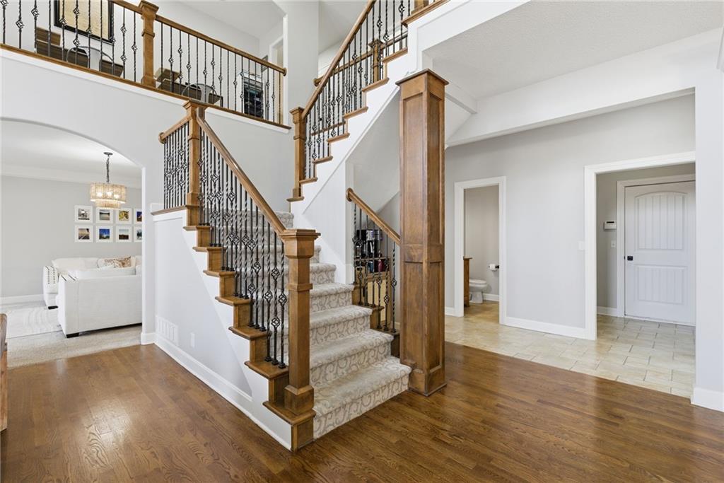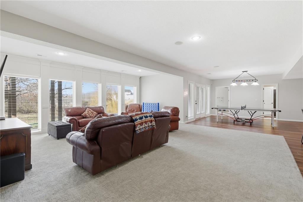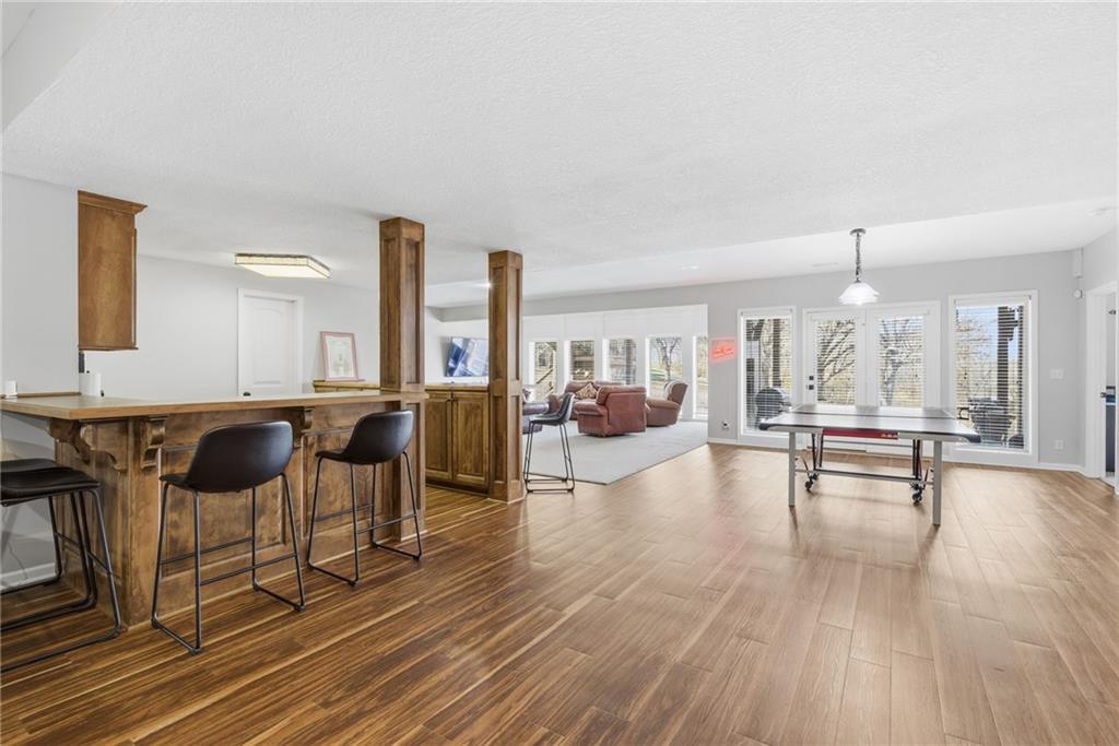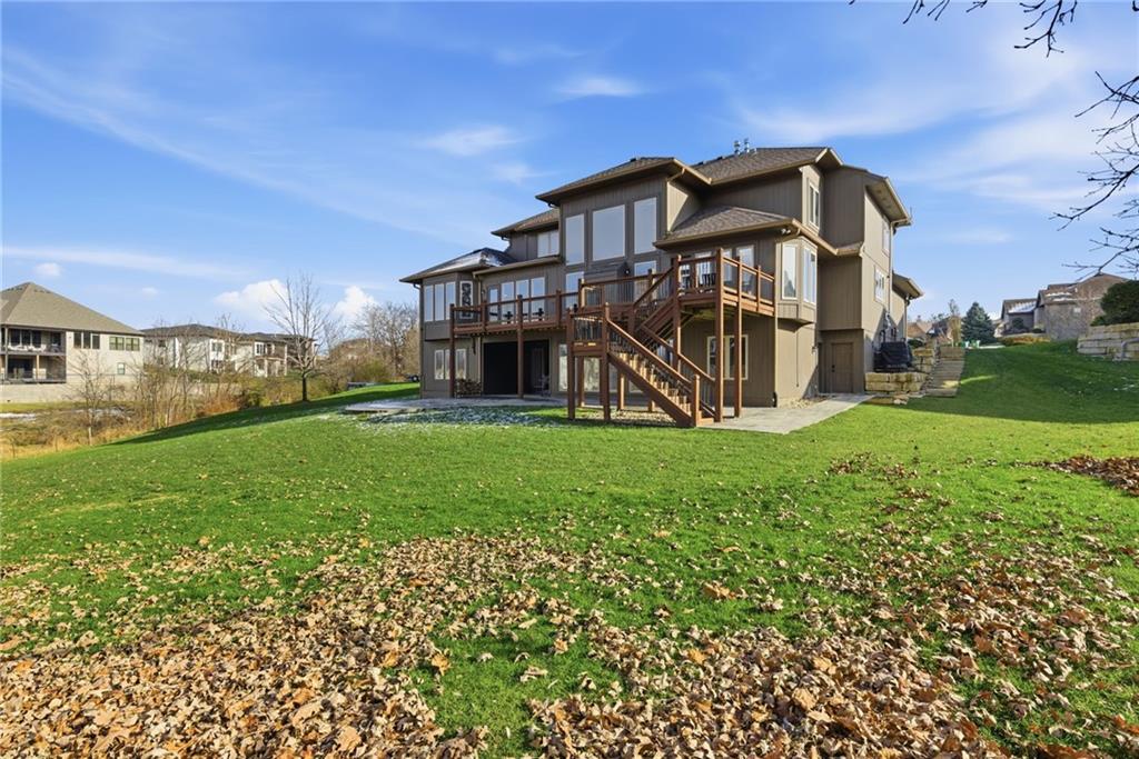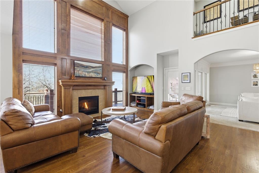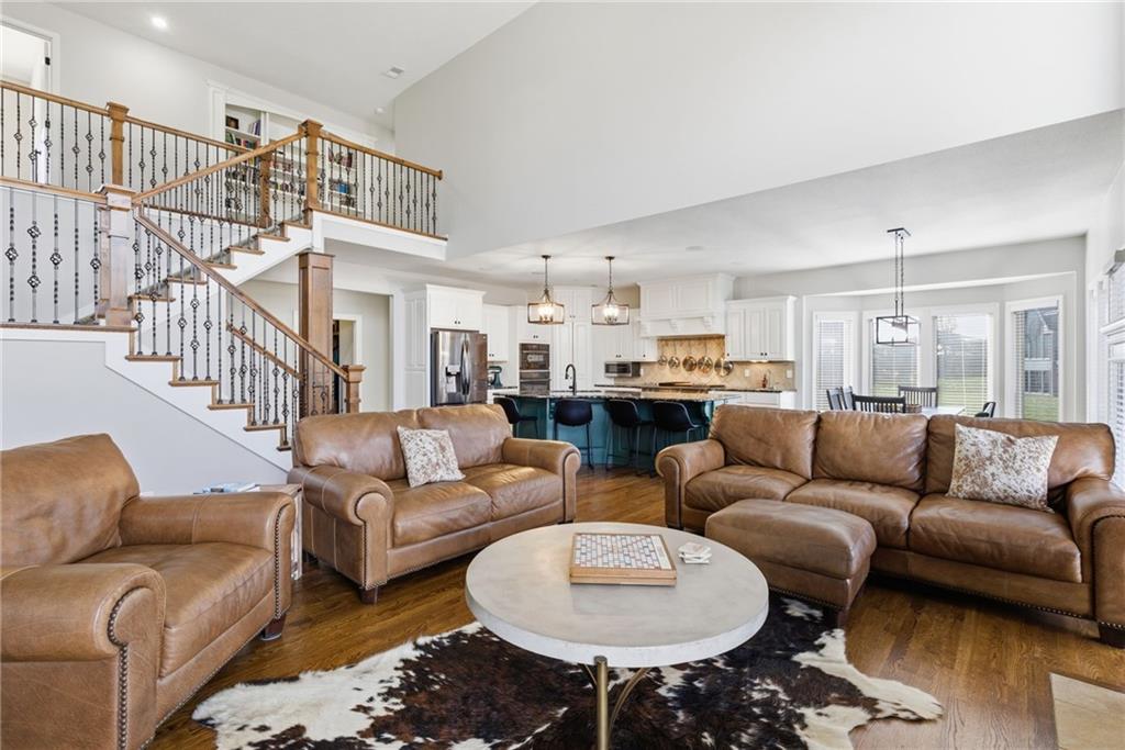 DO YOU NEED MORE SPACE? Attention to detail can be found in this beautiful mastercrafted 1.5 STORY OPEN FLOOR PLAN HOME that features 7 bedrooms & 5.5 bathrooms. Located at the end of a cul-de-sac in the desired Woodland Shores subdivision, this 6,600 sqft PLUS a 600 sqft indoor rec / basketball area. 20' ceiling in the spacious entryway w/ formal staircase! Hardwood & tile flooring throughout the main level which is roughly 2,700+ sqft. The hearth room features a gas fireplace, floor to ceiling windows, & staircase #2. The Chef's kitchen is state-of-the-art, w/ top of the line stainless steel appliances, gas cooktop, upgraded granite countertops, custom cabinets, walk-in pantry, coffee bar, & a spacious island. A formal sitting room, formal dining room, sun room & large study are also located on the main floor along w/ the owners suite which features a “spa-like” bathroom w/ whirlpool tub, walk-in tile shower w/ multiple shower heads & three vanities. The walk-in closet has a hidden door that leads directly to the study. Upstairs, 4 more oversized bedrooms, 3 full bathrooms plus a loft. The walk-out basement features a wet bar, family room, second laundry room & bedrooms 6,7 & Nonconforming 8. Down another flight of stairs to the basketball area that is located under the oversized 3 car garage. Multiple large storage areas along w/ an outside access storage room that is perfect for bikes, scooters & toys. Woodland Shores is an upscale lake community. Nestled on the Northeastern shores of Prairie Lee Lake and just south of Lake Jacomo, it is surrounded by thousands of acres of parkland, trails, and undeveloped woodlands. Enjoy the beautiful 4000 square foot community swimming pool, covered 10 slip marina, and offers quick access to great shopping centers & award-winning Lee’s Summit School District.