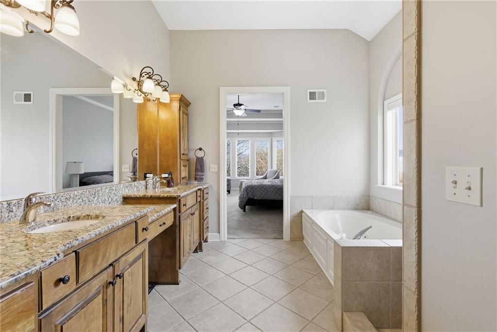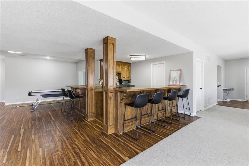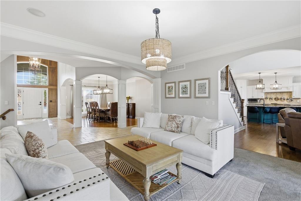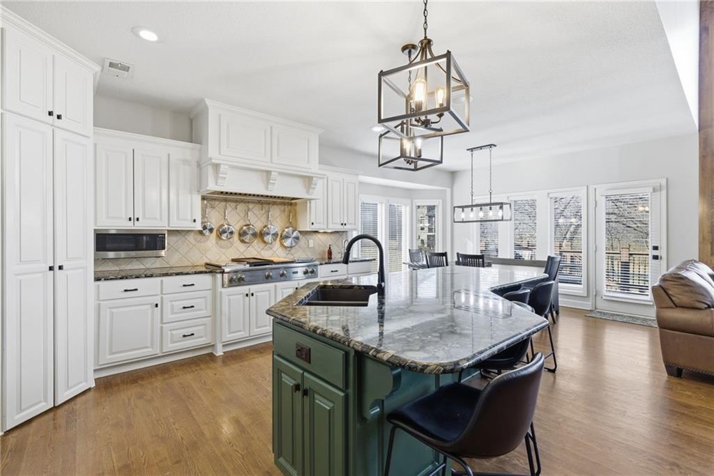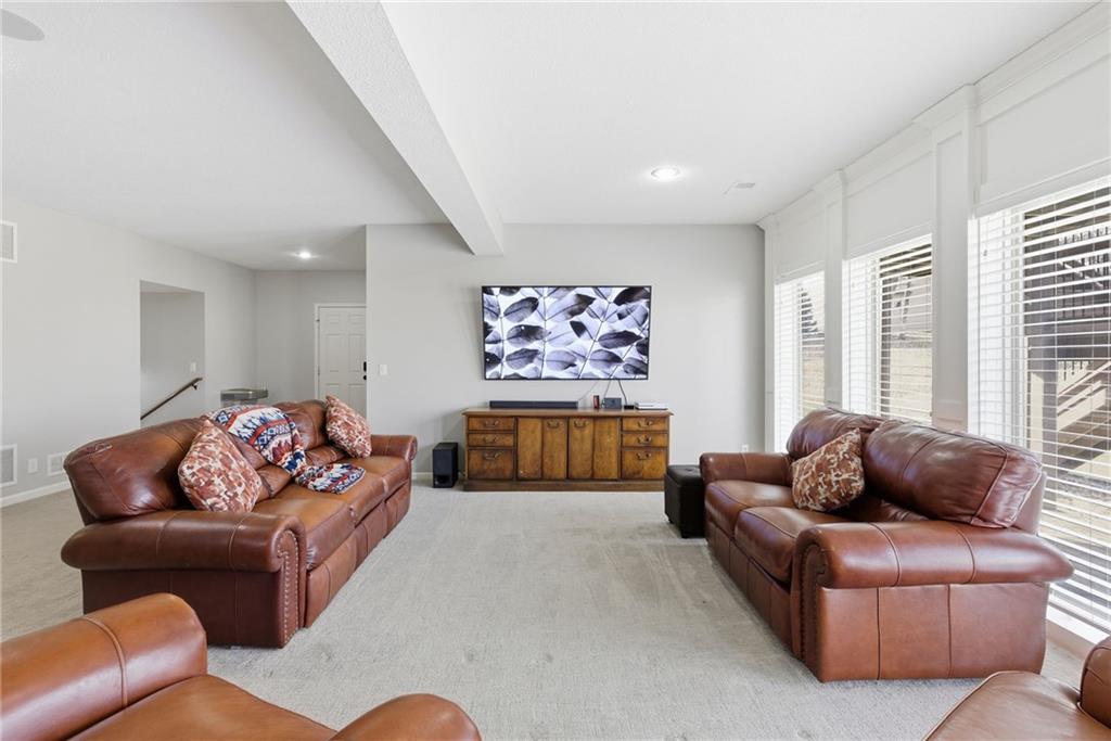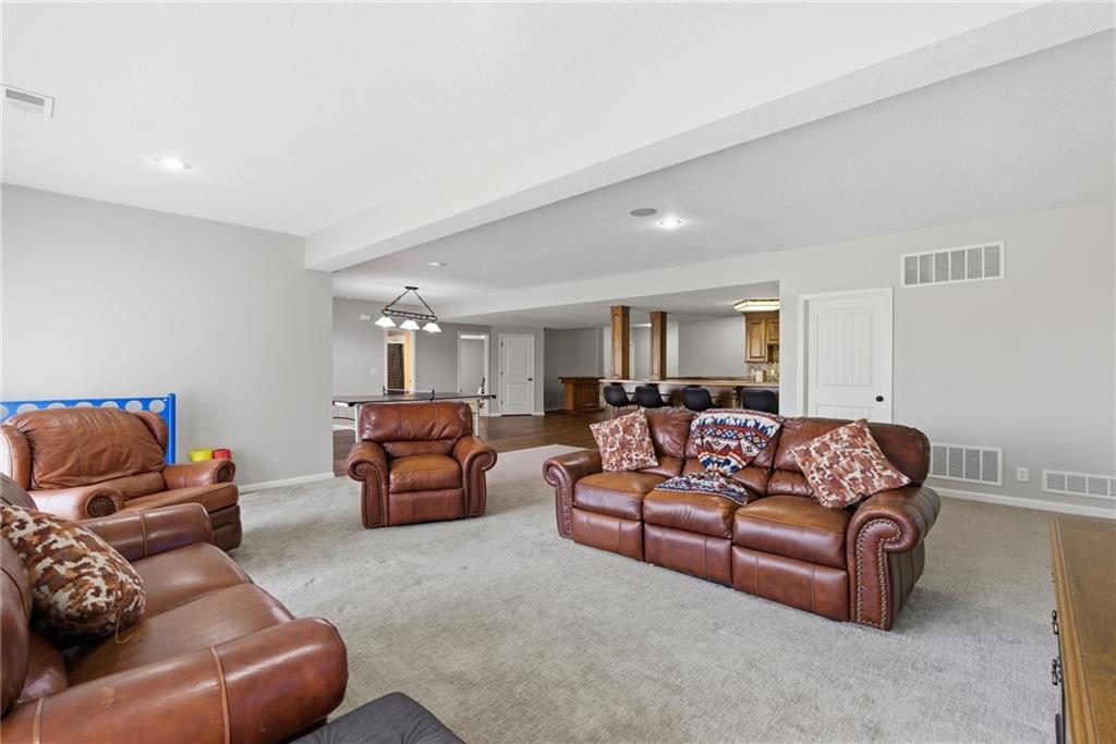 DO YOU NEED MORE SPACE? Attention to detail can be found in this beautiful mastercrafted 1.5 STORY OPEN FLOOR PLAN HOME that features 7 bedrooms & 5.5 bathrooms. Located at the end of a cul-de-sac in the desired Woodland Shores subdivision, this 6,600 sqft PLUS a 600 sqft indoor rec / basketball area. 20' ceiling in the spacious entryway w/ formal staircase! Hardwood & tile flooring throughout the main level which is roughly 2,700+ sqft. The hearth room features a gas fireplace, floor to ceiling windows, & staircase #2. The Chef's kitchen is state-of-the-art, w/ top of the line stainless steel appliances, gas cooktop, upgraded granite countertops, custom cabinets, walk-in pantry, coffee bar, & a spacious island. A formal sitting room, formal dining room, sun room & large study are also located on the main floor along w/ the owners suite which features a “spa-like” bathroom w/ whirlpool tub, walk-in tile shower w/ multiple shower heads & three vanities. The walk-in closet has a hidden door that leads directly to the study. Upstairs, 4 more oversized bedrooms, 3 full bathrooms plus a loft. The walk-out basement features a wet bar, family room, second laundry room & bedrooms 6,7 & Nonconforming 8. Down another flight of stairs to the basketball area that is located under the oversized 3 car garage. Multiple large storage areas along w/ an outside access storage room that is perfect for bikes, scooters & toys. Woodland Shores is an upscale lake community. Nestled on the Northeastern shores of Prairie Lee Lake and just south of Lake Jacomo, it is surrounded by thousands of acres of parkland, trails, and undeveloped woodlands. Enjoy the beautiful 4000 square foot community swimming pool, covered 10 slip marina, and offers quick access to great shopping centers & award-winning Lee’s Summit School District.