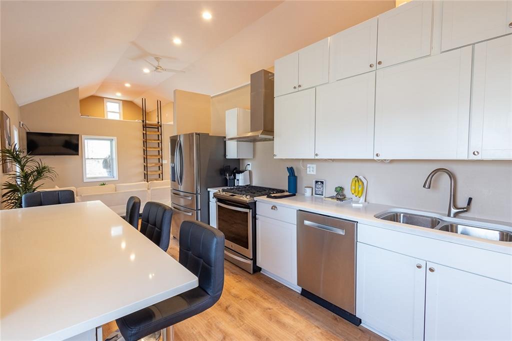 Discover a home you simply don’t see every day — a peaceful Kansas City bungalow offering character, updates, and a rare nearly-acre lot backing to trees. Just minutes from the KC Zoo, Starlight Theatre, Arrowhead Stadium, and major highways, this location makes daily life effortless — whether you’re commuting, catching a show, or heading downtown. Inside, the home welcomes you with new luxury vinyl flooring and an inviting living area that includes a built-in Murphy bed for flexible guest space. A loft tucked above offers additional storage, potential extra sleeping space, or other creative uses — giving you options most homes this size don’t provide. The kitchen shines with quartz countertops, a bar/island, gas range, newer stainless steel appliances, and plenty of room to cook and gather. The bathroom feels like a retreat with a large walk-in shower, double vanities, and in-unit stackable laundry. The bedroom is generously sized and includes a spacious closet and French doors! Outside, you’ll love what makes this home truly special: nearly an acre of land and a covered front porch backing to mature trees, creating uncommon privacy and room to enjoy the outdoors! Newer HVAC, Water Heater, and Appliances, as well as keyless entry, smart thermostat, and Wi-Fi camera system add to everyday ease and peace of mind. Updated, unique, and unexpectedly private — this home delivers more than meets the eye. Seller is Owner/Agent