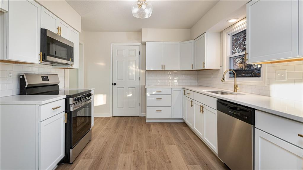 This beautifully remodeled home is truly move-in ready, featuring a brand-new electrical panel, furnace, AC, water heater, windows, flooring, interior trim and doors, exterior doors, and fresh paint inside and out. Enjoy a stunning new kitchen with quartz countertops, new cabinets, and appliances, along with updated bathroom vanities, showers, and lighting throughout. Flooded with natural light, the home offers a welcoming living room with a cozy fireplace and a partially finished walkout basement that's ready for your personal touches. Outside, a fenced backyard provides privacy and space to relax. All of this is in a prime location close to shopping, entertainment, highway access, and more! Agent/Owner