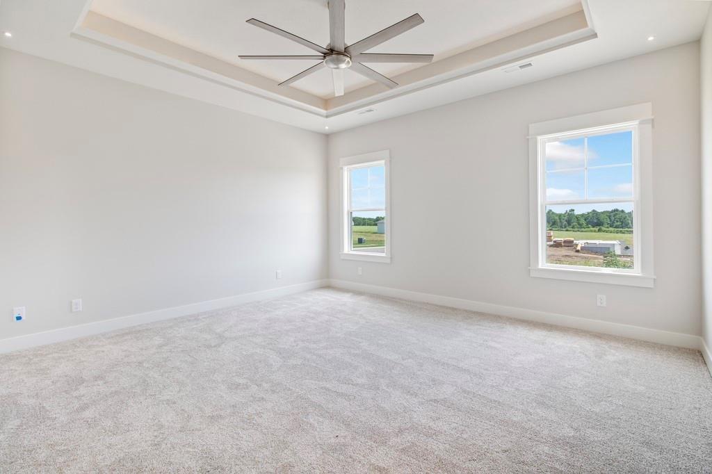 Welcome to this beautifully crafted 4-bedroom, 3 bath home located in the highly desirable Prairie View in Raymore by Drumm & Riegert! Beautiful relaxing country views but still close to all the city amenities! This true ranch home boasts a large primary suite with spacious walk-in closet, soaker tub, and walk-in shower. The gourmet kitchen is crafted for those who love to cook and entertain, boasting a gas range, LG stainless appliances, and sleek granite or quartz countertops (final selections TBD). This property includes an oversized 3-car garage with upgraded wall-mounted openers, a huge laundry room conveniently connected to primary bedroom, and expanded back patio that is partially covered for year-round enjoyment. The expanded lower level includes a wet bar, offering additional entertaining space. This home is alsosituated on a premiuim lot with adjacent common space for added privacy. Call today for a tour! Pictures are from a previously built home, finishings will vary.