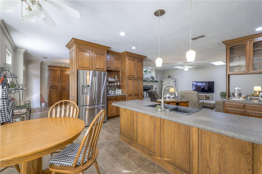 Exquisite and Well-Maintained Luxury Home on 2 Acres with lots of trees! 3 Bedroom, 2.5 Bath Move in Ready and Spacious Brick Exterior, Fresh Interior Paint, Large Kitchen w/ample Cabinets, Countertop space, Roll Out Drawers, Pantry & Tiled Floor. Large Living Room w/Wood Burning FP and Skylights. All Bedrooms are large with walk in closets. Primary bath has huge walk-in shower, dual vanities, built in storage and tiled floor. 9' Ceilings throughout the home. 3 Car Garage. Secondary Wood burning Furnace to heat the house if you wish. New Roof 2021. New tile in both full baths. Nice storage shed and privacy!