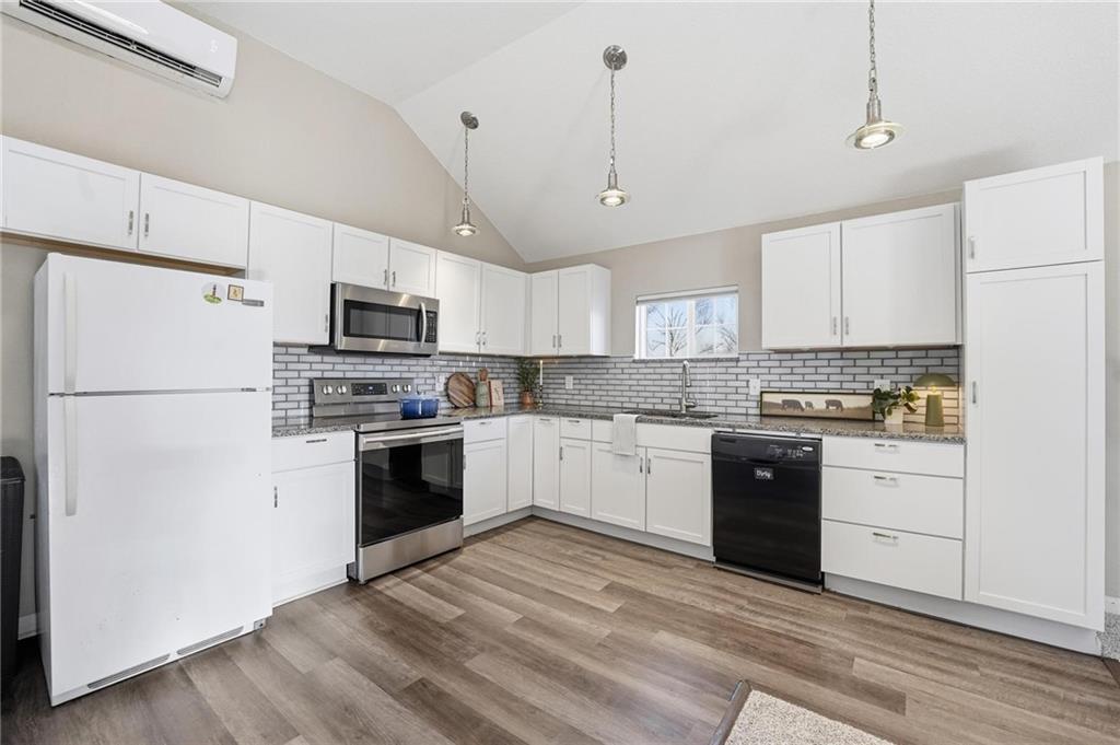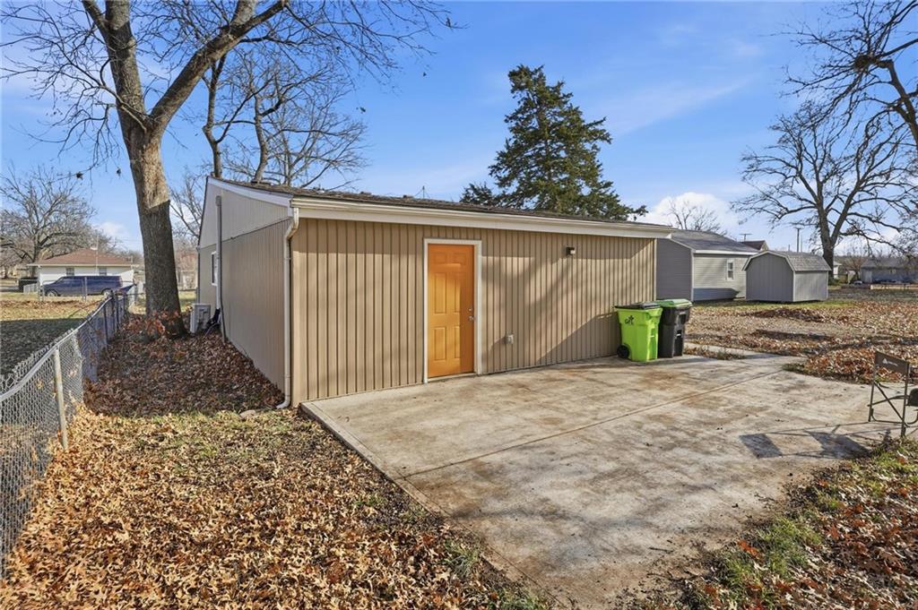 Welcome home to this beautifully remodeled 2 bedroom, 2 full bath true ranch offering 1,010 square feet of easy, modern, low-maintenance living. Fully updated in 2019 and cared for ever since, this move-in-ready home still feels fresh and new. Step inside to an open concept kitchen and living room with no steps anywhere inside or out, giving you simple and accessible living from the moment you walk in. The home is all electric with energy-efficient heating and cooling, plus individual room temperature controls so everyone can keep things just the way they like it. The roof, appliances, and HVAC units are only a few years old adding even more peace of mind. Outside, enjoy a fully fenced front yard perfect for pets, a private back patio with a built-in fire pit for cozy evenings, and a large storage shed for all your tools, totes, and extra gear. The location seals the deal. You're close to local schools, parks, shopping, and within walking distance of downtown Harrisonville, known for its great coffee shops, boutiques, and restaurants. Charming, comfortable, updated, and easy to love. Come take a look and see why this adorable ranch checks every box.