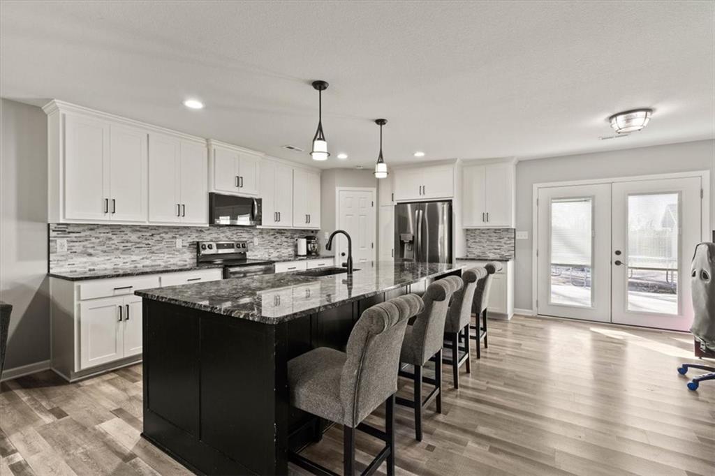 Relax on the inviting front porch and enjoy the peaceful surroundings of this beautiful home located in the heart of Archie. Built just three years ago, this residence offers modern comfort with plenty of space for everyday living. Step inside to a bright, open-concept kitchen and living area—perfect for entertaining. The kitchen features custom cabinetry and an impressive 11-foot granite island that provides both style and functionality. The main level boasts a spacious primary suite with a walk-in closet and a stunning tile-lined walk-in shower. Upstairs, you’ll find additional bedrooms offering flexibility for family, guests, or a home office. The backyard is ready for your dream outdoor setup, already prepared for a pool with a limestone pad and unique blue lighting accents along the privacy fence. A wired shed is also included and ready for hookup. Additional highlights include a security system that stays with the home. This move-in ready property combines modern features with small-town charm—don’t miss your opportunity to make it yours.