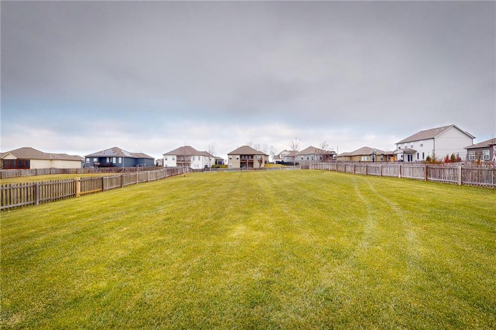 This beautiful Trumark Home - The Marie II is a Reverse 1.5-story / Ranch. This home is move-in ready and only 6 years young! Featuring 4 bedrooms, 3.5 baths, and a 3-car spacious garage, this property sits on nearly half an acre—one of the largest lots in the neighborhood—complete with a fenced backyard. Step inside to an open, high ceiling, inviting floor plan with a spacious living room that flows seamlessly into the dining area and kitchen. The kitchen offers granite countertops, ample cabinetry, a walk in pantry AND a butler’s pantry with a wine fridge for added convenience. The main-level Primary Suite includes a large walk-in closet with pulldowns connected to the laundry room, plus a gorgeous en-suite bath with quartz countertops. A second main-level bedroom adds versatility for guests or office space. The finished lower level expands your living space with a generous family room and wet bar, along with Bedroom #3 featuring a private full bath, and Bedroom #4 with an attached half bath. A storm shelter provides peace of mind. Outdoor living shines with an oversized stamped patio, built-in firepit, and a grill gazebo that stays. The back quarter of the yard is home to multiple garden areas with strawberries and blueberry bushes, and a 6-zone sprinkler system keeps everything lush and green.