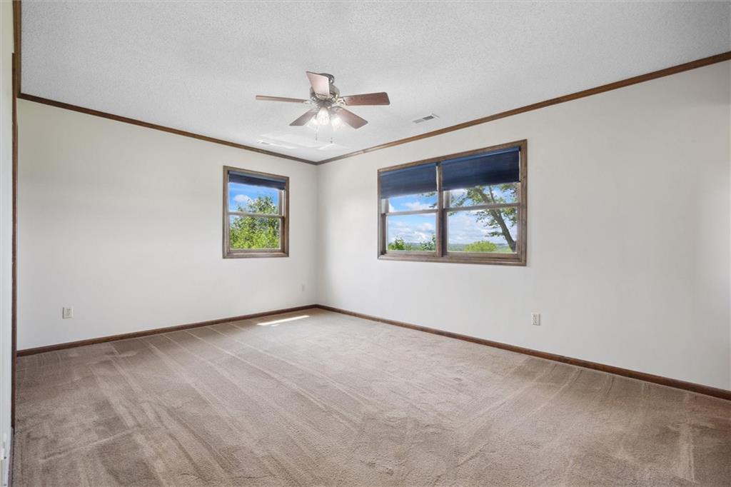 Horizon Ridge Place is a well-cared for home set on approximately 7.20 acres of high-elevation ground, capturing big-sky views in nearly every direction. The property has been pre-inspected, with improvements completed for buyer peace of mind. Inside, you will find a comfortable layout with 3 conforming bedrooms and 3 bathrooms, plus a finished basement that includes an additional non-conforming bedroom and extra living or recreation space. A new wood-burning stove in the basement adds both warmth and character, creating a cozy gathering spot on cooler days. The main floor connects easily to outdoor decks where you can watch sunrises, sunsets, and distant city lights across surrounding brome and pasture. The home includes an attached 1-car garage, and the outbuilding with loft offers additional parking, workshop, and storage options ideal for hobbies, equipment, or future projects. Hard-surfaced access just off US Highway 40 places you minutes from Topeka, with direct routes to I-70 and a straightforward drive toward Lawrence, while still enjoying a quiet rural setting near Tecumseh. This all-electric home is serviced by the rural water district, and AT&T fiber is in place, making this a rare utility combination for country living. Simple protective covenants govern the surrounding Horizon Ridge Estates acreage. Buyers of Horizon Ridge Place will have the first opportunity to purchase the adjacent Horizon Ridge Estates Tract 8, making it possible to expand the homestead footprint if desired.
