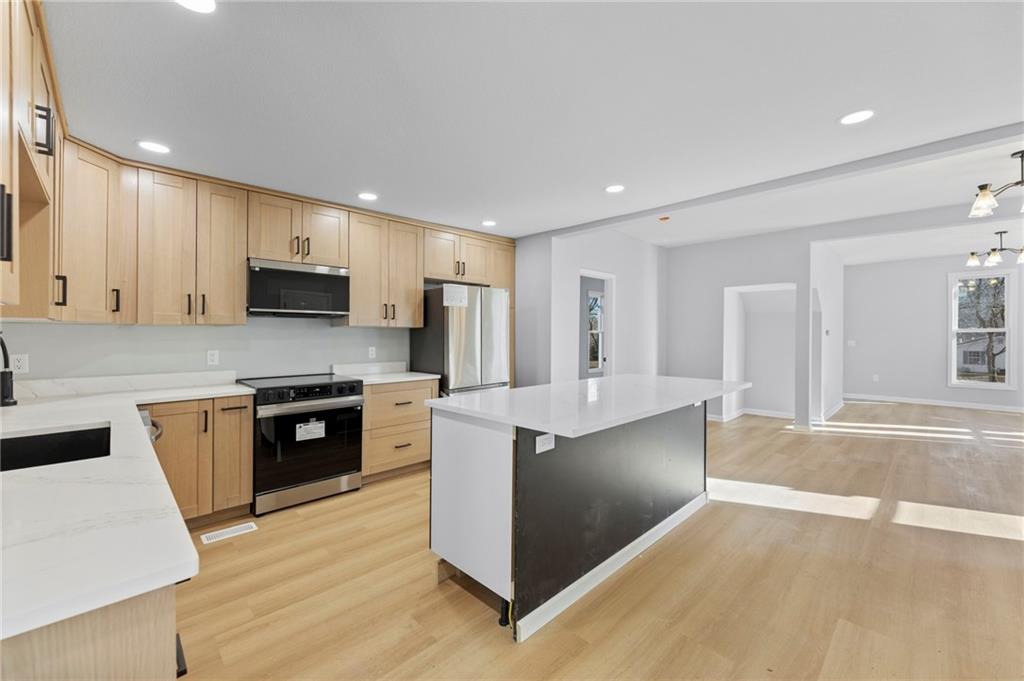 Welcome to 236 S Ash St in Ottawa, KS — a beautifully renovated 2,315 sq ft home on a peaceful 1.17-acre lot. This 4-bedroom, 2.5-bath property feels like a brand-new custom build and qualifies for Ottawa’s 5-year tax abatement program, offering valuable long-term savings. The open main level features all-new flooring, paint, lighting, and finishes, highlighted by a stunning custom kitchen with premium cabinetry, high-end countertops, stylish hardware, and a spacious walk-in pantry. The main-floor primary suite provides convenience and privacy, while the updated bathrooms showcase tiled showers and modern vanities. Upstairs includes additional bedrooms and a unique indoor overlooking balcony, adding character and an airy architectural touch. Outside, enjoy the expansive 1.17-acre backyard with endless potential for outdoor living, a shop, or gardening, plus a storage shed for added functionality. Major updates include new electrical, plumbing, siding, roof, and windows, offering peace of mind for years to come. With luxury finishes, thoughtful design, and extensive upgrades throughout, this home truly stands out in the Ottawa market.