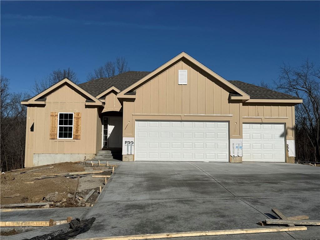 **BACKING TO TREES**The "KENNA" by Robertson Construction sits on a PREMIUM LOT with a Beautiful setting. This Gorgeous Reverse 1.5-Story offers 4 bedrooms, 2 on the Main Level, 3 Full Baths and is built with 2x6 exterior walls, an upgraded insulation package along with a super high efficiency heating and cooling system! An Open Layout features Floor to Ceiling Windows showing off the peaceful view, Stone Fireplace accented with Floating Shelves, Kitchen Island, Solid Surface Countertops, Custom Built Cabinets and WALK-IN PANTRY. Oversized Covered Deck is accessible from both the Master Suite and Breakfast Area. The PRIVATE Master Suite has a luxurious Master Bath and WALK-IN Closet that conveniently adjoins to the Laundry Room. You will find more Finished Square Footage in the WALKOUT Basement featuring Floor to Ceiling Windows, 2 more Bedrooms, Full Bath, LARGE FAMILY ROOM and a generous amount of storage! PATIO at WALKOUT. Located in the NKC/Staley High School District! Great subdivision amenities including a pool, clubhouse, tennis/basketball court and play area.