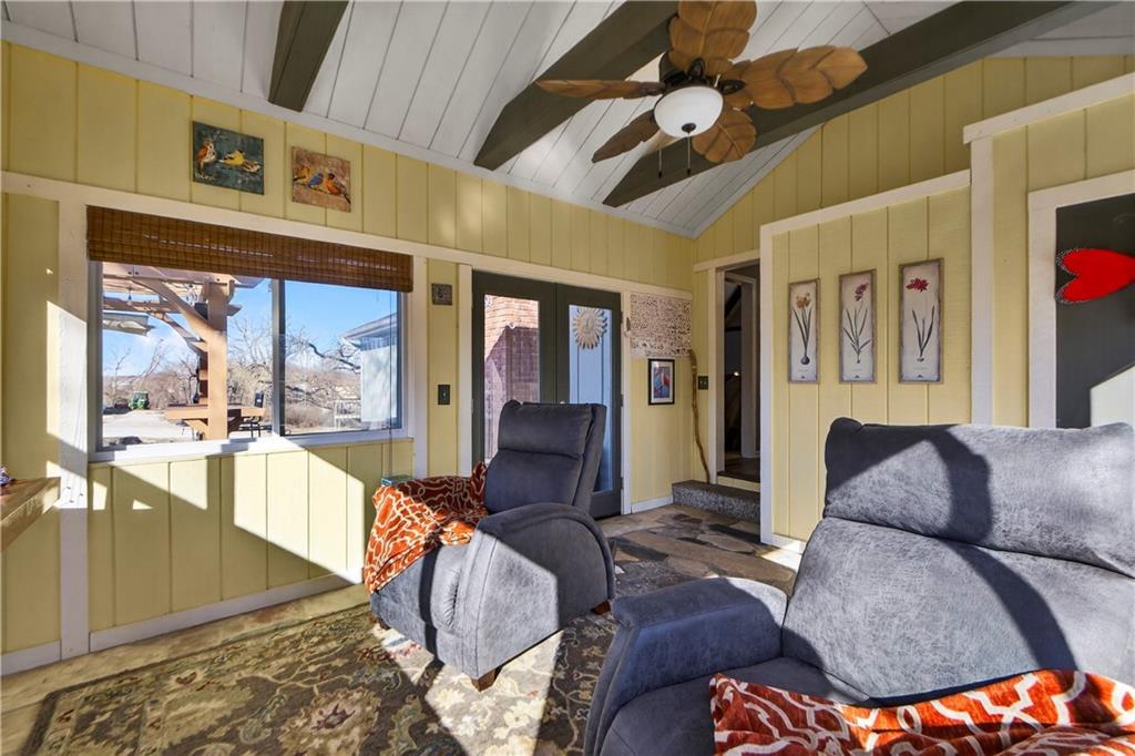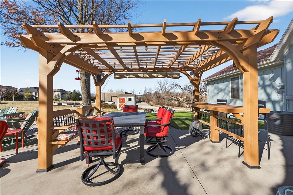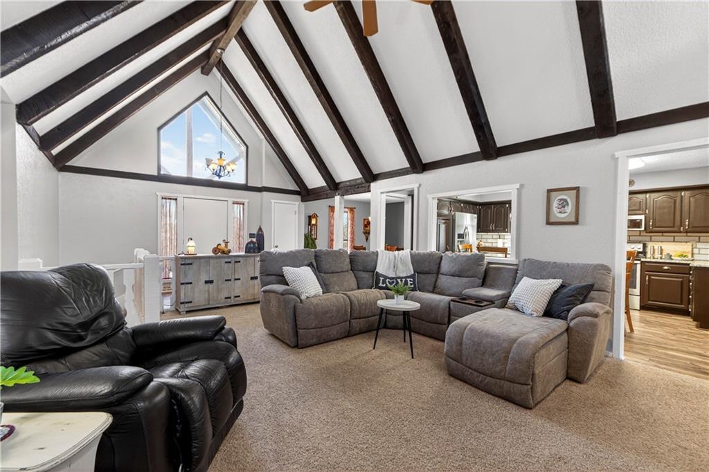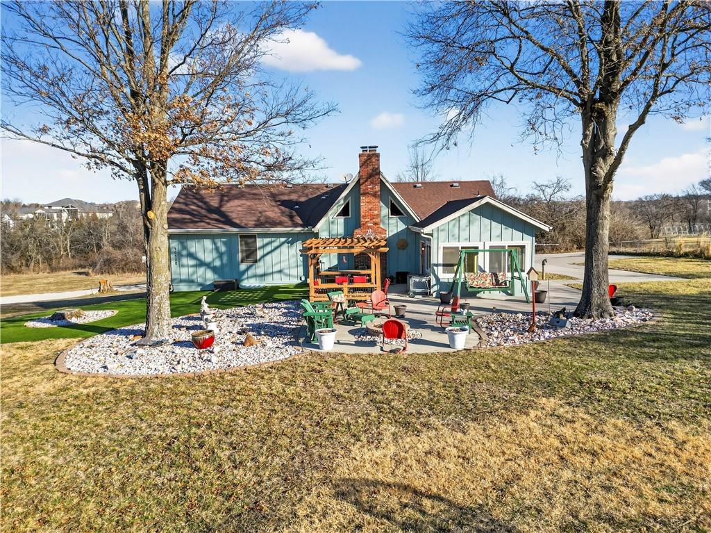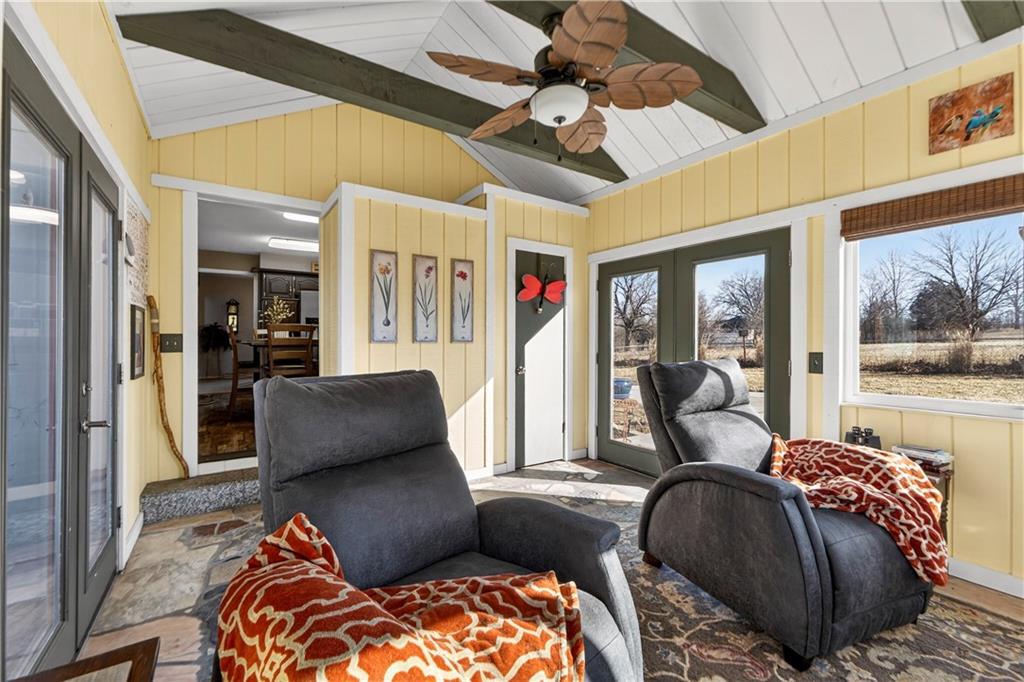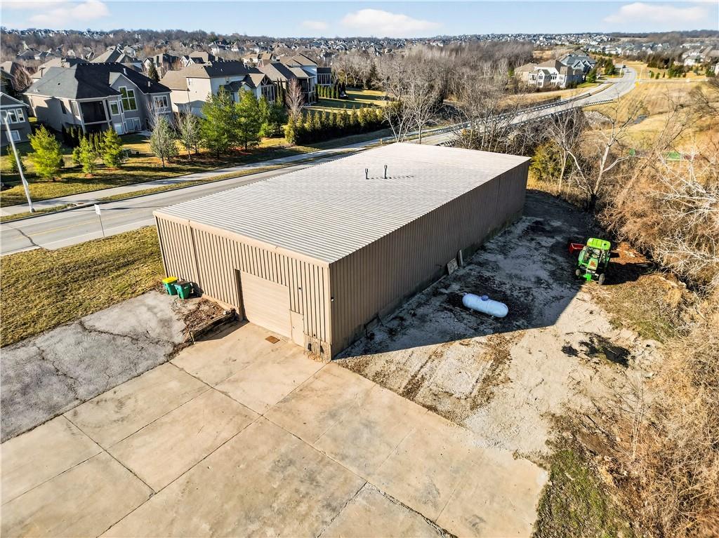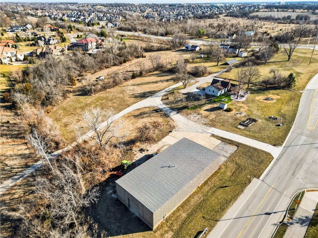 Rare Opportunity on 3.66 Acres in South Overland Park! This unique property offers incredible flexibility with a raised ranch home and an impressive outbuilding—both located within city limits and with no HOA. The home sits on a 1.05-acre lot and features a light, open interior with vaulted ceilings and spacious living areas. The kitchen offers granite countertops, subway tile backsplash, and ample cabinetry, opening to the main living space for easy everyday living and entertaining. A bright sunroom with vaulted ceilings and a wall of windows overlooks the front yard and provides access to the side driveway and patio area with gazebo and partial turf yard. The lower level offers additional living space ideal for guests, hobbies, or storage. The true standout feature of the property is the massive 4,692 sq ft outbuilding situated on its own 2.61-acre parcel. The building includes propane heaters, electrical panel, water source, a half bath, and a 464 sq ft mezzanine that can function as office space or additional storage. Both parcels—totaling 3.66 acres—are included in the sale and share a single access point. Currently zoned residential, this setup creates endless possibilities: operate a home-based business, create exceptional workshop or hobby space, store vehicles and equipment, or build a luxury estate. Located in a rapidly growing area of Overland Park near shopping, dining, parks, and major highway access, this property also sits adjacent to the luxury homes of Garnett Hill—creating a rare opportunity to own acreage in a premier location without HOA restrictions.
