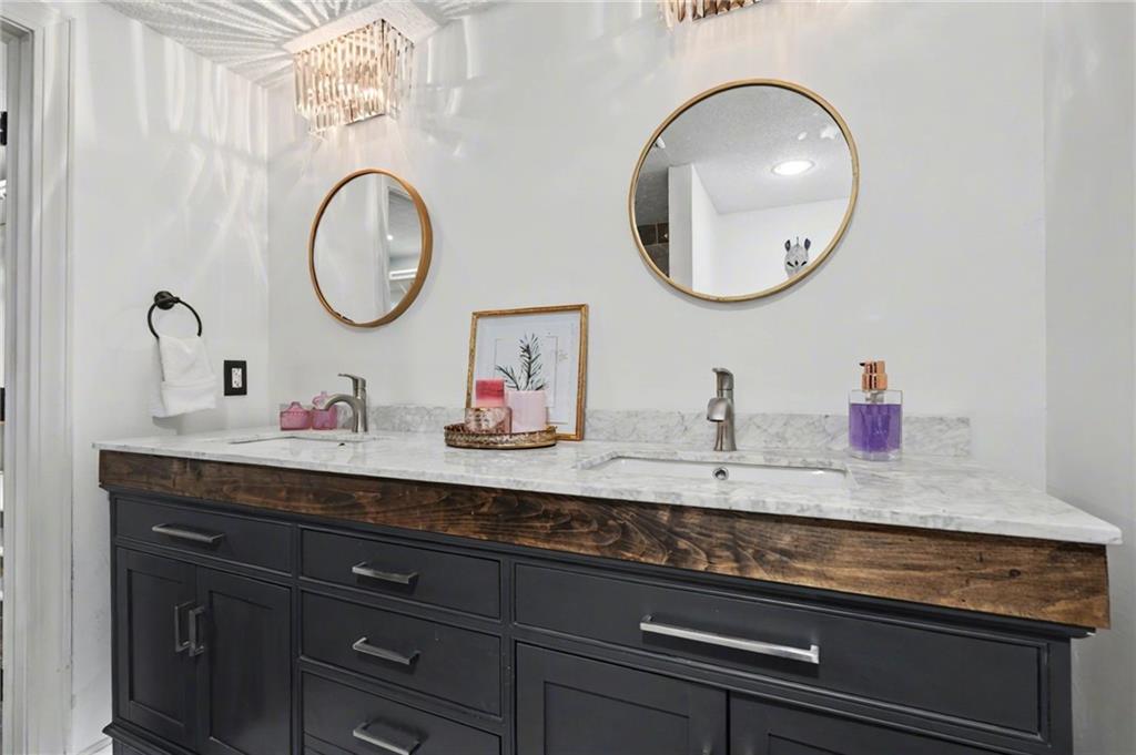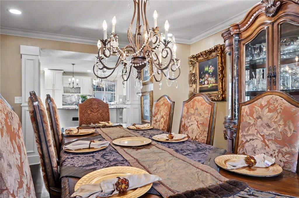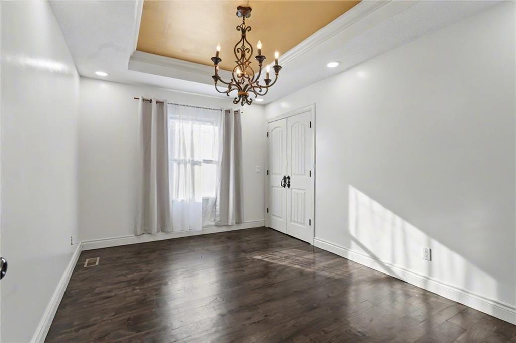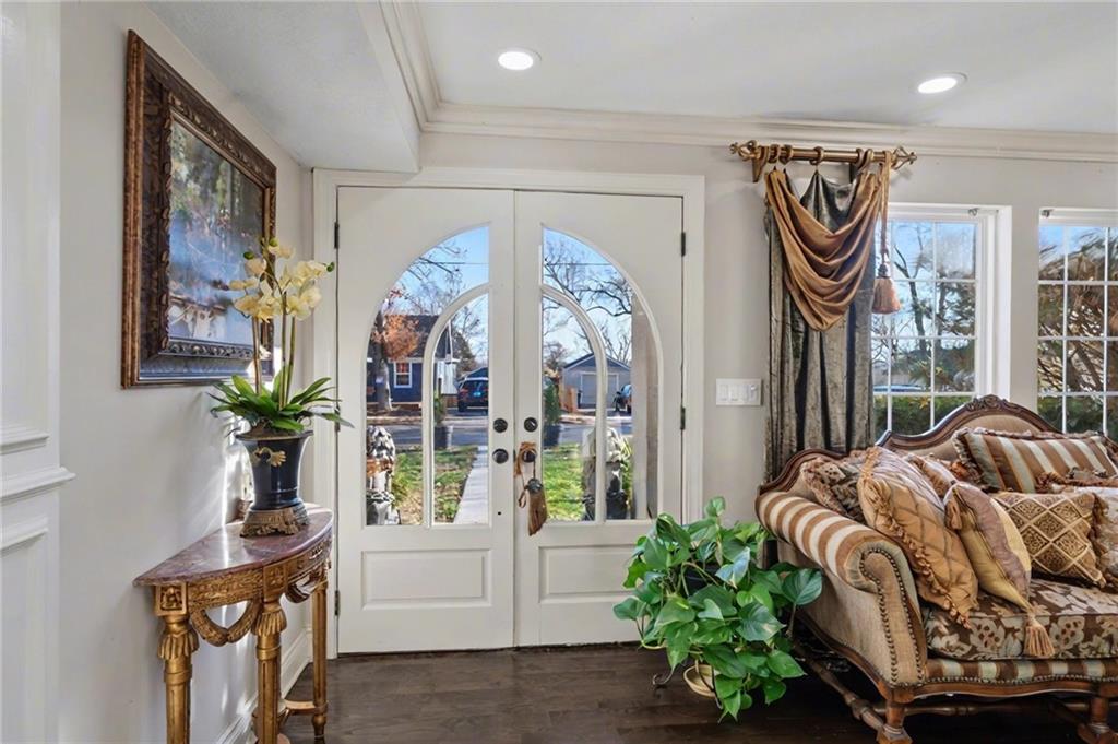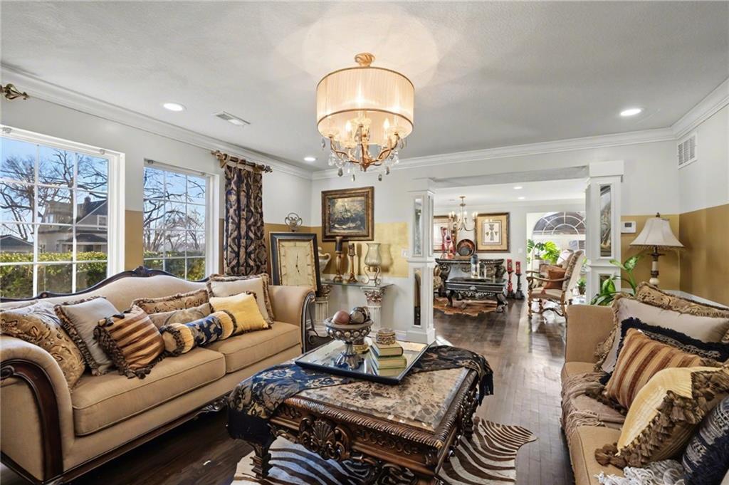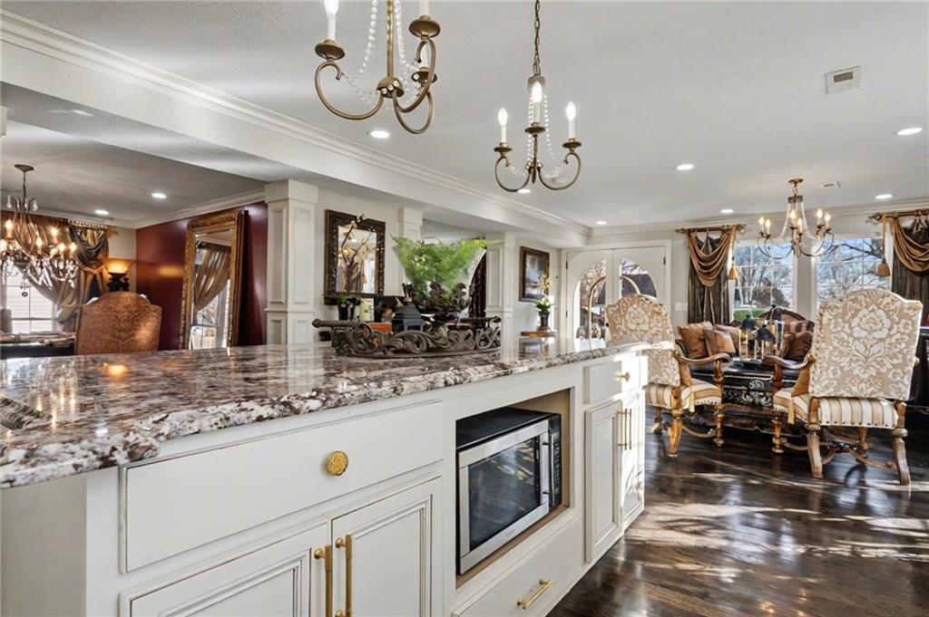 Welcome home to this exceptional and elegant 5 bedroom, 3 bath home in the heart of De Soto. This stunning home features 5 spacious bedrooms, 3 full bathrooms, an open floorplan with hardwood flooring, large windows allowing for an abundance of natural light throughout, plus so much more!! An added feature is the large detached 4 car garage with workshop, office and recreation room on almost 1/2 acre lot. As you step into the entryway you are greeted with tall ceilings, picture windows, and gleaming hardwoods. The beautiful living room has a South facing solarium for plant lovers or a sunny reading nook. The spacious kitchen has beautiful granite countertops and backsplash, 36” gas cooktop, a generous kitchen island for culinary space and seating for four, plus a pantry with pull-outs. The dining room and family room spaces are connected to the main area while also creating a cozy feeling with custom pillars and mouldings, creating a floorplan perfect for entertaining or large family gatherings. Full bath just steps from the main level bedroom that opens to the covered deck with fireplace and quiet yard. Upstairs features four more bedrooms with large closets, a hall bath and primary suite with double vanity, walk-in closet and tiled shower. The largest bedroom has a walk-in closet and balcony. After a long day, relax in the cozy backyard under the covered deck overlooking the fireplace and additional terraced decks. From the custom interior lighting, beautiful trim, windows and doors, to the exterior spaces, balcony, and large yard, this home has exceptional design details both inside and out! Just a short walk away from quaint downtown De Soto and near De Soto schools, the peaceful Lexington Lake Park, and within an easy commute to KC, Lawrence, & surrounding areas, this property has it all! No HOA is ideal for using the detached garage for business or hobbies.