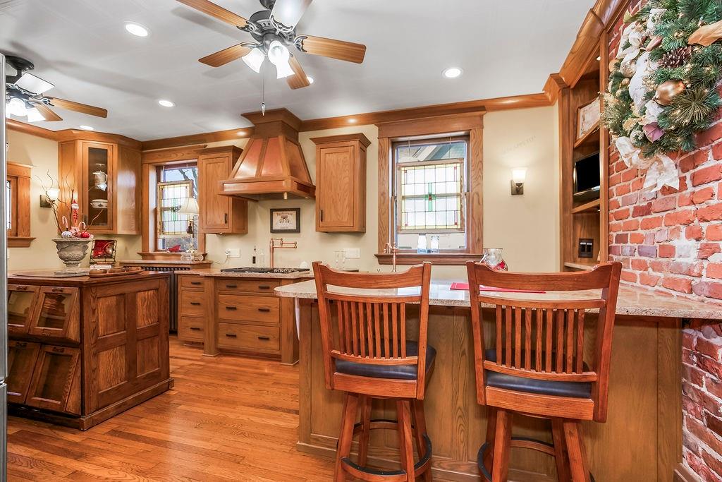 Exceptionally preserved historic home offering original craftsmanship, timeless architectural detail, and thoughtfully integrated modern updates. Features include rich original hardwood floors, extensive woodwork, built-ins, leaded glass windows, and period charm throughout. The chef's kitchen blends old-world character with modern function, highlighted by exposed brick wall, custom cabinetry and a basket-weave copper sink. Updated baths include heated floors and discreet built-in Bluetooth speakers honoring comfort without sacrificing authenticity. The home offers a master suite to include a generous closet space to design your dream closet, a finished basement with bath and a pub great for entertaining, beautiful screened porch, heated studio area with separate entrance, all with many multiple recent improvements. Heating, cooling, electrical and plumbing have all been attended to. A rare opportunity to own a lovingly restored historic residence where classic design and modern livability coexist beautifully. Ready for you to move right in!