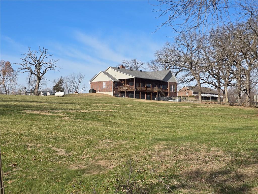 Beautiful 2400 sq ft Ranch house with 1900 sq ft finished basement. Nearly 7 acres partially wooded with a circle drive. Home has a covered front porch, 20x40 covered rear deck, walk-out with 9ft ceilings & a 2 car garage. The Main floor of home has 10' to14' ceilings, laundry, kitchen, family room, dining room, great room with lots of windows to enjoy the view. Large master suite with walk-in shower & jetted tub and 2 other bedrooms with a hallway bath. Home has two stone fireplaces...double-sided fireplace in dining room / family room and one with insert in basement family room. Open staircase to basement...family room, office, 2 additional bedrooms, bathroom, storm cellar under front porch and tons of shelved storage.
