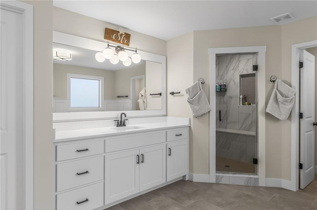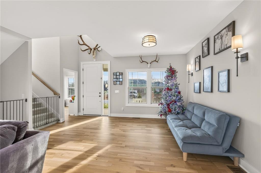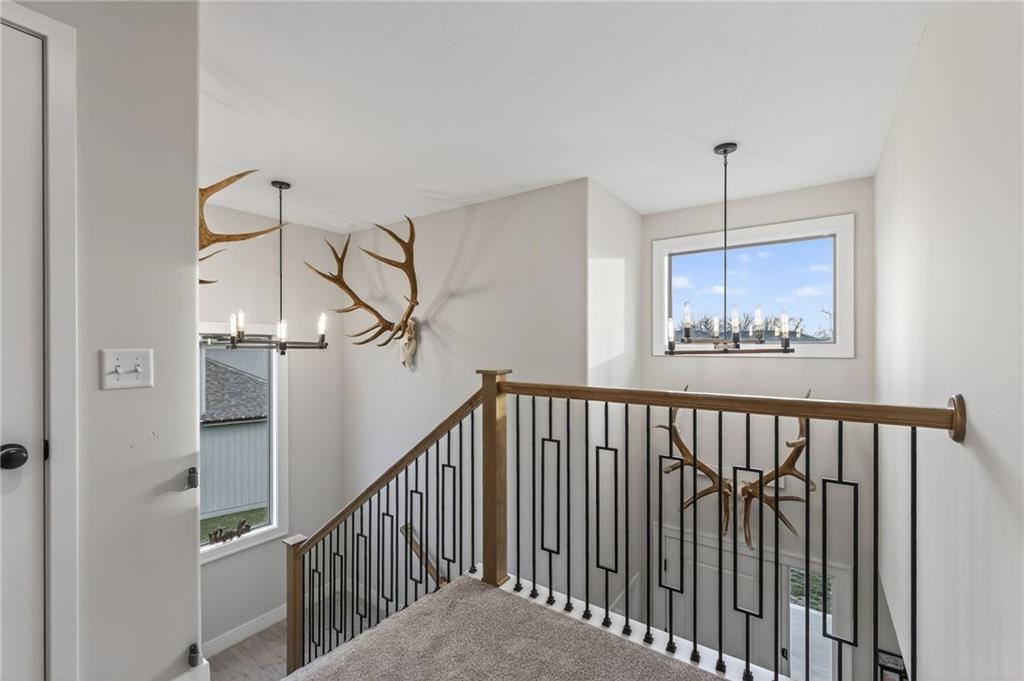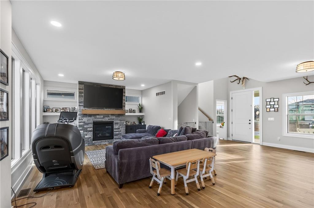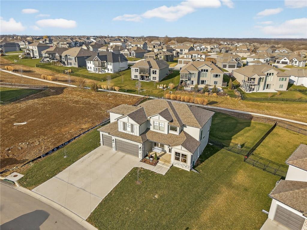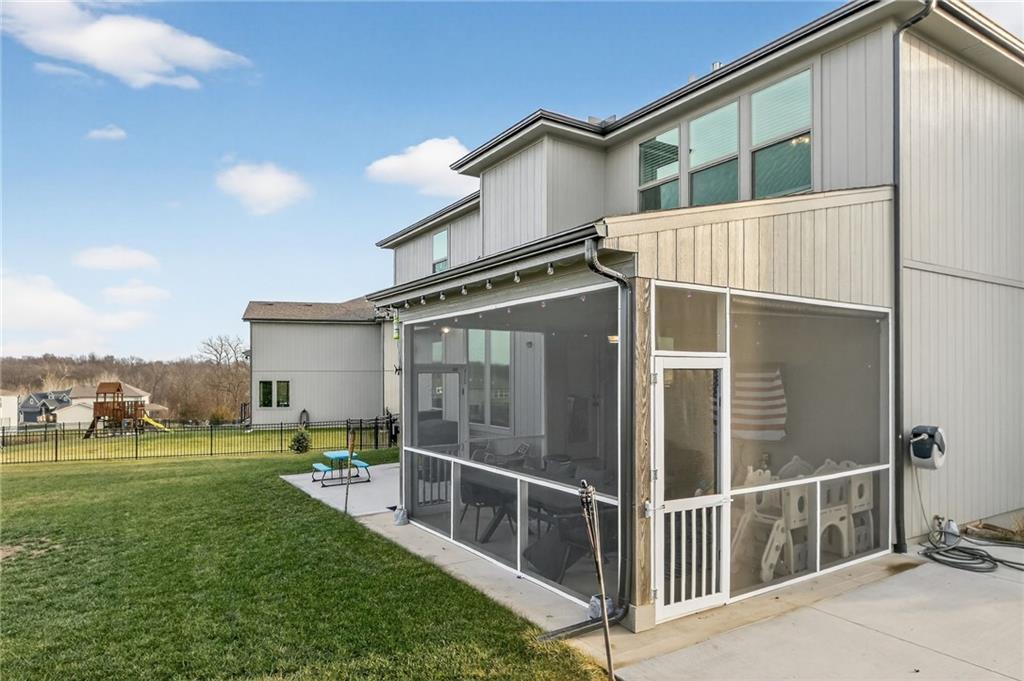 Stunning 4 bedroom, 3 full bath, 2 half bath home built just two years ago in the desirable Woodland Trails subdivision. Thoughtfully designed floor plan with a bathroom connected to every bedroom. Spacious open-concept main level features a large kitchen with oversized island, ample cabinetry, and seamless flow to living and dining areas. Fully finished basement includes a dedicated workout room, private office, and additional living space. Screened-in porch overlooks the fenced backyard with direct access to neighborhood trails leading to the lake behind the home. Community amenities include pool, playground, multiple sport courts, and extensive walking trails. Located in the highly sought-after Lee’s Summit School District. This home offers modern construction, functional design, and exceptional neighborhood amenities.