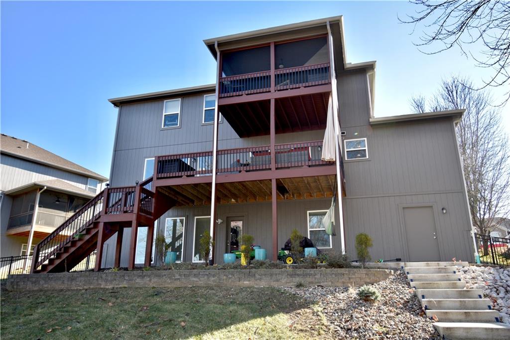 Honey, stop the car — this is the one! Beautifully appointed 5-bedroom, 4.1-bath home with a 3-car garage, nestled among mature trees and extensive, thoughtfully designed landscaping. Enjoy breathtaking views from multiple decks that extend the living space outdoors, offering ideal settings for entertaining, dining, or peaceful retreats surrounded by nature. This spacious and welcoming home delivers privacy, comfort, and a resort-like atmosphere. Only five years old and meticulously cared for, no detail has been missed in this private retreat. Features include a finished walkout basement, tasteful low-maintenance landscaping, and a full front and back yard sprinkler system. The main level offers an open-concept design with excellent flow and ample space for gathering. The owner’s suite features a spa-like bath and private access to a screened-in deck. Backing to trees, the home also offers seasonal winter views of Smithville Lake.