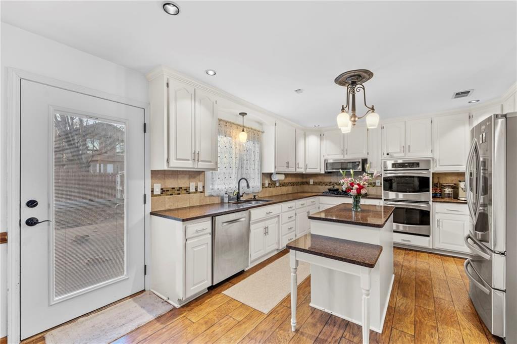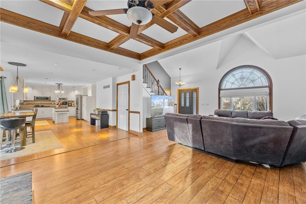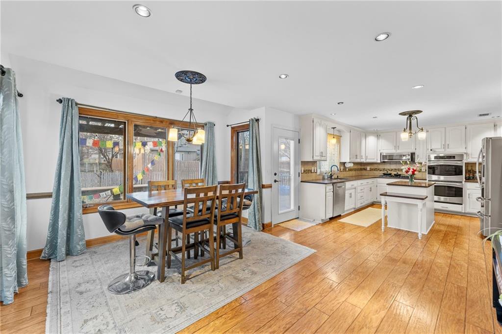 DON'T MISS OUT on an opportunity to own this fantastic 2-story home in a highly sought-after Overland Park neighborhood in Blue Valley schools! From the moment you step inside, you’re immediately greeted by a beautiful staircase & a huge family room with soaring two-story ceilings, creating an open & inviting atmosphere. Just beyond the family room, relax in the warm and welcoming hearth room boasting a beautiful brick fireplace, dramatic 10-foot beam-accented ceilings, and oversized windows overlooking a spacious, park-like backyard. The abundance of windows along the back of the home fills every space with natural light. The open-concept design flows into the dining area and a huge kitchen, complete with granite countertops, stainless steel appliances, a large center island, and generous cabinet and countertop space, perfect for both everyday living and entertaining. Adjacent to the kitchen is a convenient laundry room and a half bath for guests. Step out from the kitchen onto a huge over-sized deck with a pergola, ideal for outdoor dining, relaxing, or summer barbecues. The backyard is fully fenced and generously sized, offering plenty of room to play, garden, or entertain. Upstairs, you'll find a luxurious primary suite, two additional bedrooms and a hall bathroom. The primary suite provides a true retreat with a beautifully updated en suite bathroom featuring dual vanities, a jacuzzi tub, walk-in shower, and an expansive walk-in closet. Two additional bedrooms and a full hall bath offer ample space for family or guests. The second-story landing overlooks the impressive family room below, adding to the sense of space and light throughout. The finished basement is ideal for a second recreation area, entertaining, or relaxed living, plus it offers substantial storage space. Enjoy the outdoors with parks and trails nearby, and benefit from convenient proximity to great restaurants and shopping. This home is ready for you to move in and make it your own. A MUST SEE!