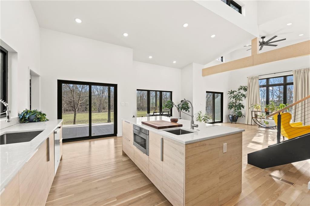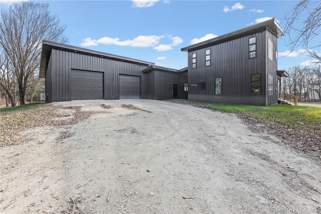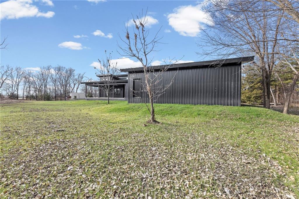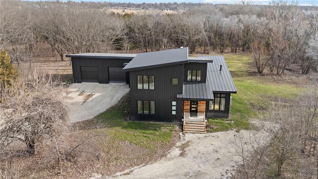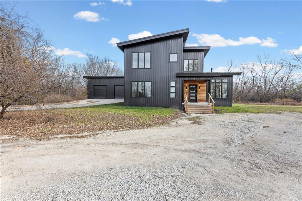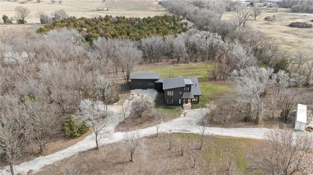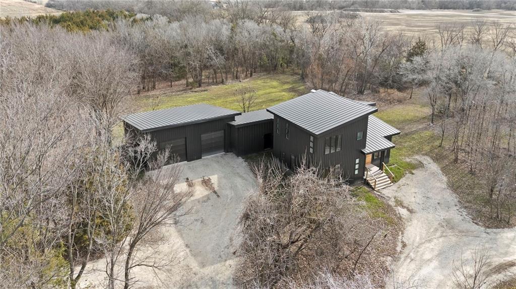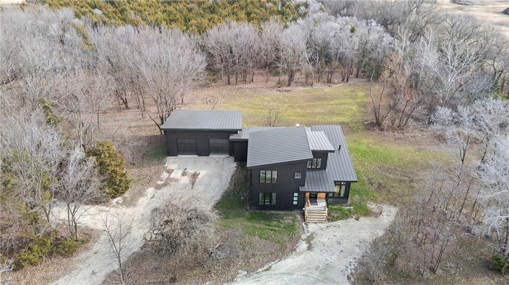 Discover a truly one-of-a-kind new construction set on 9.5 private, wooded acres, offering peaceful seclusion just 0.2 miles from the city limits on a paved road. This custom-built modern home pairs clean architectural lines with warm natural materials, creating a light-filled, open-concept design with soaring ceilings. Built for longevity and efficiency, the home features 2x12 floor joists and 2x6 exterior walls, along with expansive dual low-E Pella Impervia insulated windows that flood the interior with natural light. White oak hardwood floors extend throughout the living areas and bedrooms, complemented by a striking floating staircase with thick white oak plank steps. The thoughtfully designed layout includes three bedrooms, two and a half bathrooms, and a spacious 1,000+ sq. ft. attached two-car garage with 10-foot garage doors. Bathrooms and the large laundry/mudroom are finished with durable tile flooring for everyday practicality. At the heart of the home, the chef-ready kitchen showcases premium finishes and a large island that seamlessly connects to the dining and living spaces—ideal for both daily living and entertaining. The main-floor primary suite offers a private, serene retreat, while additional rooms flex easily as guest suites, a home office, or creative studio. Indoor-outdoor living is emphasized through access to a covered patio overlooking quiet forest views, perfect for morning coffee or relaxing evenings under the stars. Despite its private setting, the property is fully connected to city water, gas, and electrical services, blending modern convenience with acreage privacy. This exceptional property offers a rare combination of modern design, superior craftsmanship, and natural surroundings—a lifestyle opportunity seldom to be found. Schedule your private showing today.