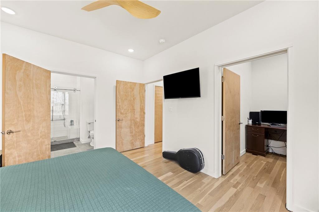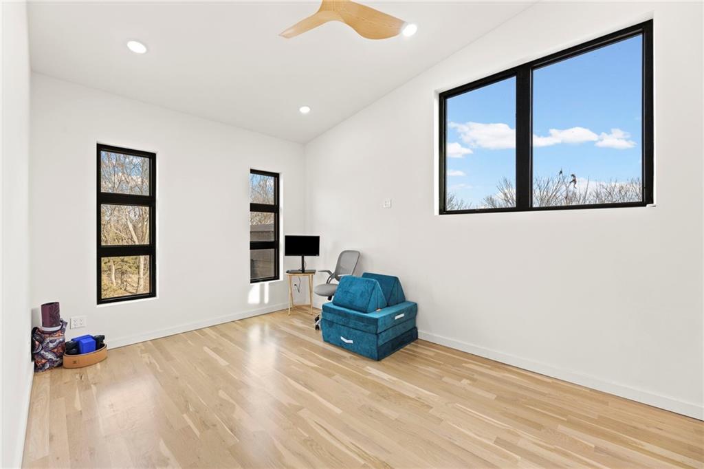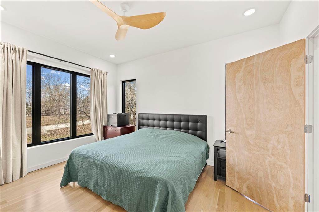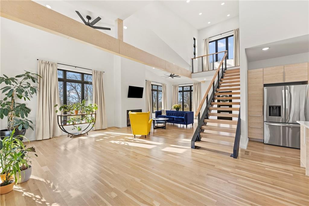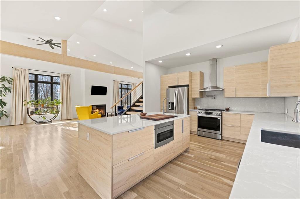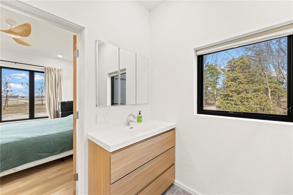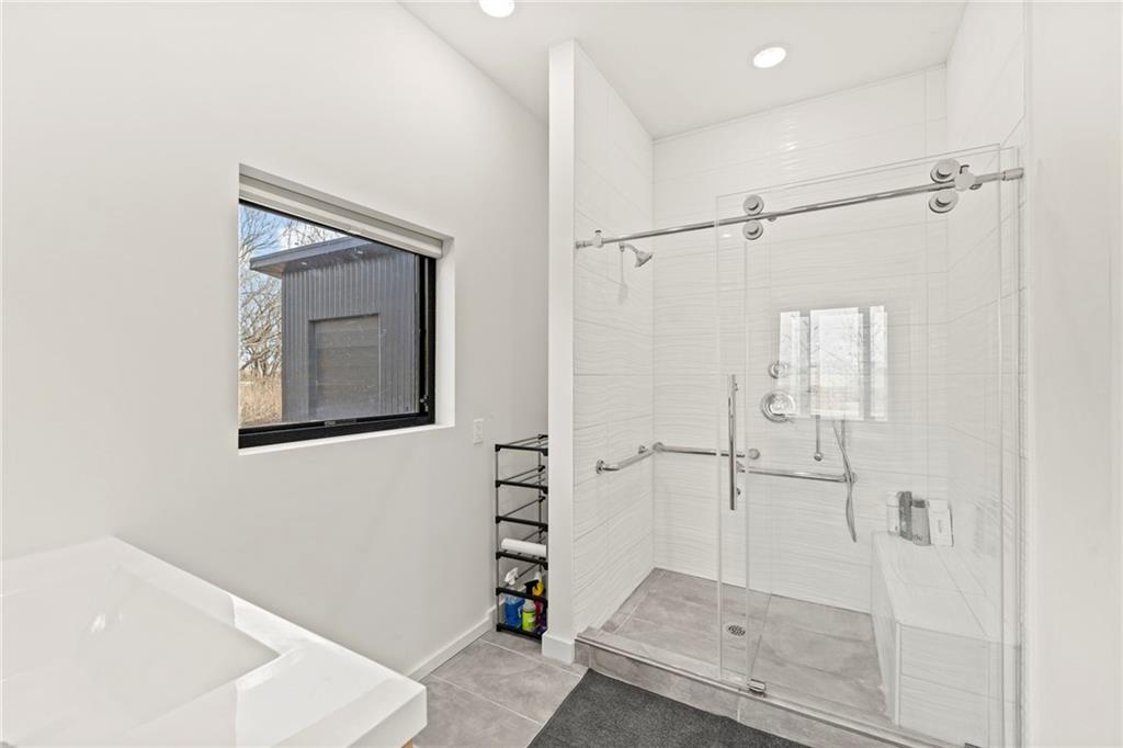 Discover a truly one-of-a-kind new construction set on 9.5 private, wooded acres, offering peaceful seclusion just 0.2 miles from the city limits on a paved road. This custom-built modern home pairs clean architectural lines with warm natural materials, creating a light-filled, open-concept design with soaring ceilings. Built for longevity and efficiency, the home features 2x12 floor joists and 2x6 exterior walls, along with expansive dual low-E Pella Impervia insulated windows that flood the interior with natural light. White oak hardwood floors extend throughout the living areas and bedrooms, complemented by a striking floating staircase with thick white oak plank steps. The thoughtfully designed layout includes three bedrooms, two and a half bathrooms, and a spacious 1,000+ sq. ft. attached two-car garage with 10-foot garage doors. Bathrooms and the large laundry/mudroom are finished with durable tile flooring for everyday practicality. At the heart of the home, the chef-ready kitchen showcases premium finishes and a large island that seamlessly connects to the dining and living spaces—ideal for both daily living and entertaining. The main-floor primary suite offers a private, serene retreat, while additional rooms flex easily as guest suites, a home office, or creative studio. Indoor-outdoor living is emphasized through access to a covered patio overlooking quiet forest views, perfect for morning coffee or relaxing evenings under the stars. Despite its private setting, the property is fully connected to city water, gas, and electrical services, blending modern convenience with acreage privacy. This exceptional property offers a rare combination of modern design, superior craftsmanship, and natural surroundings—a lifestyle opportunity seldom to be found. Schedule your private showing today.