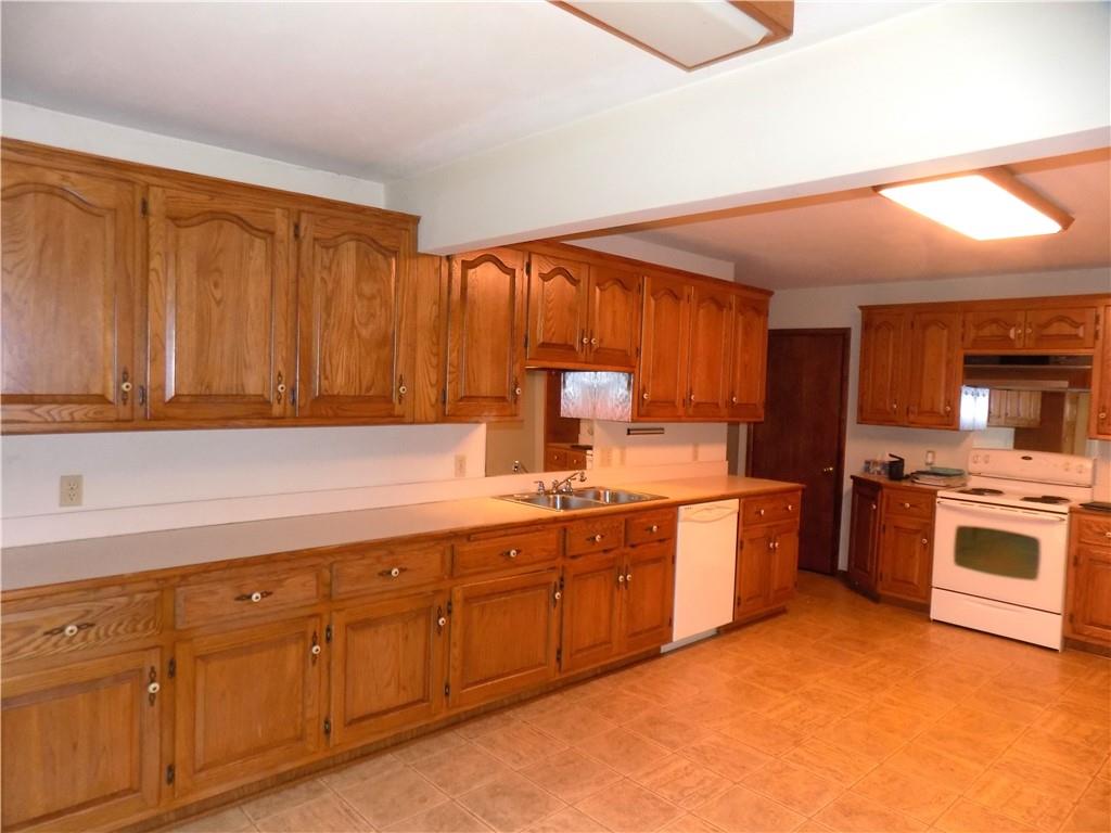 Large Ranch Style Home on Corner Lot! This home has lots of potential; 1,889 sq. ft., 3 bedrooms, 2 full baths, large kitchen area with lots of wood stained cabinets, breakfast area, separate dining room, living room with a decorative fireplace, full unfinished basement and attached 2 car garage. The backyard has a nice composite deck, chain link fence and a 10x12 storage shed that remains with the property. Basement has been reinforced with piers and has a 25 year warranty.