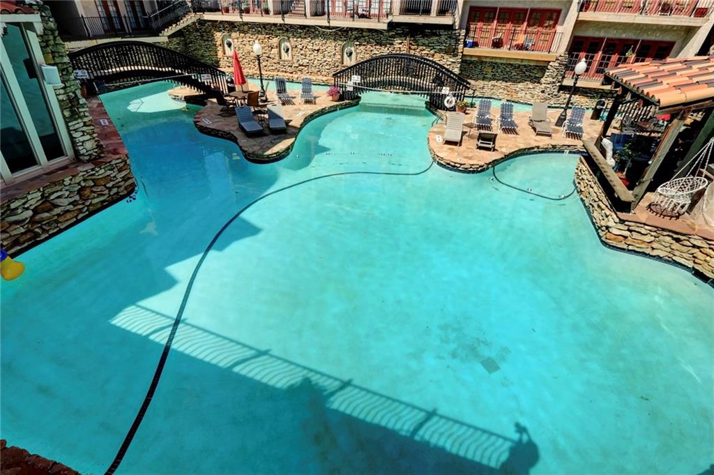 Luxury condo living at Bella Condominiums just off The Country Club Plaza. This fully updated second-story unit offers 2 bedrooms and 1 bathroom in one of the most desirable gated communities in the area. Enter through double French doors into a beautifully remodeled space featuring wood floors, exposed beams, and a modern two-toned kitchen with granite countertops, custom cabinetry, and stainless steel appliances—all of which stay, including the in-unit washer/dryer combo. The spacious primary bedroom includes generous closet space, while the second bedroom offers a built-in desk—perfect for a home office. The bathroom has been fully updated with granite counters and a tiled walk-in shower with built-in bench. Step out onto your private balcony with a fantastic view overlooking the resort-style pool. This unit includes one gated off-street parking space. HOA amenities include: clubhouse, fitness center overlooking the pool, secure package room, poolside entertainment areas, and building maintenance. Prime location near the best shopping, dining, and entertainment The Plaza has to offer. Move-in ready with all appliances included. Don’t miss this rare opportunity in a highly sought-after building.