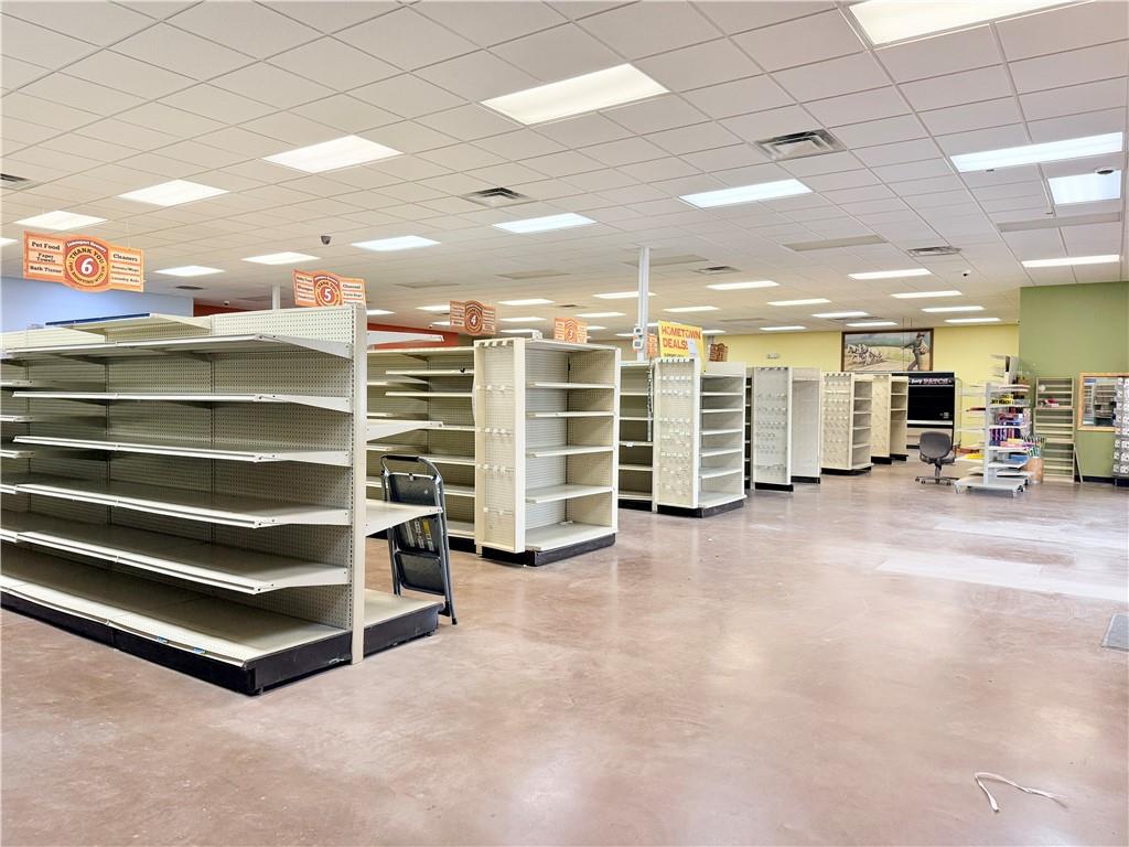 Versatile Commercial Building in the Heart of Jamesport, MO! Exceptional opportunity to own a well-maintained 9,626± square foot commercial building, constructed in 2012, located in the charming and progressive rural community of Jamesport, Missouri. Previously operated as a grocery store, this property offers outstanding infrastructure suitable for a wide range of commercial uses. The building features concrete floor throughout, and durable metal siding accented with an attractive stone façade, creating excellent curb appeal. Inside, the layout includes a spacious retail area, two bathrooms, a dedicated office, breakroom, and a backroom storage area designed for efficient operations. The property is equipped with 3-phase power, a fully functional HVAC system, and existing coolers and freezer units that operate off a central refrigeration system—an ideal setup for food service, retail, or cold storage uses. A new Conklin coating roof installed in May 2025 comes with a transferable warranty, offering long-term peace of mind. Additional highlights include a rear loading dock with overhead door, two double-entry storefront doors, each with covered concrete patio areas, and a 16-camera security system with audio and video monitoring. The site sits on just under one acre, providing ample parking with concrete across the storefront and additional gravel parking. Location is key, surrounded by a community center to one side and downtown retail businesses on the other side, being central for all the local happenings. This well-equipped commercial property combines functionality, visibility, and flexibility in a growing community—an excellent investment or owner-operator opportunity.