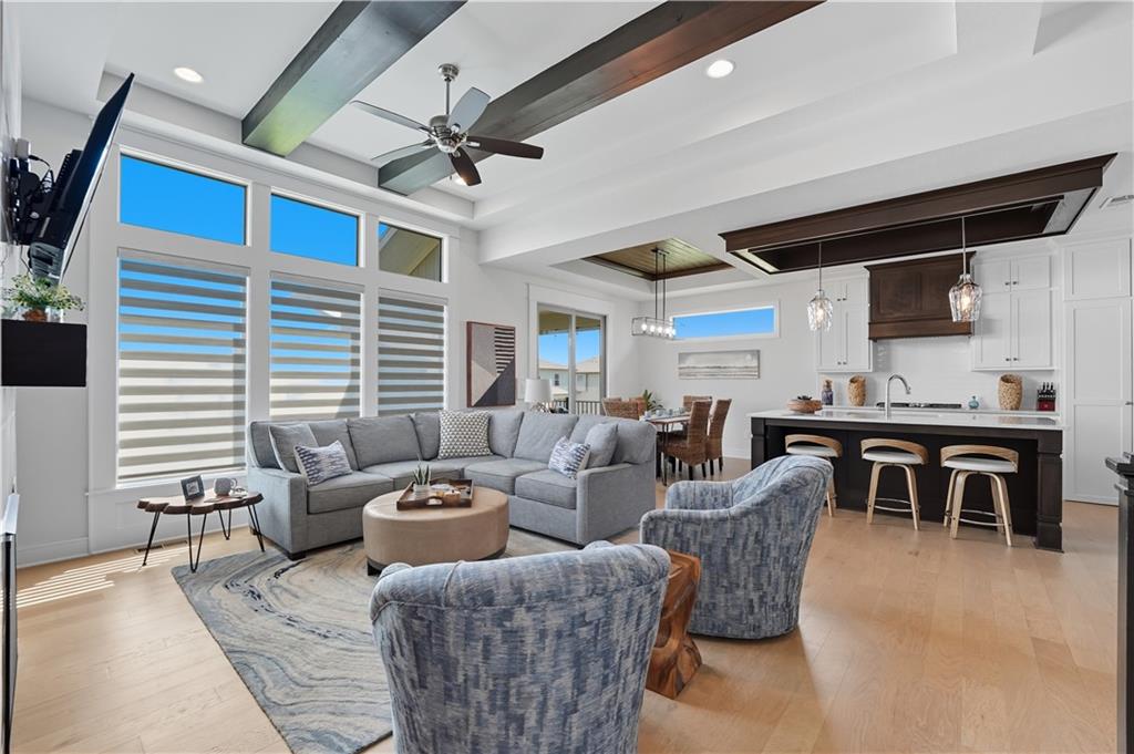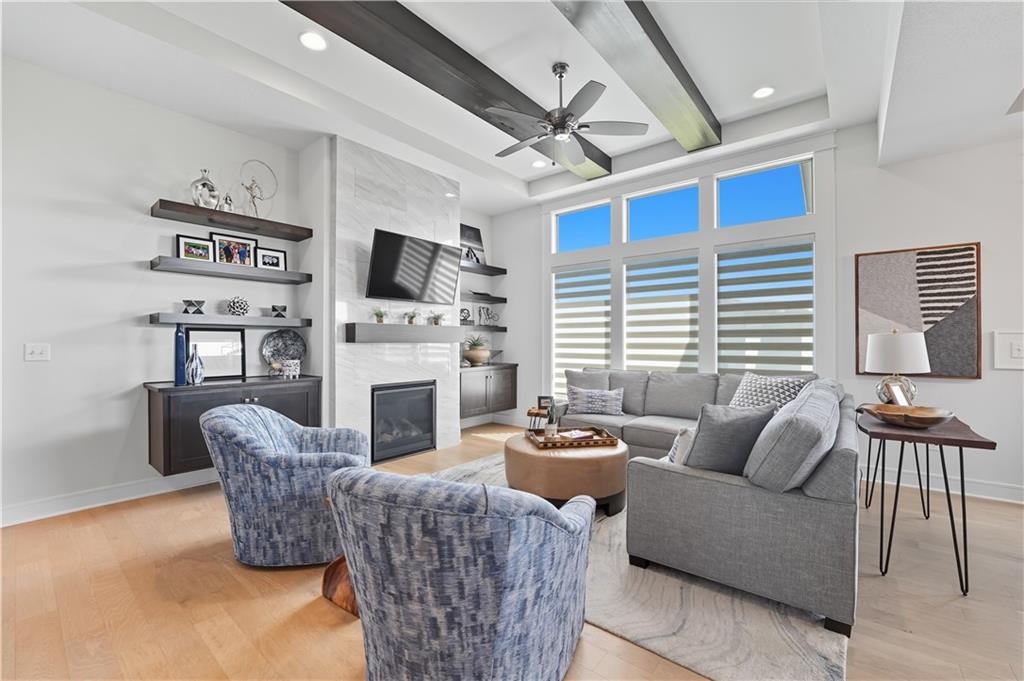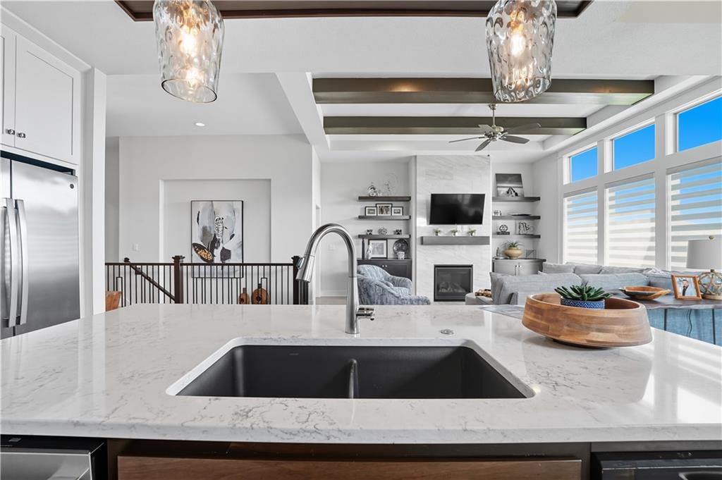 Absolutely Immaculate — Better Than New in Wolf Run! Welcome to this stunning, like-new home in highly sought-after Wolf Run, lightly lived in as a second residence and meticulously maintained. Impressive upgrades include a fully fenced yard, serene screened-in porch, premium window treatments throughout, and a professionally epoxied garage floor — all ready for you to enjoy! Step inside and be captivated by soaring 11-foot ceilings and abundant natural light. To your right, find a versatile true bedroom or office and a beautifully appointed full hall bath. The chef’s kitchen is a showstopper — featuring striking custom ceilings with stained beams and boxed vault accents, a generous quartz island, expansive walk-in pantry, and stunning cabinetry that reaches the ceiling. The adjacent living room centers around a modern, cozy fireplace flanked by built-ins and floating shelves — perfect for both daily living and entertaining. The main-level primary suite is truly exceptional. Designed with style and comfort in mind, it showcases a double boxed vault ceiling, an elegant spa-like ensuite bathroom with zero-entry shower, luxurious soaker tub, framed mirrors, and a deluxe walk-in closet. Main-level living is effortless with a spacious laundry room accessible from both the entryway and the primary suite. Downstairs, discover an expansive finished lower level ideal for gathering and recreation — complete with a full bar, dining area, two additional large bedrooms, a full bathroom, and plenty of extra storage. The 3 gar garage fits a huge truck or SUV nicely. Be sure to check out the Upgrades sheet totaling more than $32,000 in upgrades! This home blends style, function, and upscale touches at every turn. A must-see property — truly turnkey!