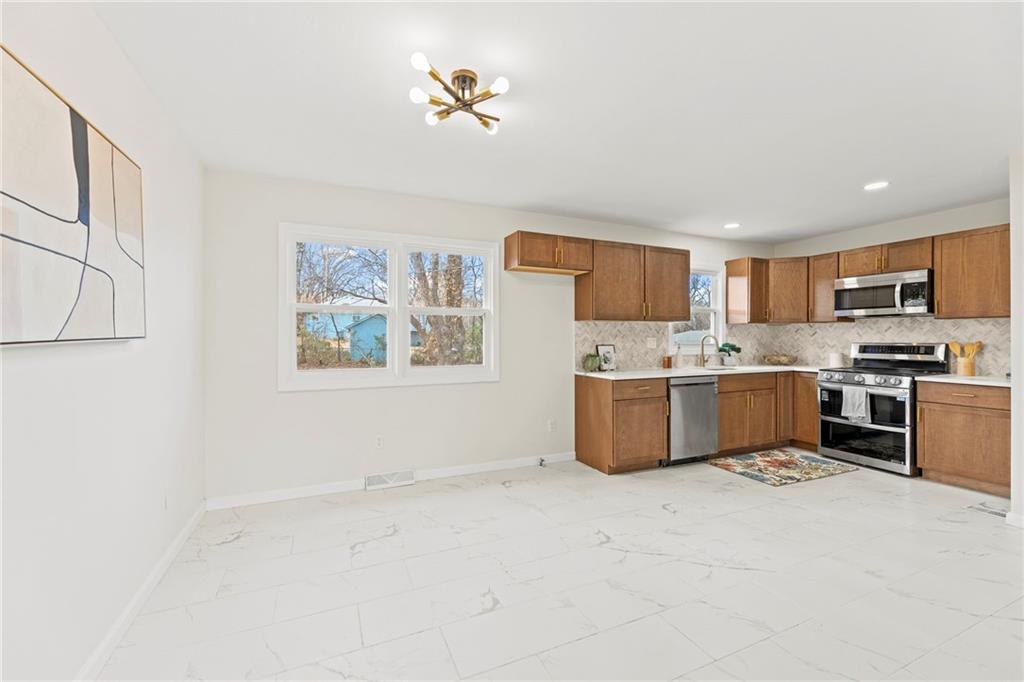 Welcome to 2514 N 64th St, this charming and beautifully updated 3-bedroom, 2-bath home with a 2-car garage is situated on a corner lot. This home features a brand-new kitchen, two fully remodeled bathrooms, and a private primary suite. Enjoy outdoor living on the floating deck, with a fully fenced in yard. Plus plenty of unfinished basement storage with the opportunity to finish for added future value. Cute, modern updates throughout and conveniently located near KCK Community College and F.L. Schlagle High School. Move-in ready with room to grow!