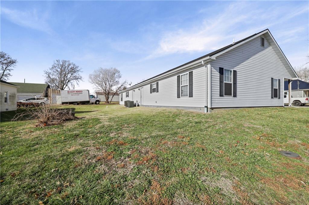 Solid investment duplex featuring two 2-bed, 1-bath units with open-concept living spaces, one-car garages, and in-unit laundry. This adorable duplex is located on a corner lot, has low-maintenance vinyl siding, and includes a spacious extra lot with future build potential (buyer to verify). Just minutes from downtown and its charming square—great rental appeal with room to grow.