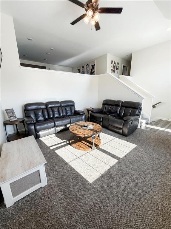 Spacious and well-maintained home in the Traditions subdivision featuring a popular front-to-back split layout with multiple living areas and thoughtful finishes throughout. The main level offers an open-concept kitchen with large granite island, stainless steel appliances, ample cabinetry, pantry, and eat-in dining area overlooking the vaulted great room below, creating a bright and open feel. The primary suite includes a walk-in closet and private bath with double vanity and walk-in shower. Two additional bedrooms, a full bath, and main-level laundry complete the main floor. The finished daylight basement provides a generous second living area, fourth bedroom, and full bath—ideal for guests, recreation, or work-from-home needs. Additional features include luxury vinyl plank flooring, carpeted bedrooms and basement, recessed lighting, ceiling fans, thermal windows, and an attached 2-car garage. Attractive stone and siding exterior with covered front entry. Convenient location near schools, parks, pool, trails, and easy highway access. Move-in ready with flexible living space in a growing neighborhood