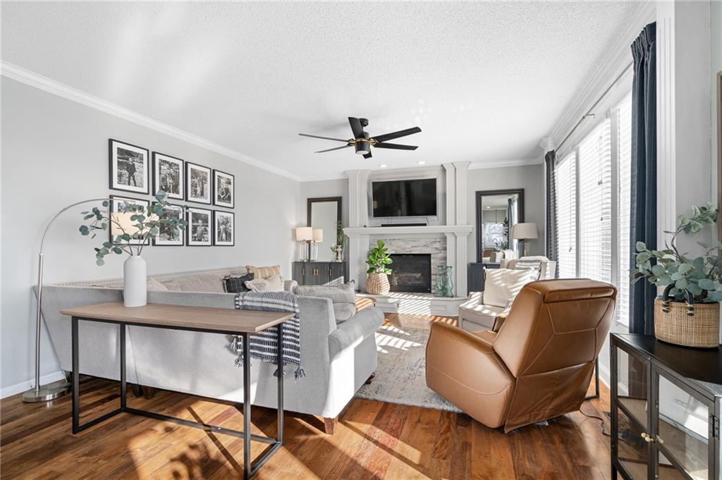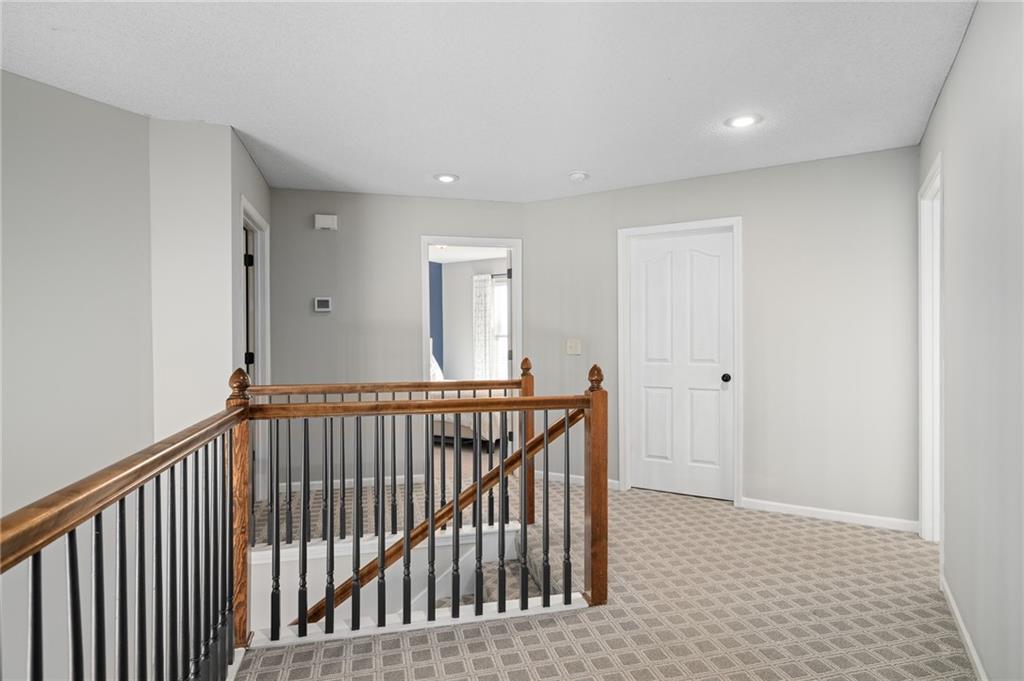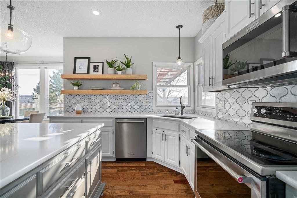 There’s no better way to start the new year than in a home this beautiful. Masterfully designed and stylish, your new 4 bedroom, 3.1 bath home with 3 car garage sits on a large corner lot in and checks boxes you didn't even know you needed! The main level is open and airy with a grand 2 story entry, a dining room with new carpet, and lots of fresh interior paint. The updated kitchen features a large quartz island, pantry, and flows right into the breakfast room and great room with a fireplace, think cozy mornings and sparkling evenings. Upstairs, the primary suite is super spacious with a sitting area, walk-in closet, and an updated bath with new LVP, soaker tub, and separate shower. Secondary bedrooms are generously sized with walk in closets and two additional full baths. Zoned HVAC adds year-round comfort by allowing customized temperature control throughout the home. The finished lower level offers an open rec room, flex space, heated floors, and great storage. Outside, the expanded patio with pergola is ideal for hosting or relaxing any time of year. Oak Run offers a neighborhood pool, top rated West Olathe schools, easy highway access, and is close to Lake Olathe. A perfect home in a great location where amazing memories are waiting to be made!