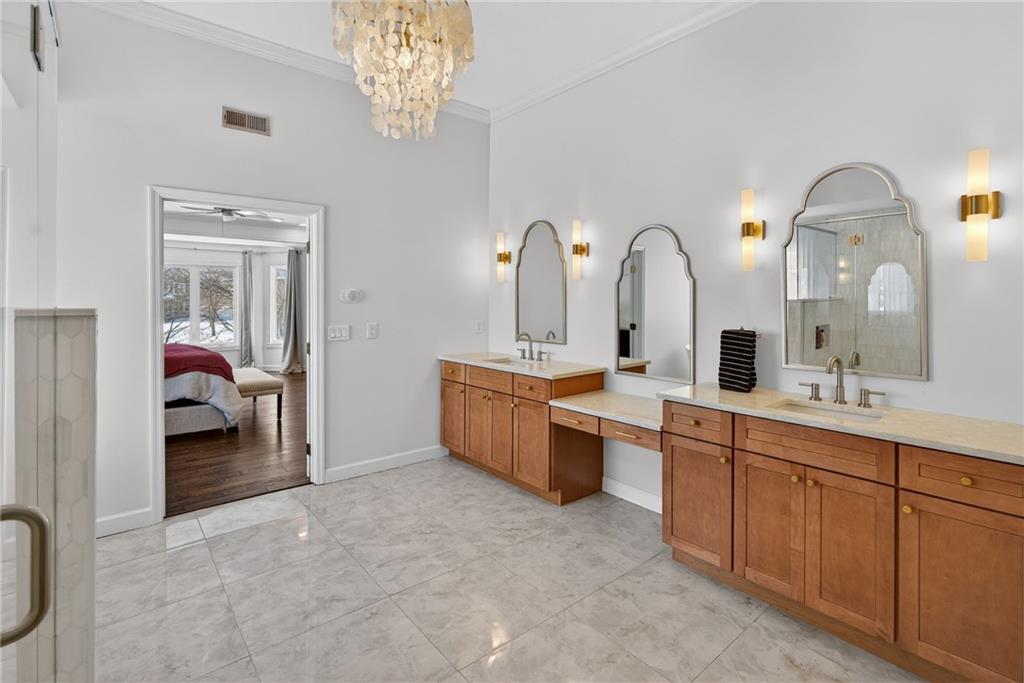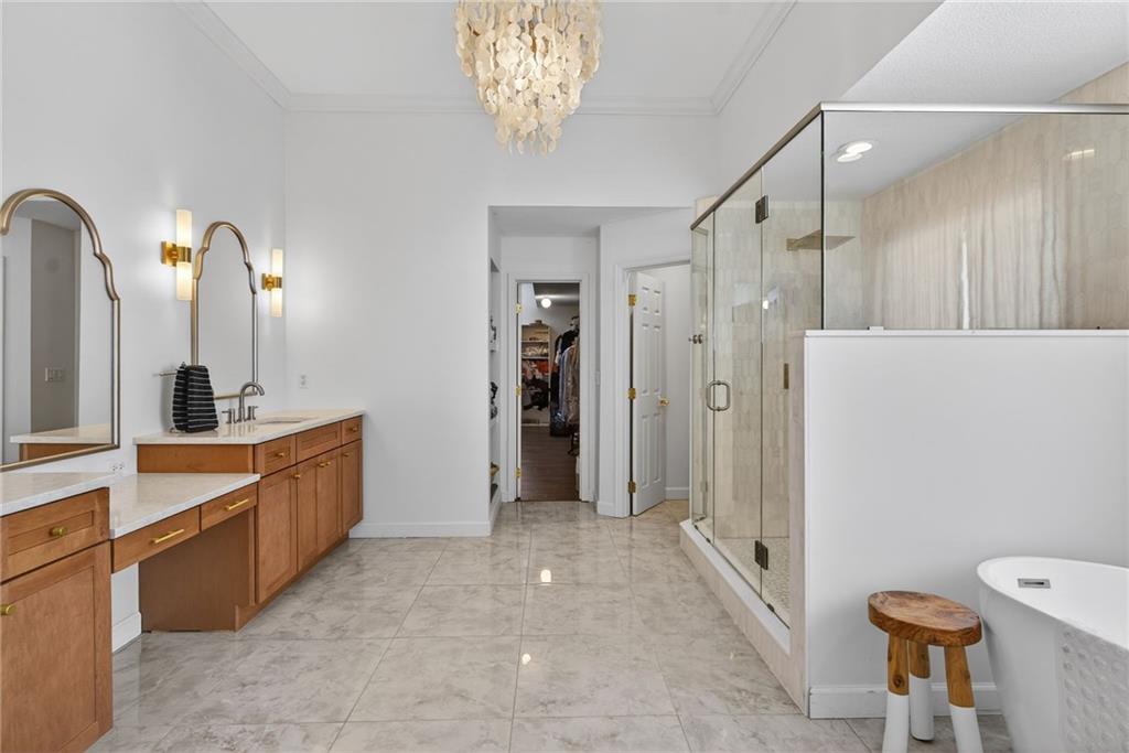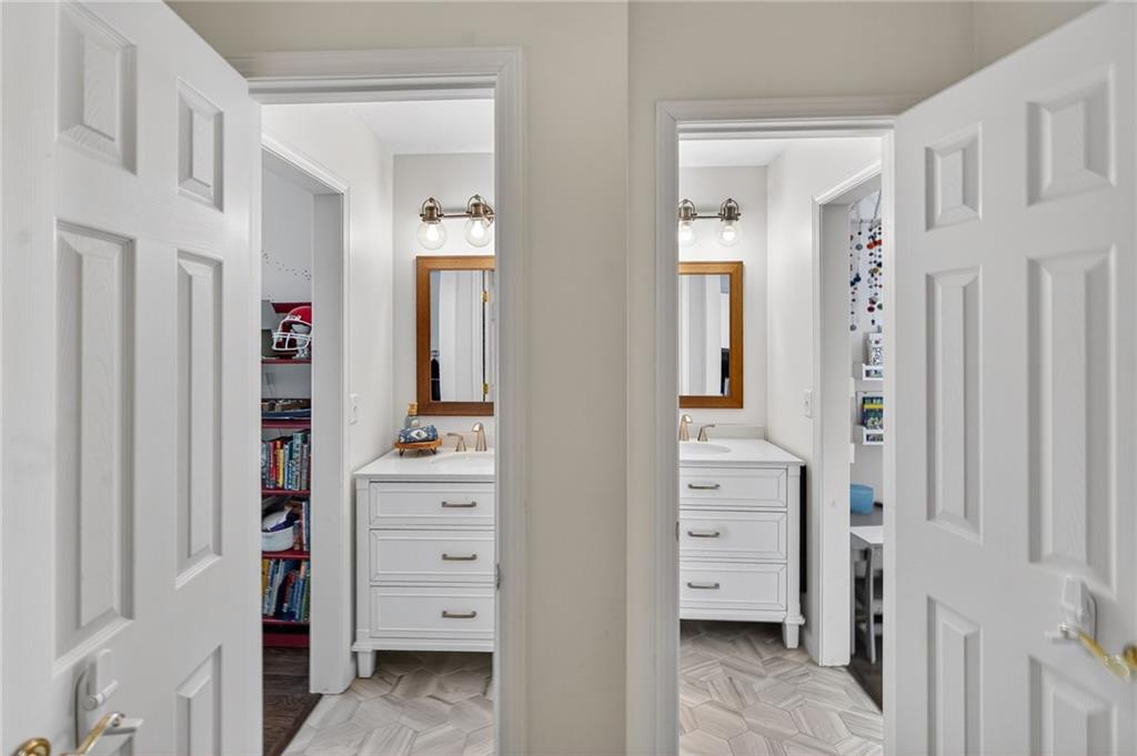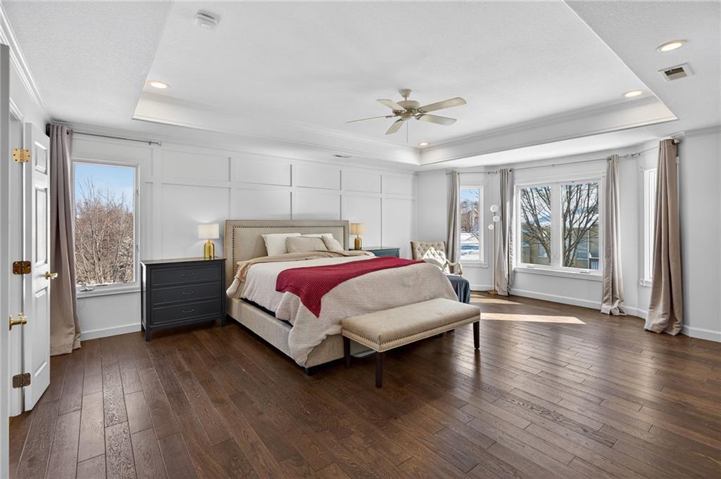 Spacious and beautifully updated 5-bedroom home offering a rare main-level bedroom with a private full bath. Four additional bedrooms are located upstairs- all featuring walk-in closets. Hardwood floors extend throughout both the first and second levels. This home is packed with upgrades including plantation shutters, a new roof (2021), exterior paint- 4 years old, two A/C units and the upstairs furnace and tankless water heater- all less than four years old, many newer energy-efficient windows plus recently updated bathrooms throughout. The remodeled primary bathroom is a true retreat with a freestanding tub and a very large, impressive walk-in closet. The kitchen offers newer appliances and countertops, while the finished basement expands your living and entertaining space with a full wet bar. Enjoy outdoor living on the newer stamped concrete patio in the fenced backyard. Additional features include an electric car charger in the garage and smart-home technology for smoke detectors, the front door, and garage door. Move-in ready and thoughtfully updated, this home offers space, comfort, and modern convenience in every room. Room sizes, square footage, taxes and lots size are estimates and should be verified by buyer.