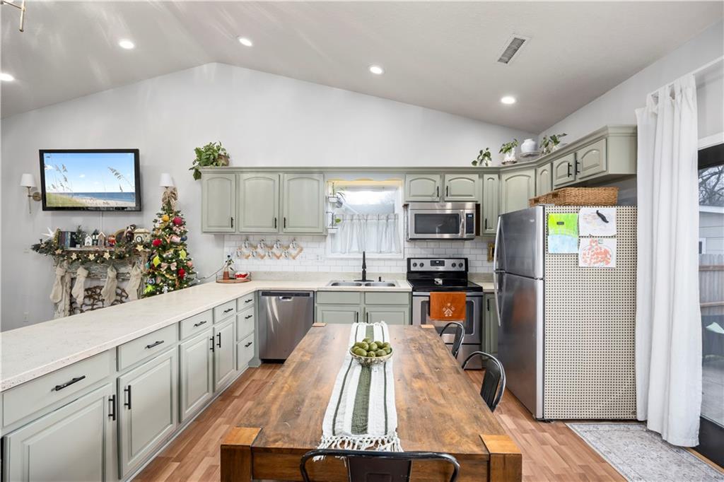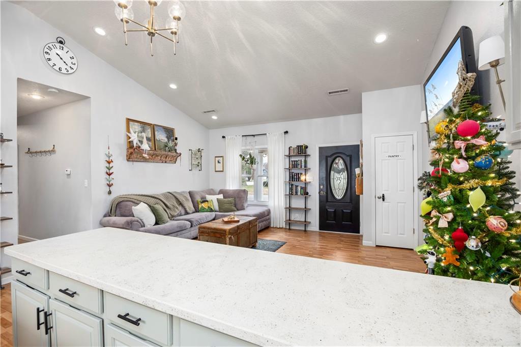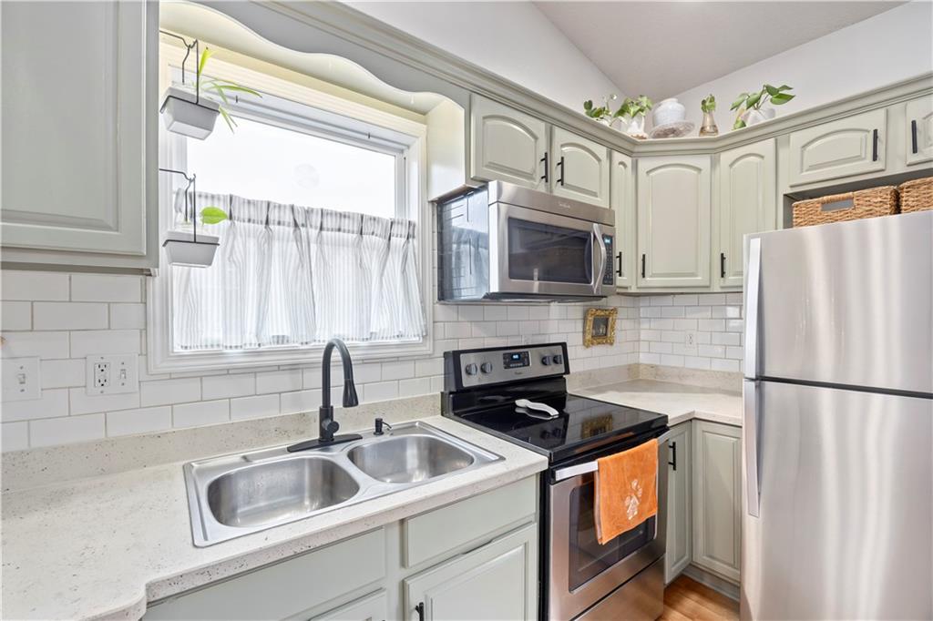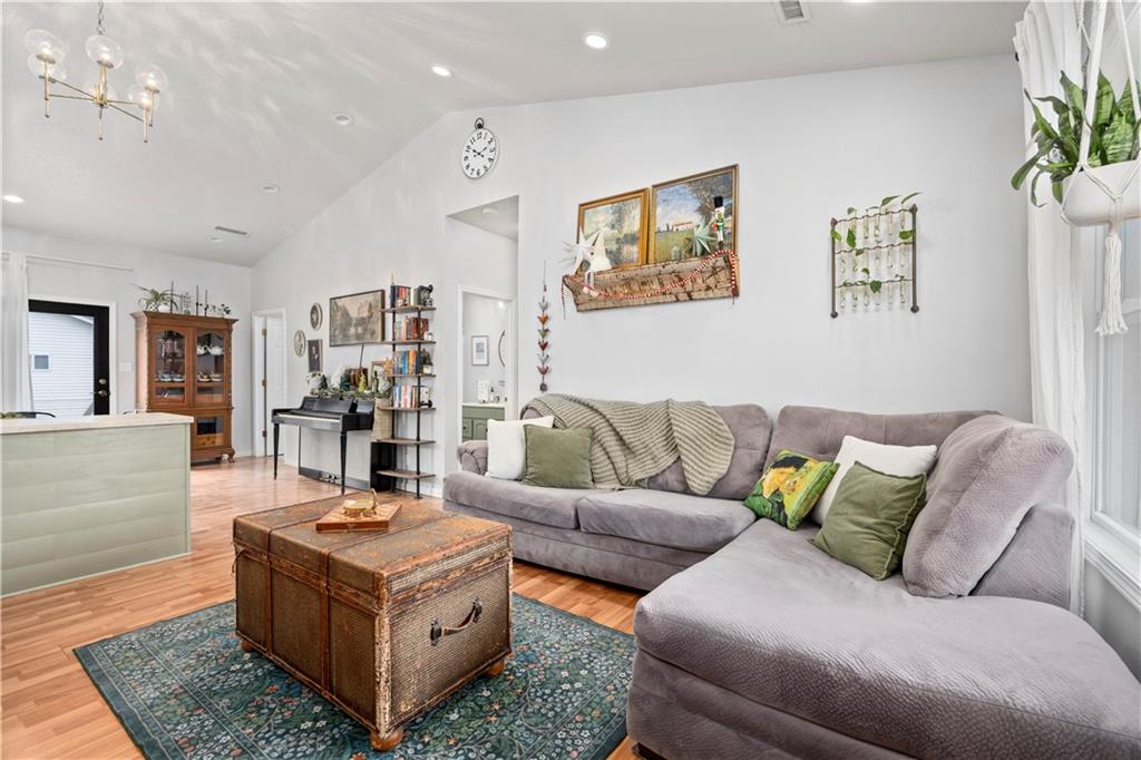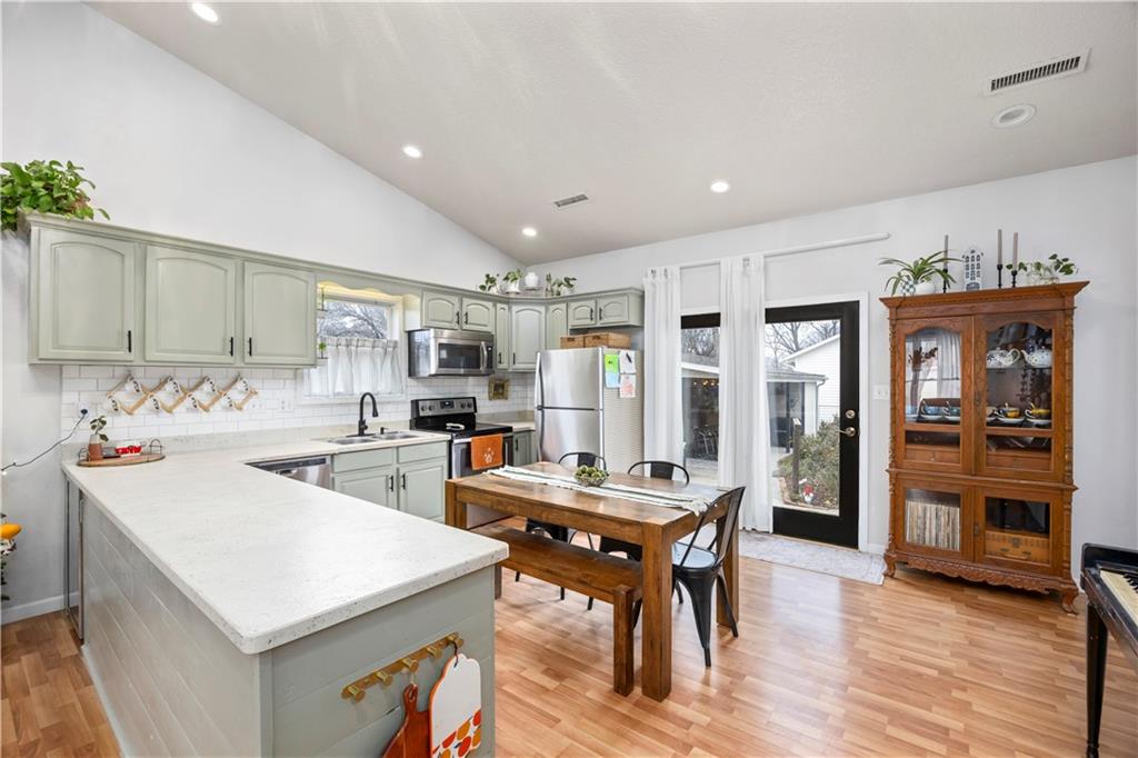 Exceptional 3 bedroom 2 bath home, in good Frontenac location. Large front porch perfect for seasonal decorating. Great Open floor plan with vaulted ceiling. Fantastic Kitchen with plenty of countertop space. Bright airy living room. Lots of updates including New Flooring, New light fixtures. Kitchen opens to fenced back yard and patio with raised garden beds. Wonderful primary bed & bath. Large separate laundry room. Newer Hot Water tank. This home has great style and charm.