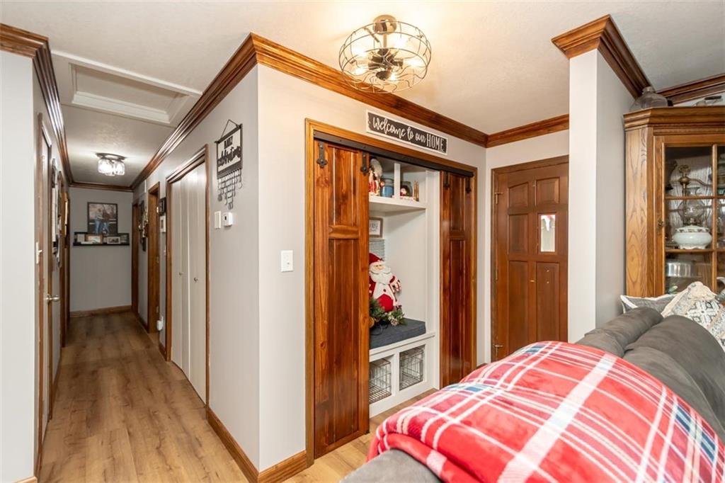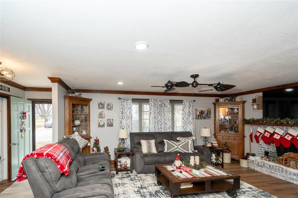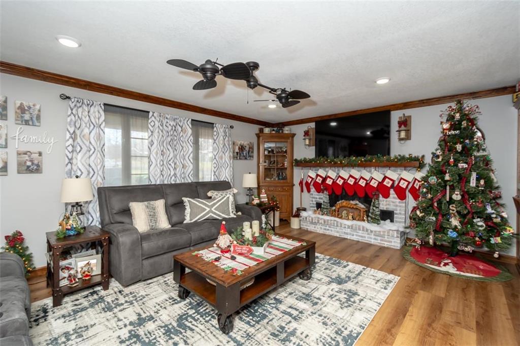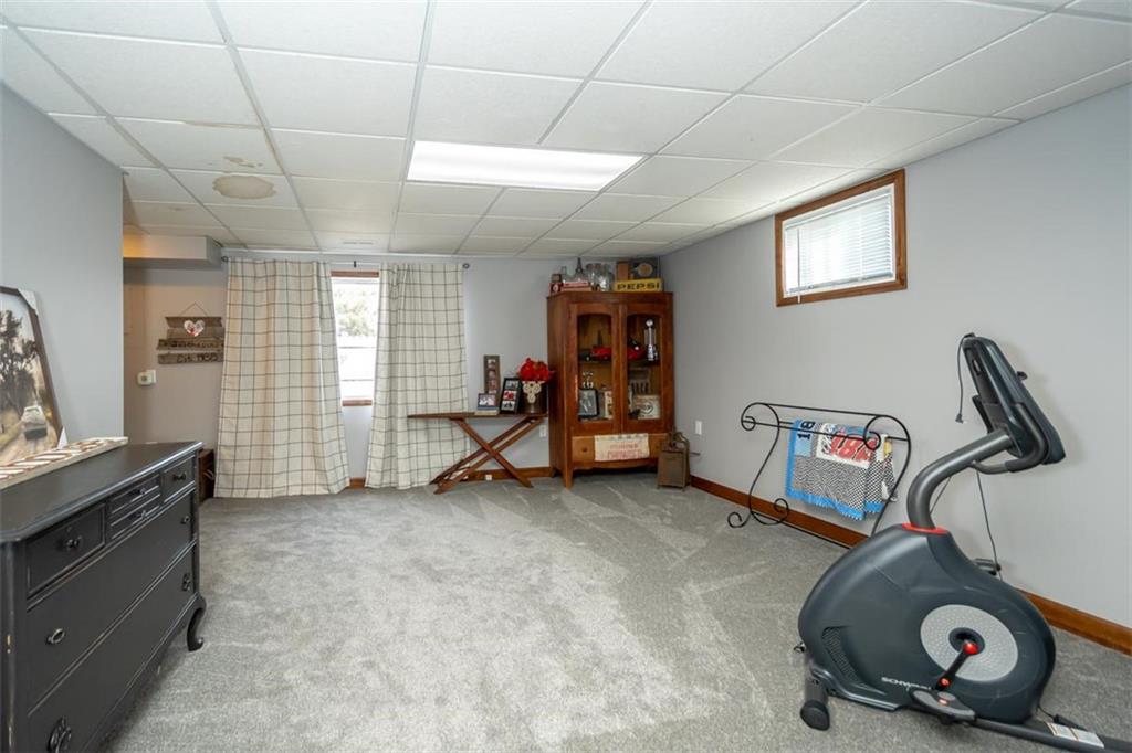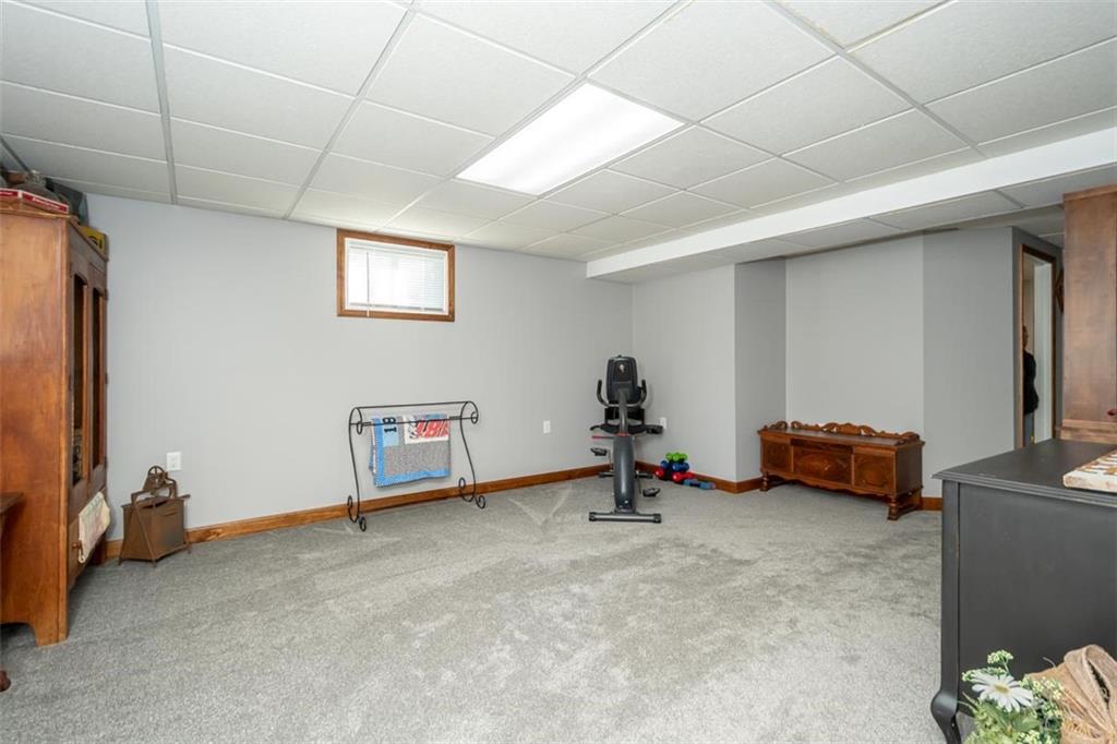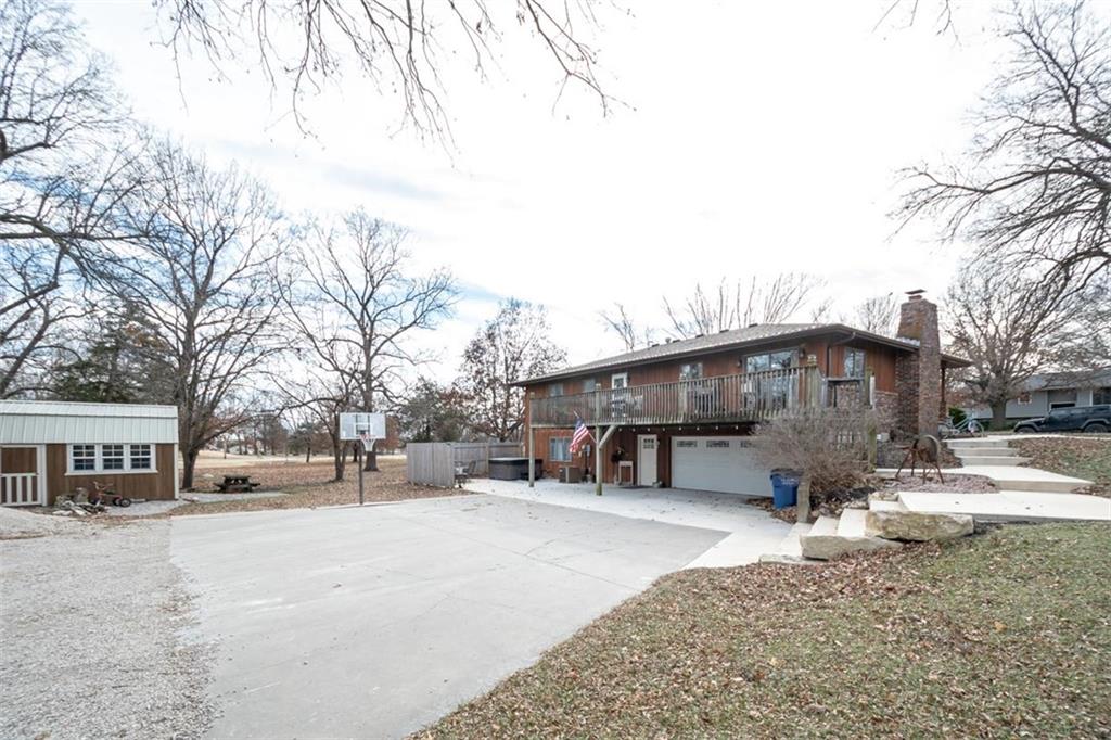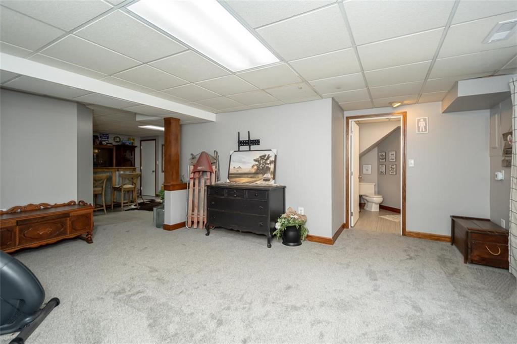 Welcome home to this gorgeous, well-maintained ranch-style property situated on a picturesque 1.02-acre corner lot with mature trees and room to breathe. This inviting home offers three bedrooms on the main level, including a primary suite with an attached full bath, plus an additional full bathroom for guests. The heart of the home features an open-concept kitchen and dining area with beautiful custom knotty pine cabinetry, thoughtful built-ins for extra storage, and an eat-in layout perfect for everyday living. Cozy up in the living room by the gas fireplace, or step out onto the large deck just off the kitchen, ideal for entertaining and enjoying peaceful outdoor views. Convenience is key with main-level laundry, while the finished basement adds even more space with a non-conforming bedroom, family/rec room, and a two-car garage. Outdoors, you’ll love the new concrete steps, sidewalks, patio, and gutters, along with a charming privacy-fenced patio designed for relaxing and hosting. A small shed provides extra storage, and there’s plenty of room for additional parking. Located in a quaint community with easy highway access, this home blends comfort, space, and functionality—ready for its next owner to enjoy.
