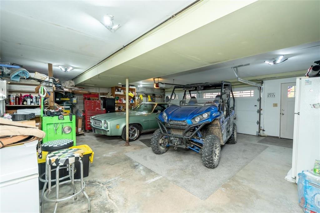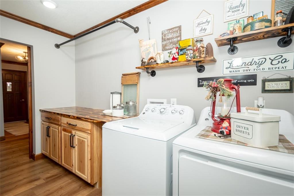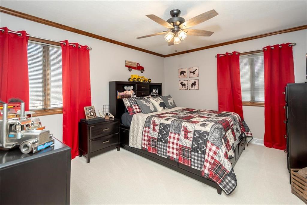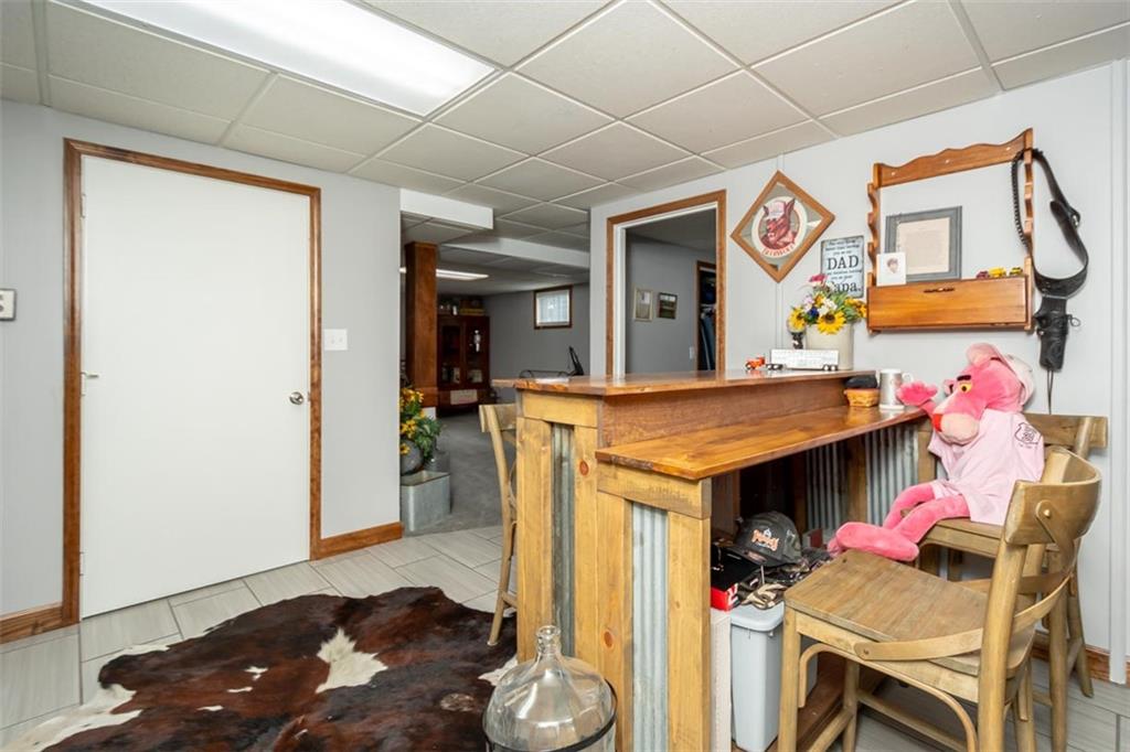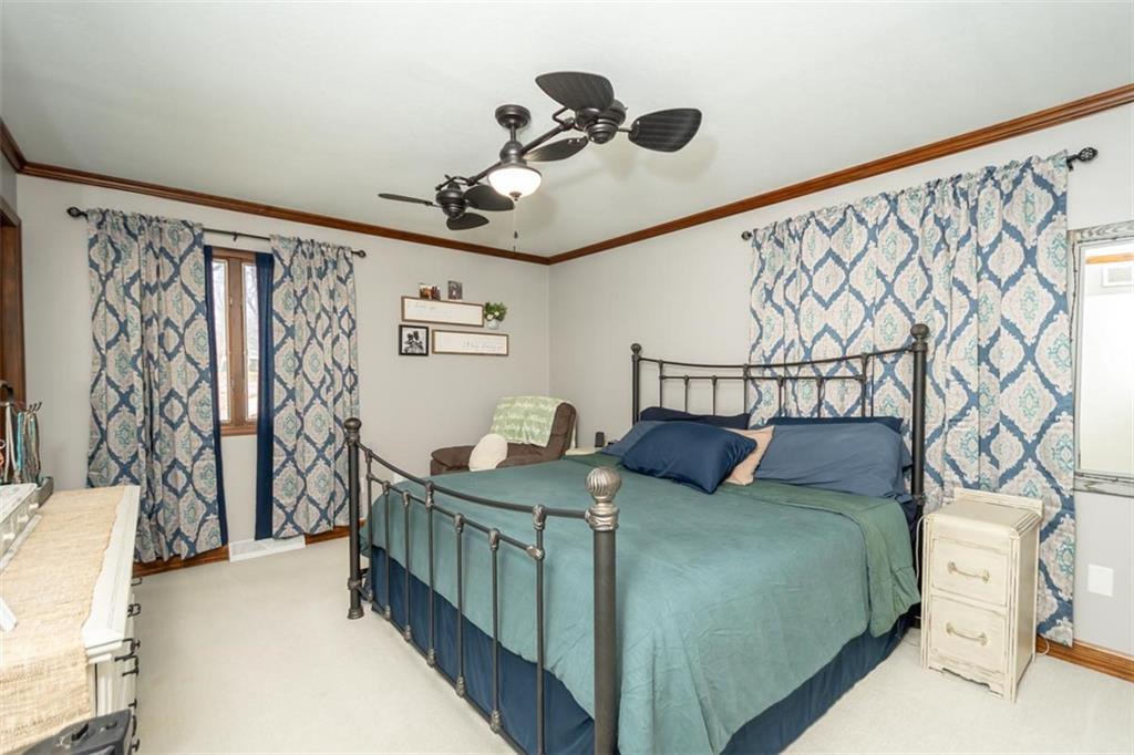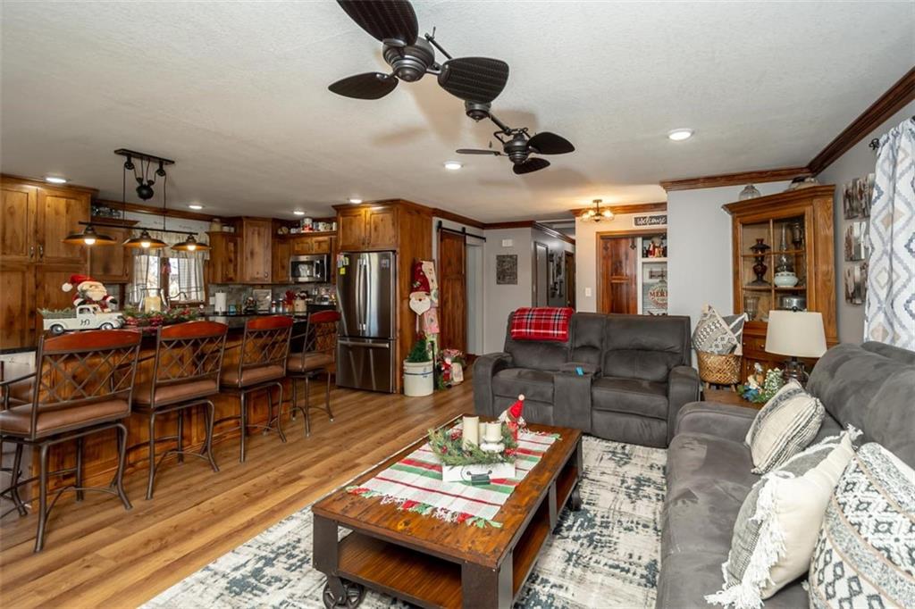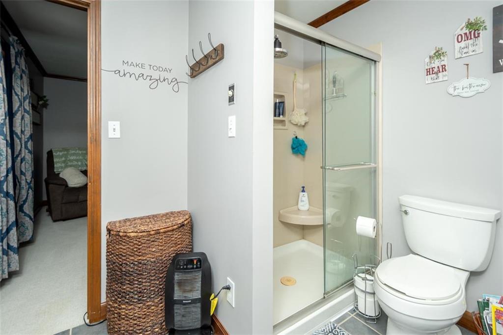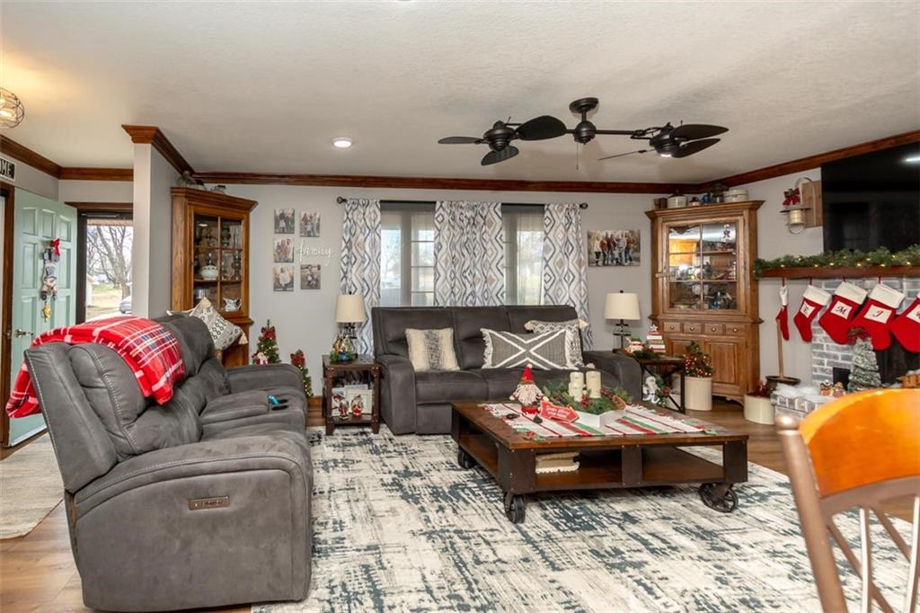 Welcome home to this gorgeous, well-maintained ranch-style property situated on a picturesque 1.02-acre corner lot with mature trees and room to breathe. This inviting home offers three bedrooms on the main level, including a primary suite with an attached full bath, plus an additional full bathroom for guests. The heart of the home features an open-concept kitchen and dining area with beautiful custom knotty pine cabinetry, thoughtful built-ins for extra storage, and an eat-in layout perfect for everyday living. Cozy up in the living room by the gas fireplace, or step out onto the large deck just off the kitchen, ideal for entertaining and enjoying peaceful outdoor views. Convenience is key with main-level laundry, while the finished basement adds even more space with a non-conforming bedroom, family/rec room, and a two-car garage. Outdoors, you’ll love the new concrete steps, sidewalks, patio, and gutters, along with a charming privacy-fenced patio designed for relaxing and hosting. A small shed provides extra storage, and there’s plenty of room for additional parking. Located in a quaint community with easy highway access, this home blends comfort, space, and functionality—ready for its next owner to enjoy.