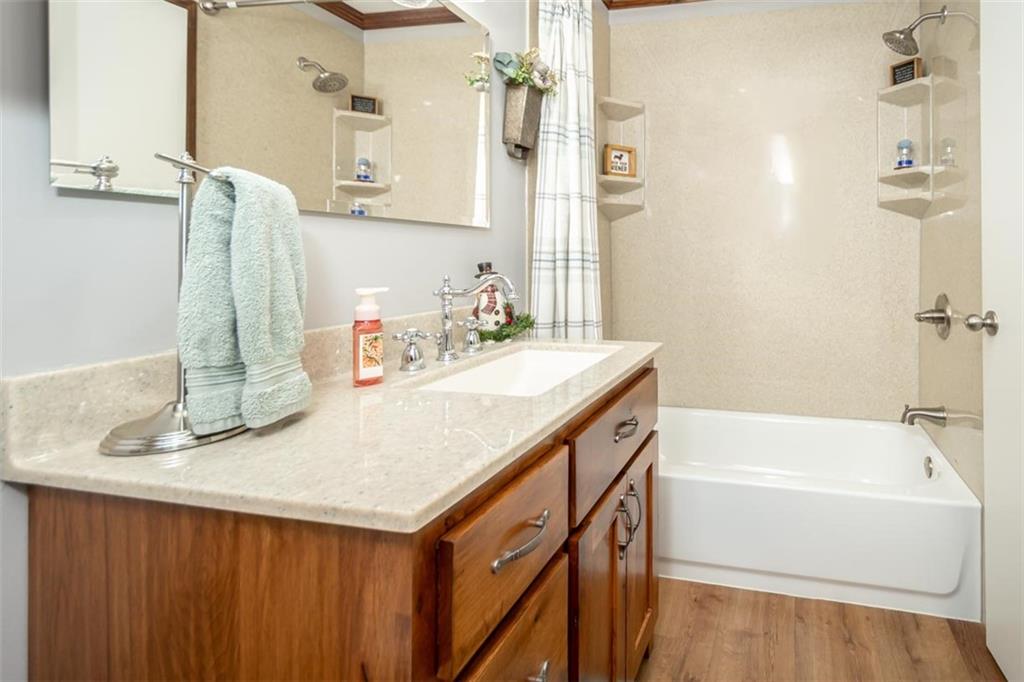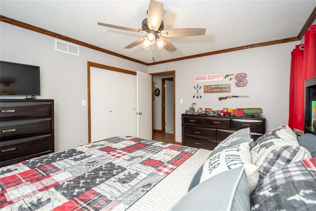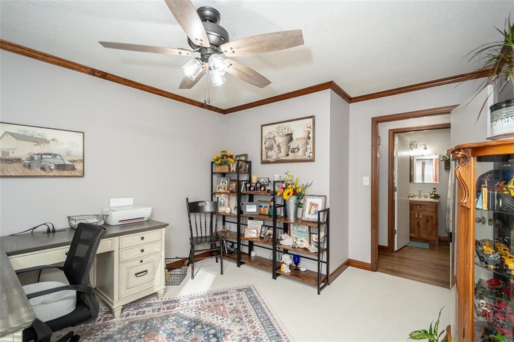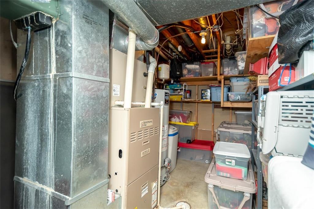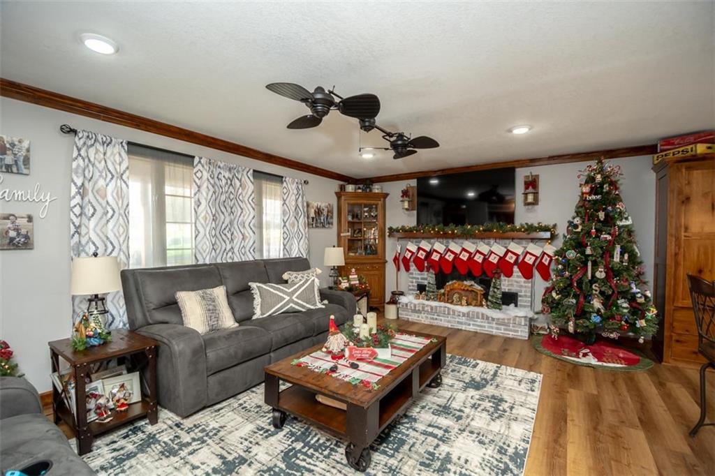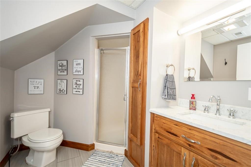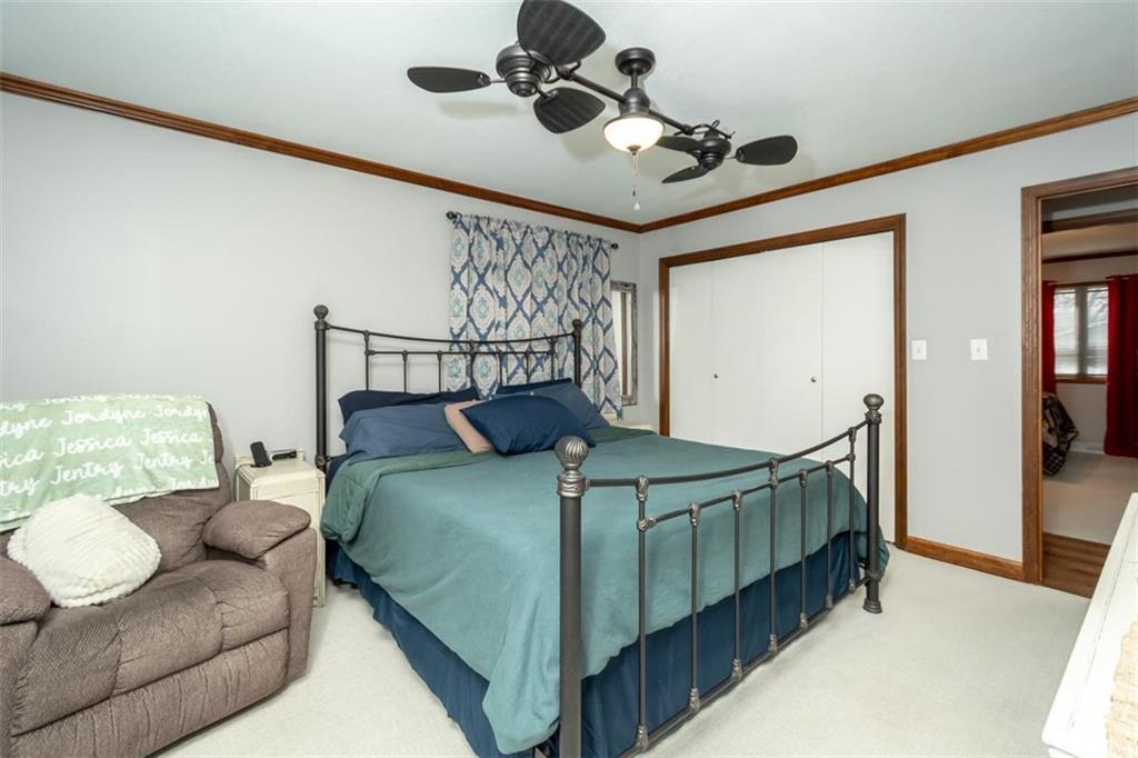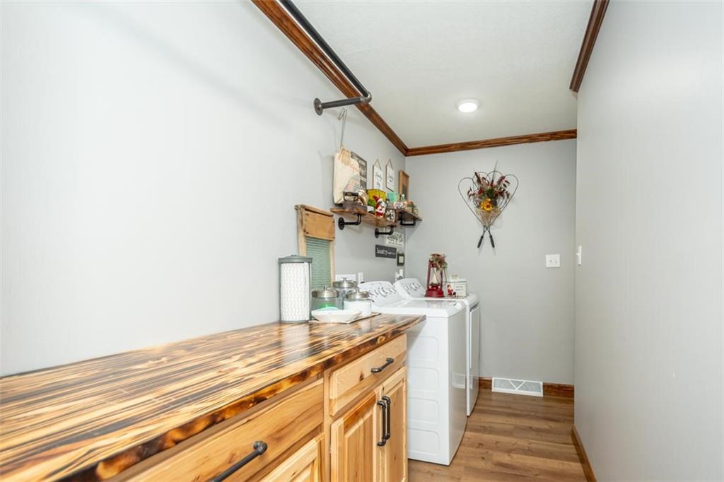 Welcome home to this gorgeous, well-maintained ranch-style property situated on a picturesque 1.02-acre corner lot with mature trees and room to breathe. This inviting home offers three bedrooms on the main level, including a primary suite with an attached full bath, plus an additional full bathroom for guests. The heart of the home features an open-concept kitchen and dining area with beautiful custom knotty pine cabinetry, thoughtful built-ins for extra storage, and an eat-in layout perfect for everyday living. Cozy up in the living room by the gas fireplace, or step out onto the large deck just off the kitchen, ideal for entertaining and enjoying peaceful outdoor views. Convenience is key with main-level laundry, while the finished basement adds even more space with a non-conforming bedroom, family/rec room, and a two-car garage. Outdoors, you’ll love the new concrete steps, sidewalks, patio, and gutters, along with a charming privacy-fenced patio designed for relaxing and hosting. A small shed provides extra storage, and there’s plenty of room for additional parking. Located in a quaint community with easy highway access, this home blends comfort, space, and functionality—ready for its next owner to enjoy.