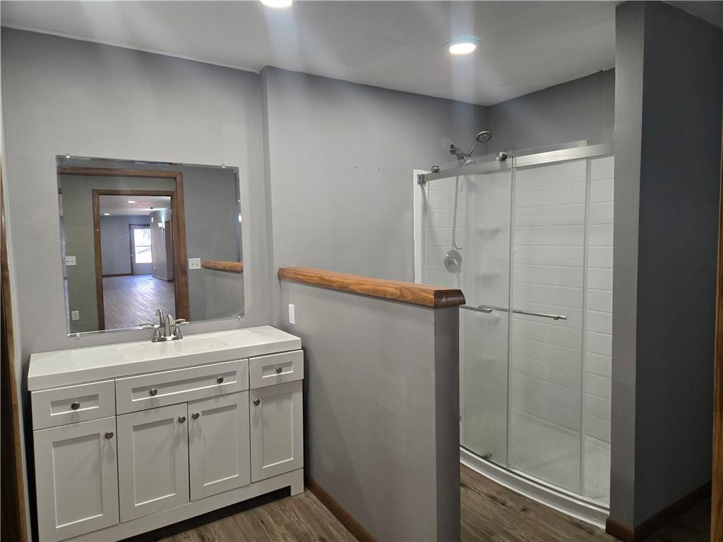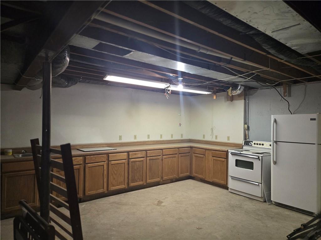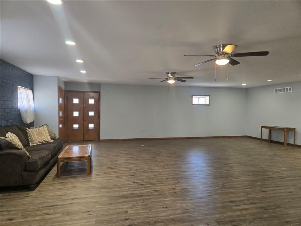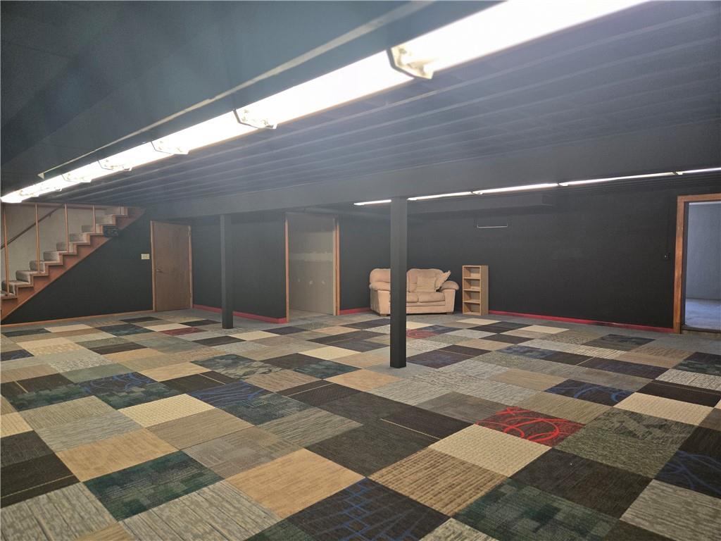 MOTIVATED SELLER!This one-of-a-kind, fully remodeled property offers 3,869 square feet of main-level living, blending unique character with modern functionality. Originally a chapel/church with living quarters, the home has been thoughtfully transformed into a spacious 4-bedroom (non conforming, windows are not egress), 3 full bath residence. Sitting on a 0.52-acre lot features include new flooring throughout, updated kitchen with new appliances, new insulated garage doors, new plumbing (interior and under property), and new backyard fencing. Main level offers an expansive 30’ x 30’ living room, creates an incredible open gathering space, ideal for entertaining or large family living with sitting area (15' x 14), plus an upper-level family room. True single-level living with generous room sizes and flexible layout options. The finished basement adds exceptional versatility, featuring a massive 40’ x 30’ recreation room and an additional 15’ x 36’ bonus room, previously used as a dog room and workout space—perfect for a gym, hobby room, home business, or additional entertaining area. A 4th full bath already roughed in with fixtures included and a kitchenette possibility with working appliances in the garage area. 30’ x 60’ garage provides abundant parking, workshop potential, and extensive storage rarely found in residential properties. With its unique history, substantial square footage, and endless possibilities, this property is ideal for buyers seeking space, character, and flexibility—whether for multi-generational living, entertaining, or creative use. Approximately 90% remodeled—just add your finishing touches. Quiet neighborhood with a welcoming small-town feel.