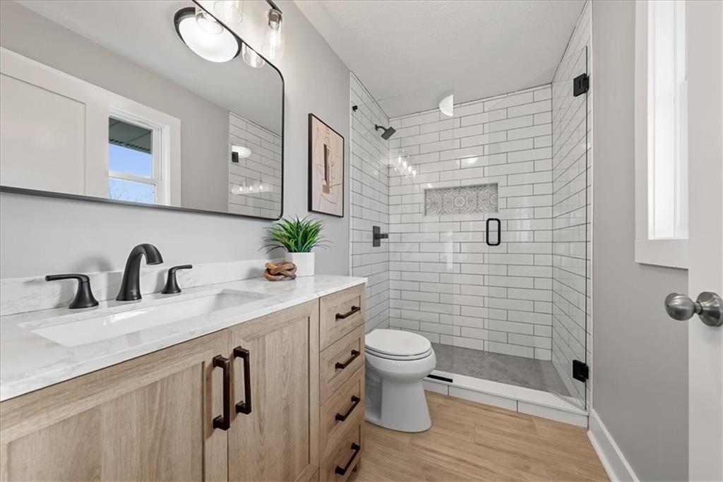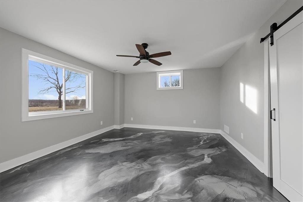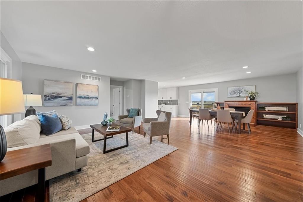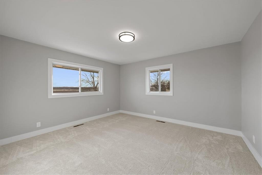 Acreage & ranch-style living! Fully renovated 3,017 sq ft ranch on 10 acres with 4 beds, 3.5 baths, finished walkout basement, and flexible main-level office/4th bedroom. Modern updates blend with classic ranch design—perfect for buyers seeking space, privacy, and country living with style. At the heart of the home is an all-new kitchen featuring abundant cabinetry, quartz countertop surfaces, and brand-new appliances—designed for both everyday living and entertaining. New bathrooms, all new windows, doors, flooring, HVAC System, Electrical Box and wiring, Siding, Exterior and Interior paint and all-new fixtures throughout reflect the home’s comprehensive renovation and elevated finish. Everyday functionality shines with an expansive mudroom and main-level laundry, along with a walk-in pantry complete with a convenient grocery door to the garage. The finished walkout basement extends the home’s versatility, offering a wet bar, professional epoxy flooring, and a striking glass-and-tile walk-in shower—ideal for hosting, relaxation, or extended living. The 2.5-car side-entry garage has new epoxy floors, providing durability with a polished look. Outdoor living is enhanced by a large new deck and expansive concrete patio overlooking the peaceful, open acreage. Additional amenities include a 40x60 outbuilding with electricity and a convenient lean-to, perfect for equipment, animals or additional storage. Paved road access—no gravel. The buyer receives first right to purchase the adjoining 8 acres, offering potential for added privacy or future expansion. NO HOA. No fencing. Just space, freedom, and the opportunity to make it your own.