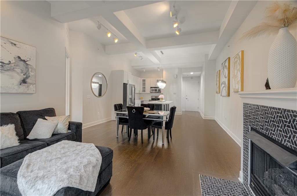 DOWNTOWN KANSAS CITY CONDO WITH CITY VIEWS & TRUE WALKABILITY Enjoy secure downtown living in this 2-bedroom, 2-bath condo at 1101 Walnut #505, featuring floor-to-ceiling windows that frame the Kansas City skyline. The living room sits right by the window—perfect for enjoying rain, snow, and New Year’s Eve fireworks over the city. The layout offers flexibility rarely found downtown, with a second bedroom and bathroom ideal for guests, a home office, or additional privacy. Recent Updates Include: • Hardwood floors refinished (September 2022) • Updated bathroom countertops and fixtures (2023) • Kitchen remodel by previous owner • New dishwasher and refrigerator • Updated island lighting A modern fireplace anchors the living space, while practical features include in-unit laundry, garage parking, and additional storage. Building Amenities: • Rooftop pool with skyline views • Fitness center • 24/7 security and controlled access Step outside and enjoy true walkability to Power & Light District, restaurants, concerts, bars, and the KC Streetcar, providing easy access to the Crossroads, River Market, Union Station, and more. Move-in ready and ideal for professionals seeking security, space, and a vibrant downtown lifestyle.