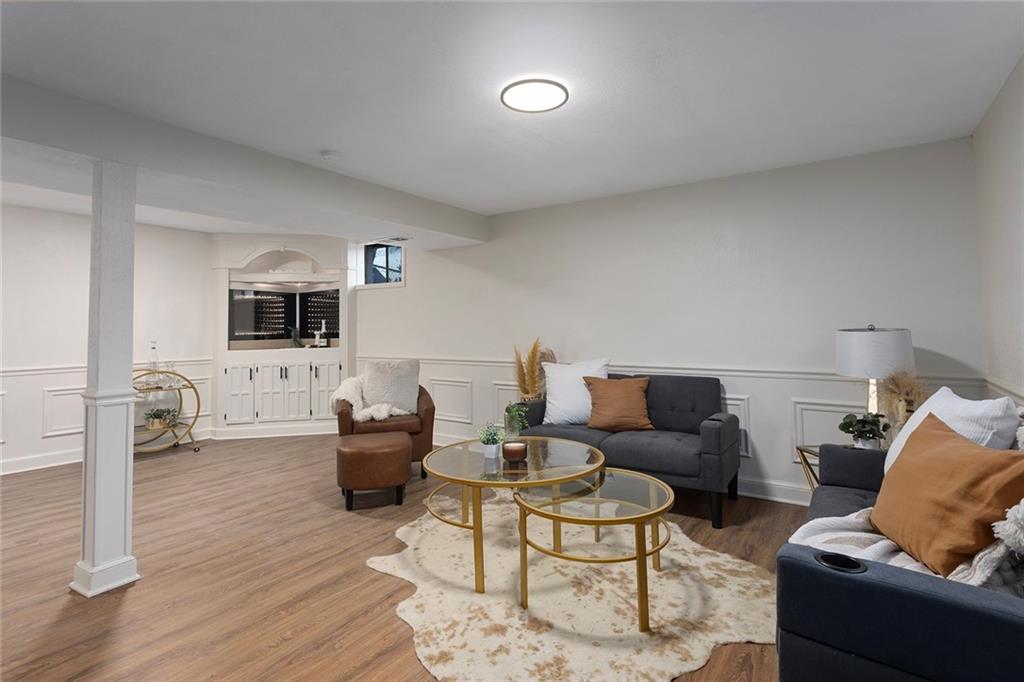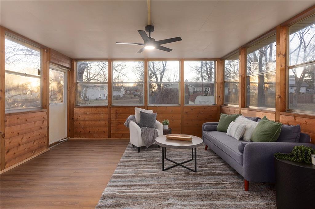 Welcome home to this beautifully updated property featuring a fully remodeled floor plan with a fresh modern feel throughout. From the moment you step inside, you’ll love the bright open spaces, sleek finishes, and thoughtful updates that make this home truly move-in ready. The kitchen is a showstopper with painted cabinets, a stylish tiled backsplash, and a butcher-block center island that offers extra counter space and doubles as seating—perfect for everyday meals or entertaining guests. The primary bedroom features its own private ensuite bathroom complete with a walk-in shower for convenience and comfort. Head downstairs to the second spacious family room, ideal for movie nights or hosting gatherings. Don’t miss the fun corner bar area with infinity lights—your new favorite spot for game nights or weekend hangouts! One of the best spaces in the home is the fully enclosed sunroom—usable year-round with plenty of room for a dining setup or cozy couches to relax with your morning coffee or unwind in the evenings. Step outside to the huge fenced backyard, offering endless possibilities! There’s a large patio area great for outdoor seating or BBQs, along with two storage sheds for tools, toys, and equipment.