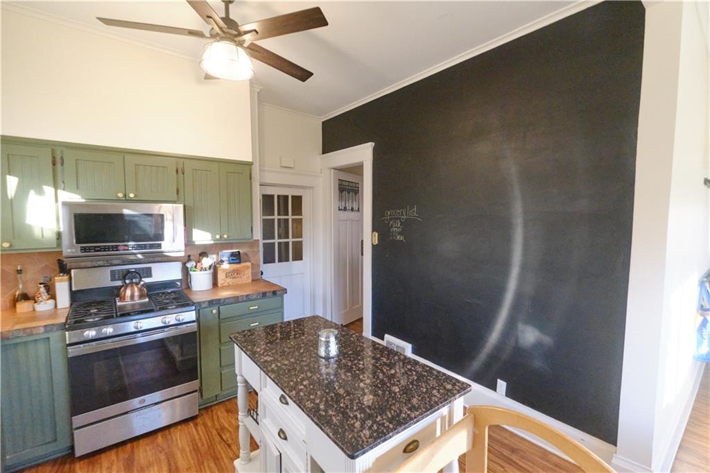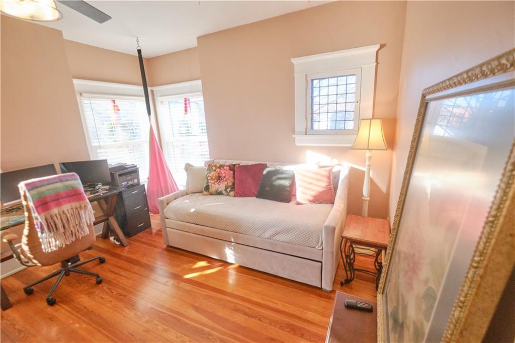 Take a look at this stunning 4-bedroom, 2.5-bath Craftsman-style home nestled in the historic Southwest Pittsburg neighborhood. This home features tall ceilings, beautiful original wood floors, solid wood doors, and crown molding. It also boasts Leaded and beveled glass doors and windows. The custom kitchen offers ample storage and prep space, along with a spacious island and breakfast area. The large, welcoming covered front porch leads into the foyer and expansive living room, where a gas log fireplace serves as the focal point. A beautiful open staircase leads to the upstairs bedrooms. There are four spacious bedrooms, with the primary bedroom attached to the fourth bedroom. This setup is perfect for a nursery or home office and includes an updated private bath. The third bedroom leads to the large upstairs sunroom, which is flanked by windows on three sides. The hall bath has been tastefully updated with modern fixtures and added storage. There’s also a full unfinished basement with a dry basement drainage system installed. Step outside onto the new composite deck with metal railing. The large privacy-fenced yard features a private flagstone patio, a large attached carport, and an unattached garage. Make your appointment soon!