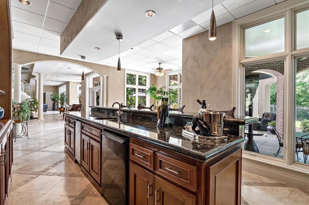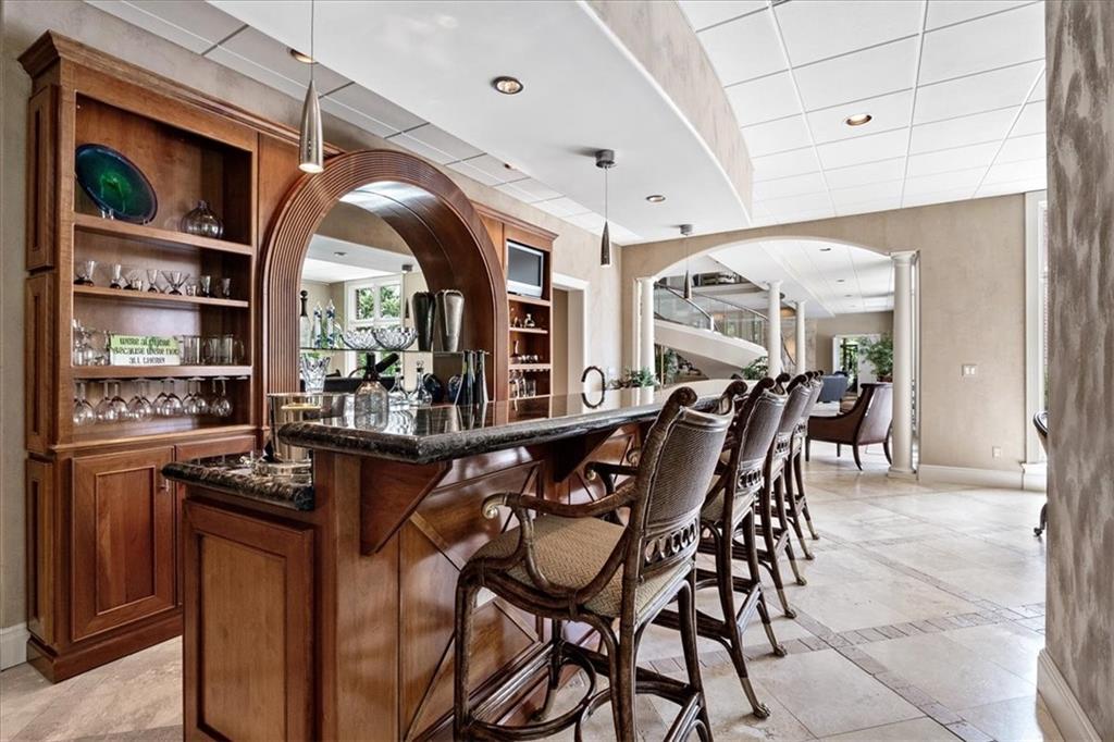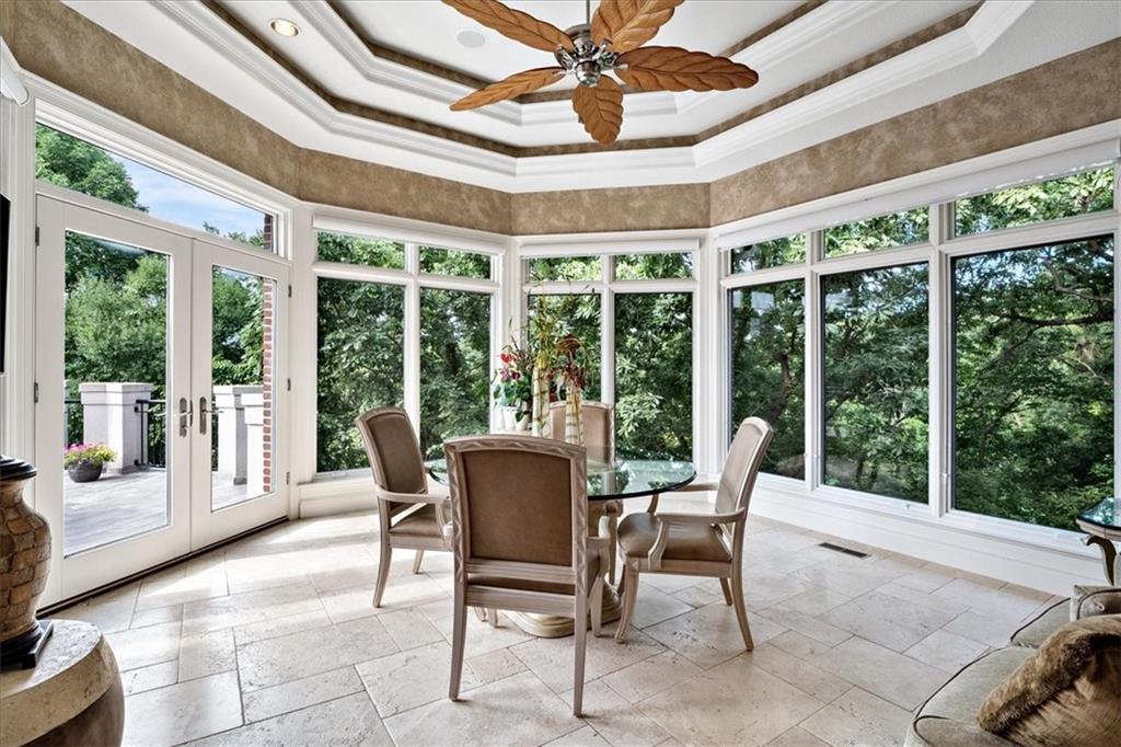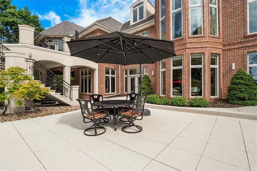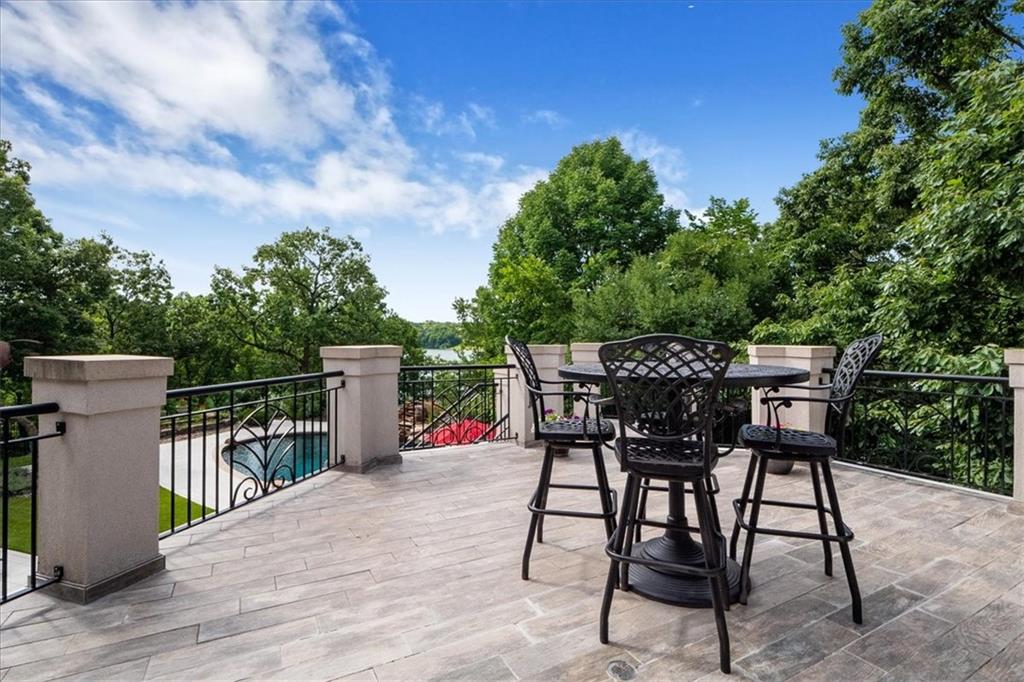 A most remarkable Home in the WEST SHORE area of RISS LAKE in Parkville, Platte County, Missouri. Relax in the Security provided by this Reserved Gated Community. You are greeted with an Impressive Circular Driveway and Stylishly Designed Home featuring an Extensive Glass Entry. The Concrete Tile Roof (replaced 2 years ago) caps a Full Brick Exterior with Coin Corners, Herringbone and Soldier Brick patterns. Inside are Soaring Ceilings on the main level with Entry Chandeliers that raise and lower for cleaning, Electric Blinds, Whole House Sound System and Custom Lighting throughout. A Suspended Curved Stainless Steel, Brass and Glass Staircase leads you from the Terrace Level through the Third Level of this Amenity Rich Home. The Theater Room, Gym, Full Bath with Steam Shower, Full Bar, Entertainment Room, Gourmet Kitchen with VIKING Appliances plus a Second Kitchen with KitchenAid Appliances on the Terrace Level bring a luxurious feel to the home. Private Office, Playroom, Covered Lanai and 10-foot Basement ceilings will all add to your enjoyment of this home. This Custom-Built Home is attractively situated on a Large Estate Homesite on the Point of Riss Lake with an Expansive Deck offering an Excellent view of the 130+ Acre Lake. These Amazing Lake Views can also be enjoyed from virtually all the rear windows of the home. Upgrade your leisure time in the In-Ground Concrete Pool featuring a Waterfall, Hot Tub and SO MUCH MORE!! A must see!