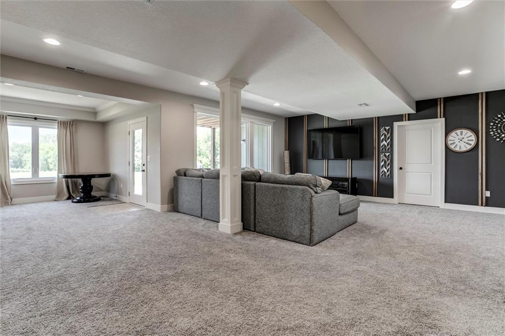 Nestled on a little over 3 acres in The Estates at The Ranch this home is a showstopper! Custom built with beautiful finishes. You will love the open floor plan, vaulted ceilings and box beams. Kitchen features upgraded appliances, a large walk-in pantry and soft close cabinets and drawers. Primary suite is oversized with an amazing closet and bath. 3 bedrooms on MAIN level for those that have small children or if multiple people need to be on the main level. Second smaller "secondary suite" includes a bath and walk in closet. Large lower level is stubbed for a wet bar/entertaining area with refrigerator. Two large storage areas. Storage area to the north could be a workshop. It is framed so you could put in double doors or a garage door for lawn equipment, ATV, boat or toys. The Covered deck, patio, fire pit and front porch make this home perfect for enjoying the outdoors. Country life close to the city. Minutes from 435, 169, I-29, 291 and 152. Home is very close to Smithville Lake and Paradise Point Golf Course. Enjoy the small town feel with all the amenities. In the highly rated Smithville School District. Buyer or buyer's agent to verify tax, sq ft and school district information.