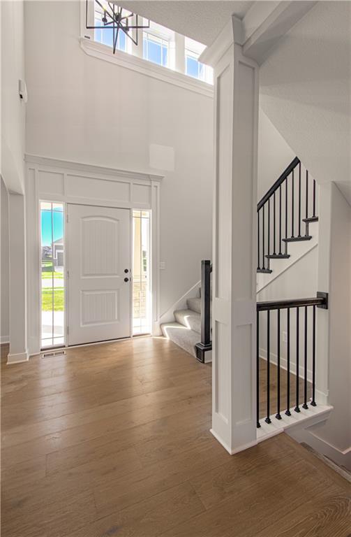 The move-in ready "DAISY" is a Gorgeous 2-Story home with 2900 square feet backing to woods. Offering 5 Bedrooms, with the 5th Bedroom on the Main Level, and 4 Full Baths. Upgraded finishes and attention to detail this lovely home offers Rounded Arches, Custom Built Cabinets, HUGE Kitchen Island, Bonus Bar with beverage fridge, Floor to Ceiling Windows, Gourmet Kitchen, Gas Cooktop, Mudroom at Garage Entry and an Open Layout which makes it great for entertaining. The Second Level is just as impressive and features a Private and Expansive Primary Suite and Walk-in Closet that has access to the Laundry Room. The Primary Bath is luxurious with an oversized Tub and Walk-in Shower with tile walls. There are 3 more bedrooms and 2 more baths on this level. Beautiful Staircase overlooks the Front Entry. Huge walk-out basement that could be finished to fit the buyers needs.