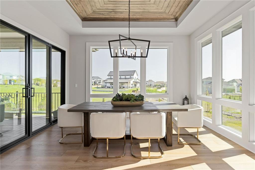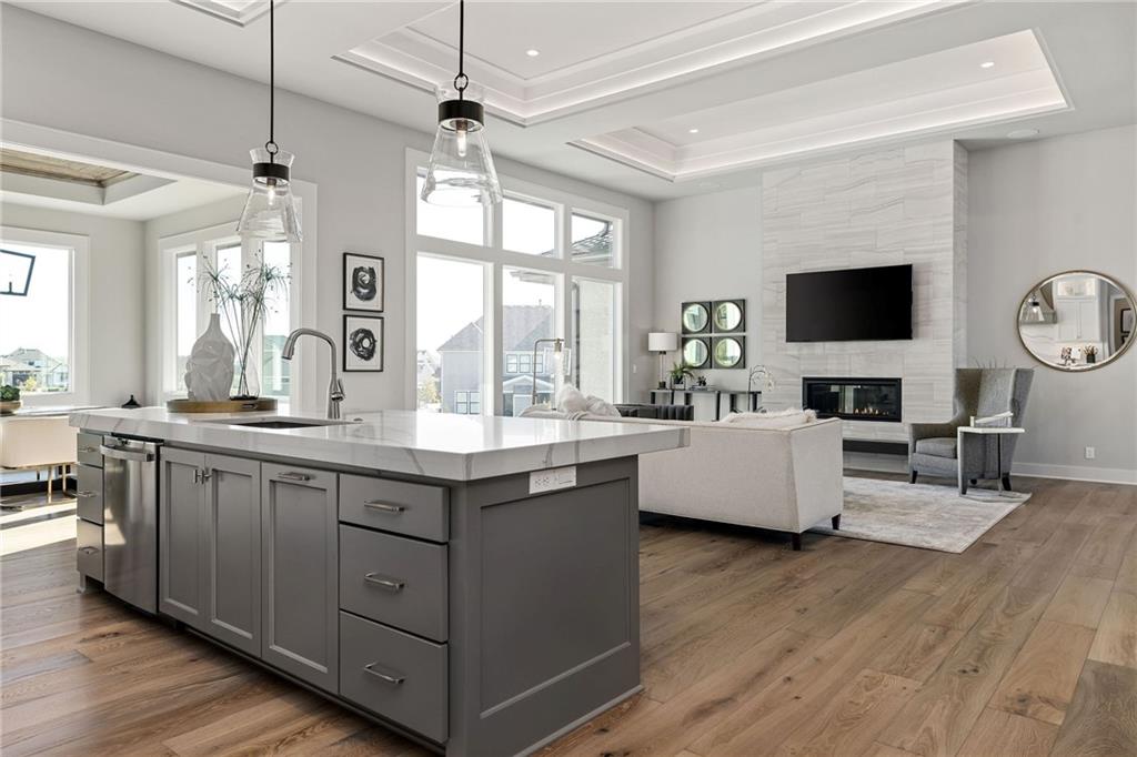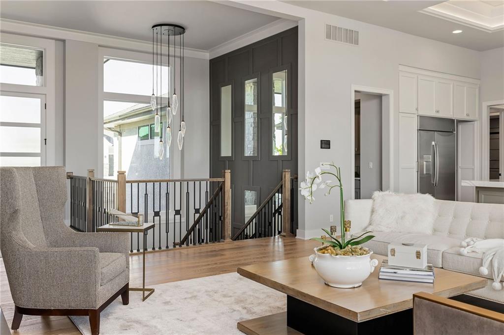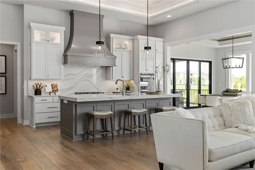 The highly sought-after Mustang plan by Willis Custom Homes is now underway at REGENTS PARK in Leawood on premier walkout Lot 1, with an estimated completion in Fall 2026. This reverse 1.5-story home blends timeless architecture with a livable layout designed for both everyday comfort and entertaining. Upon entry, a striking two-story feature wall along the staircase creates a strong architectural moment while maintaining a clean, spacious entry. The main level is anchored by a great room featuring three box-vaulted ceiling details with custom trim and cove lighting, adding depth and volume to the heart of the home. The kitchen flows seamlessly into the dining area and great room, while a generously sized pantry and convenient garage entry enhance daily functionality. Just off the kitchen, a flexible main-level room with sliding doors provides direct access to the covered deck—ideal for a home office, guest space, or additional living area. The covered deck features a fireplace and stairs leading down to the backyard, extending the living space outdoors and taking full advantage of one of the community’s limited walkout lots. The main-level primary suite offers a private retreat with a spa-like bath and generous closet space. The finished walkout lower level is a true extension of the home, centered around a large entertainment room with a full bar, dedicated wine storage, game table area, and access to the covered patio. Additional bedrooms and bathrooms provide comfortable accommodations for guests or family. Regents Park is Leawood’s newest maintenance-provided luxury community, tucked behind the 135th Street corridor with shopping, dining, and entertainment minutes away. Amenities include a pool, pickleball court, dog park, and walking trails. HOA is $450/month. Photos are of a previously completed model; finishes will vary. Reach out for a full list of options and the opportunity to customize this home.