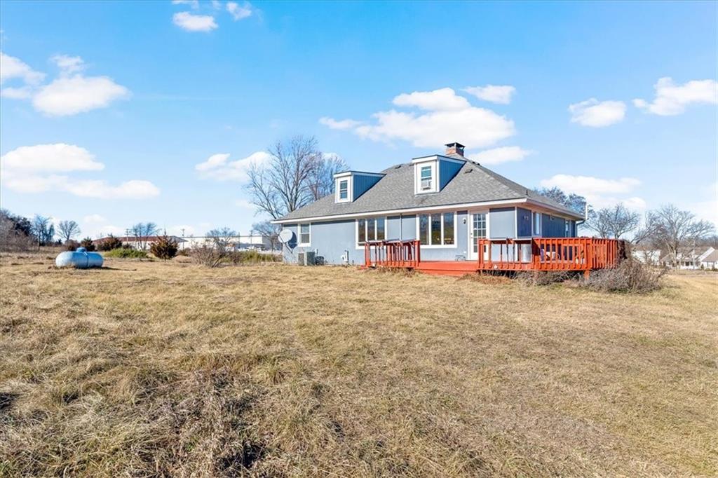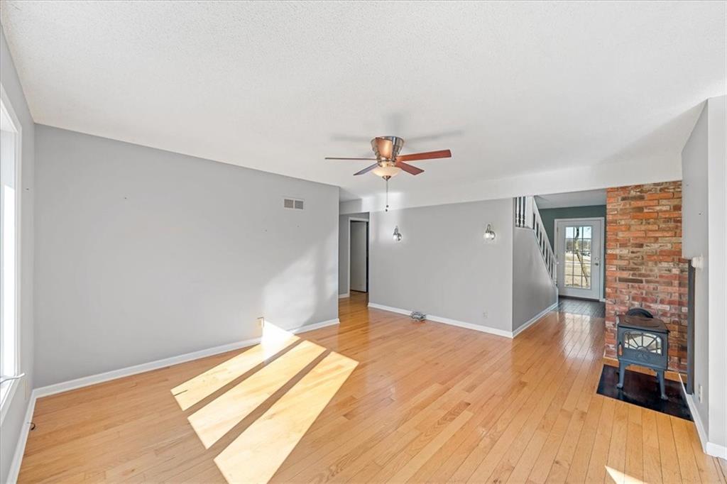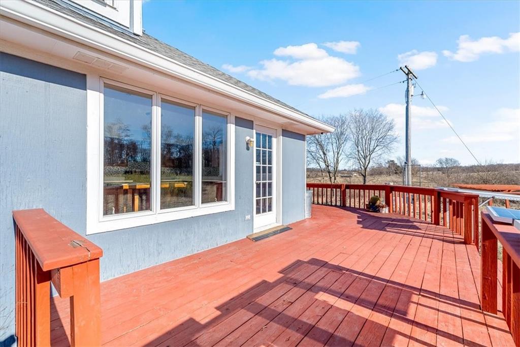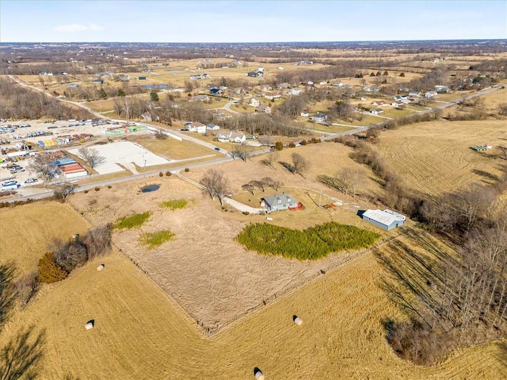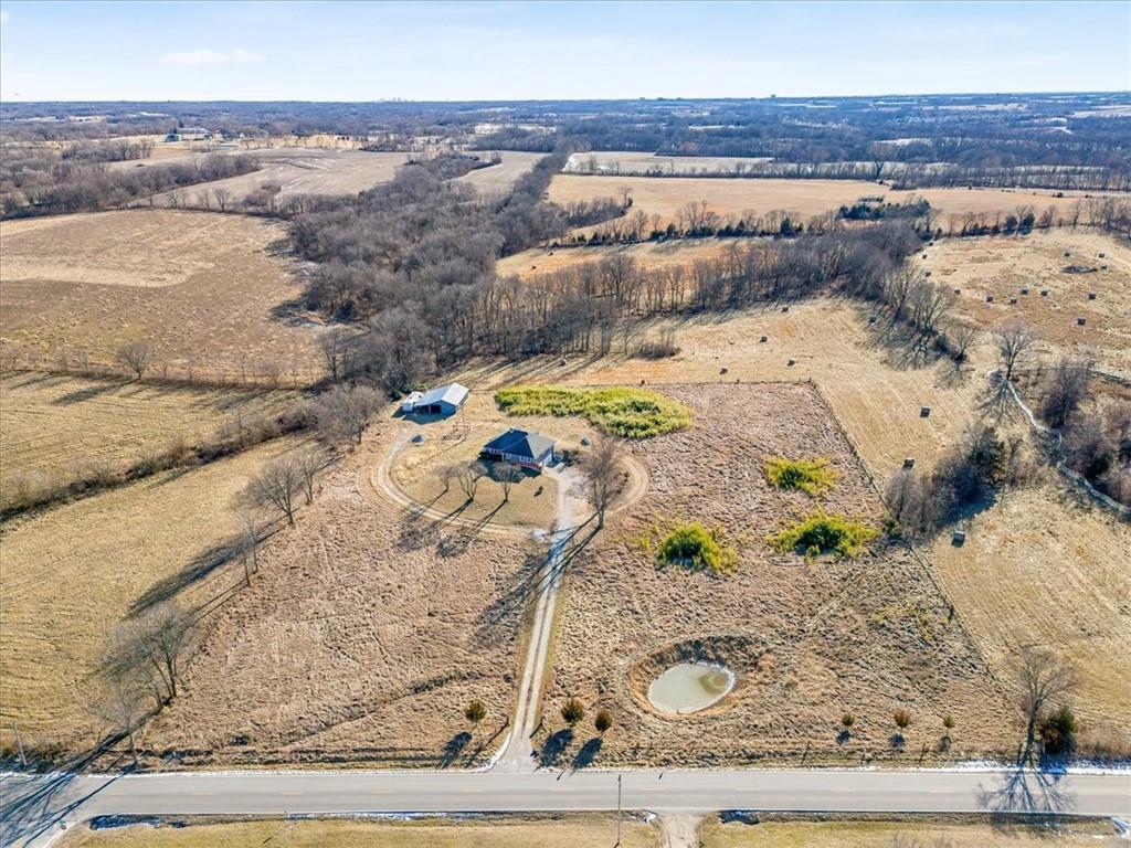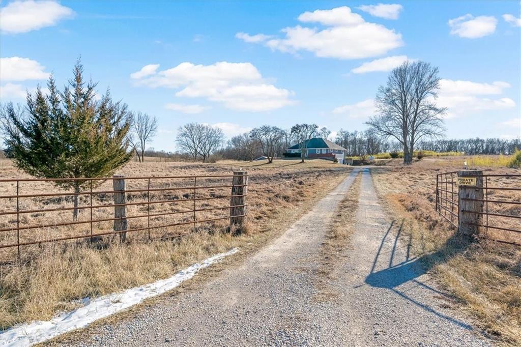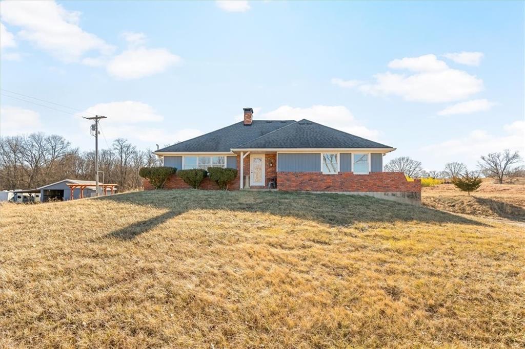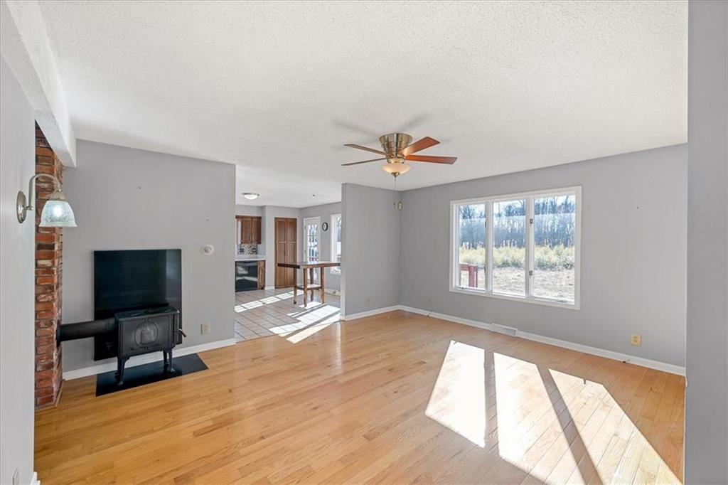 Wake up to quiet mornings, open skies, and views that stretch in every direction. Set on 4.71 serene acres, this ranch-style home is a rare blend of warmth, light, and breathing room. Sunlight fills the open, easy-flow floorplan, while a massive wood-burning fireplace becomes the soul of the home—perfect for slow evenings and gathered conversations. The oversized eat-in kitchen invites connection, featuring granite countertops, generous space to cook and linger, and windows that frame the surrounding landscape. Step outside or simply look out—every angle offers calm, privacy, and a sense of escape. The walkout basement holds exciting potential for additional finished living space and includes a storm shelter and food pantry, along with a stair lift on track for added accessibility. A small barn and wide-open acreage invite hobbies, animals, or simply the freedom to roam. With very little updating needed, this is a place to settle in, exhale and make your own.
