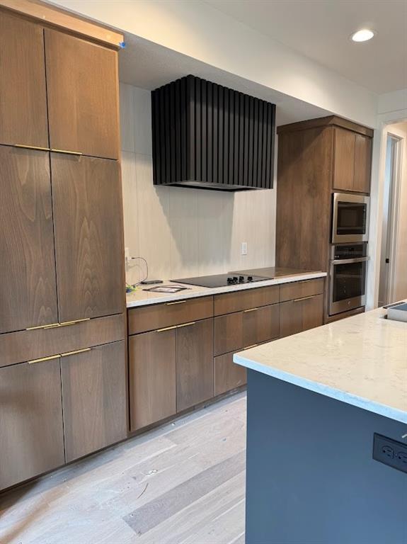 The Woodland by Elevate Design + Build is a reverse 1.5-story 5 bedroom home offering a modern exterior, a smart main-level layout, and spacious lower-level living on a large almost 13,000 sq.ft. lot. 8' tall interior doors on the main level, pocket office off kitchen, sleek electric fireplace. The main floor features the primary suite plus a second bedroom that can serve as an office or flex space, providing versatility for today’s lifestyle needs. The great room connects seamlessly to the kitchen and dining area, all highlighted by natural light throughout. A covered deck sits just off the dining area, ideal for outdoor dining or quiet relaxation. The primary suite offers a peaceful retreat with a spacious layout and access to a beautifully appointed bathroom. The lower level extends the living area with a large family room with wet bar plus three additional bedrooms, offering privacy for guests or added functional space. Located in Stonebridge Park, residents enjoy access to four zero-entry pools, two clubhouses with fitness equipment, sport courts, playgrounds, and walking trails. Nearby amenities include Heritage Park (~0.3 mi) with lake access, dog park, athletic fields, disc golf course, and an 18-hole golf course. Convenient to Prairie Creek Elementary (~0.6 mi), Woodland Spring Middle (~1.0 mi), and Spring Hill High (~5.5 mi). Everyday essentials are close by with local coffee shops (~1–1.2 mi), Natural Grocers (~4.2 mi), and Price Chopper (~1.5 mi). Early spring completion! Taxes, square footage, and room dimensions are estimated – Buyer or Buyer Agent to verify.